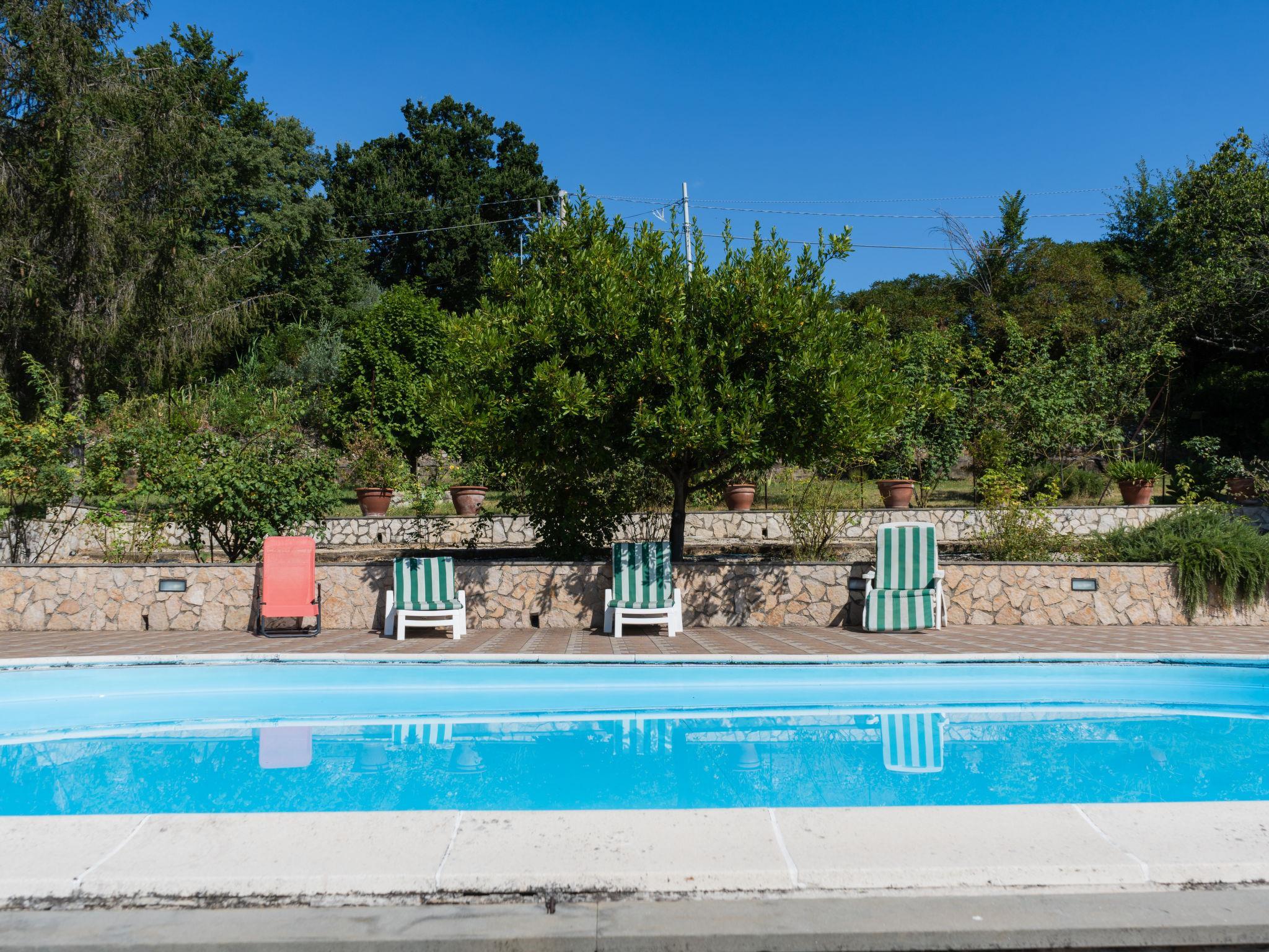 Gemütliche, freistehende, komfortable Villa "Farfa", 400 m.ü.M., auf 2 Stockwerken, Baujahr 1990, renoviert im Jahre 2007, umgeben von Bäumen und Feldern. 3 km vom Zentrum von Salisano, 6 km vom Zentrum von Poggio Mirteto, 8 km vom Zentrum von Castel Nuovo Farfa, ruhige Lage. Zur Alleinbenutzung: Park 2'000 m2, Schwimmbad (10 x 5 m, 150 cm tief, saisonale Verfügbarkeit: 01.Jun. - 11.Sep.). Aussendusche, Sitzplatz, Gartenmöbel, Grill, Kinderspielplatz, Parkplatz auf dem Grundstück. Lebensmittelgeschäft 6 km, Supermarkt 6 km, Restaurant 6 km, Bar 6 km, Bushaltestelle 600 m, Bahnstation "Poggio Mirteto" 6 km. Nahe gelegene Sehenswürdigkeiten: Fara in Sabina 13 km, Rieti 33 km, Cascata Delle Marmore 40 km, Roma 55 km. Bitte beachten: Fahrzeug empfohlen. Der Besitzer akzeptiert keine Jugendgruppen. Be- und Entladen am Ferienhaus möglich. Autobahn 25 km vom Haus. Eisenbahnlinie 3 km vom Haus. Flugplatz 72 km vom Haus.