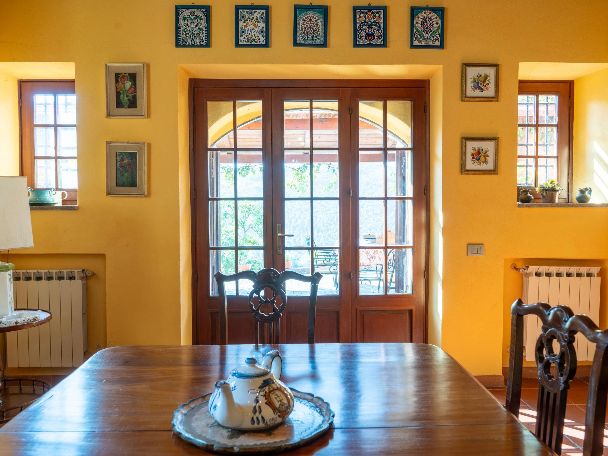 "Farfa", 6-Zimmer-Villa 250 m2 auf 2 Stockwerken. Offenes Esszimmer. Ausgang zum Garten, Pergola. Offenes Wohnzimmer mit offenem Kamin, TV und Flachbildschirm. Ausgang zum Garten, zur Loggia. Küche (4 Kochplatten, Backofen, Geschirrspüler, Mikrowelle, Tiefkühler, elektrische Kaffeemaschine) mit Esstisch. Obergeschoss: 1 Doppelzimmer mit Dusche/Bidet/WC. 2 Zimmer, jedes Zimmer mit 1 x 2 Etagenbetten. 1 Doppelzimmer. 2 Duschen/Bidet/WC. Heizung, G-Heizung (extra). Panoramasicht auf das Tal. Zur Verfügung: Waschmaschine, Bügeleisen, Fliegengitter. Internet (WLAN). Bitte beachten: Nichtraucher-Unterkunft. IT057063C23T42I23A