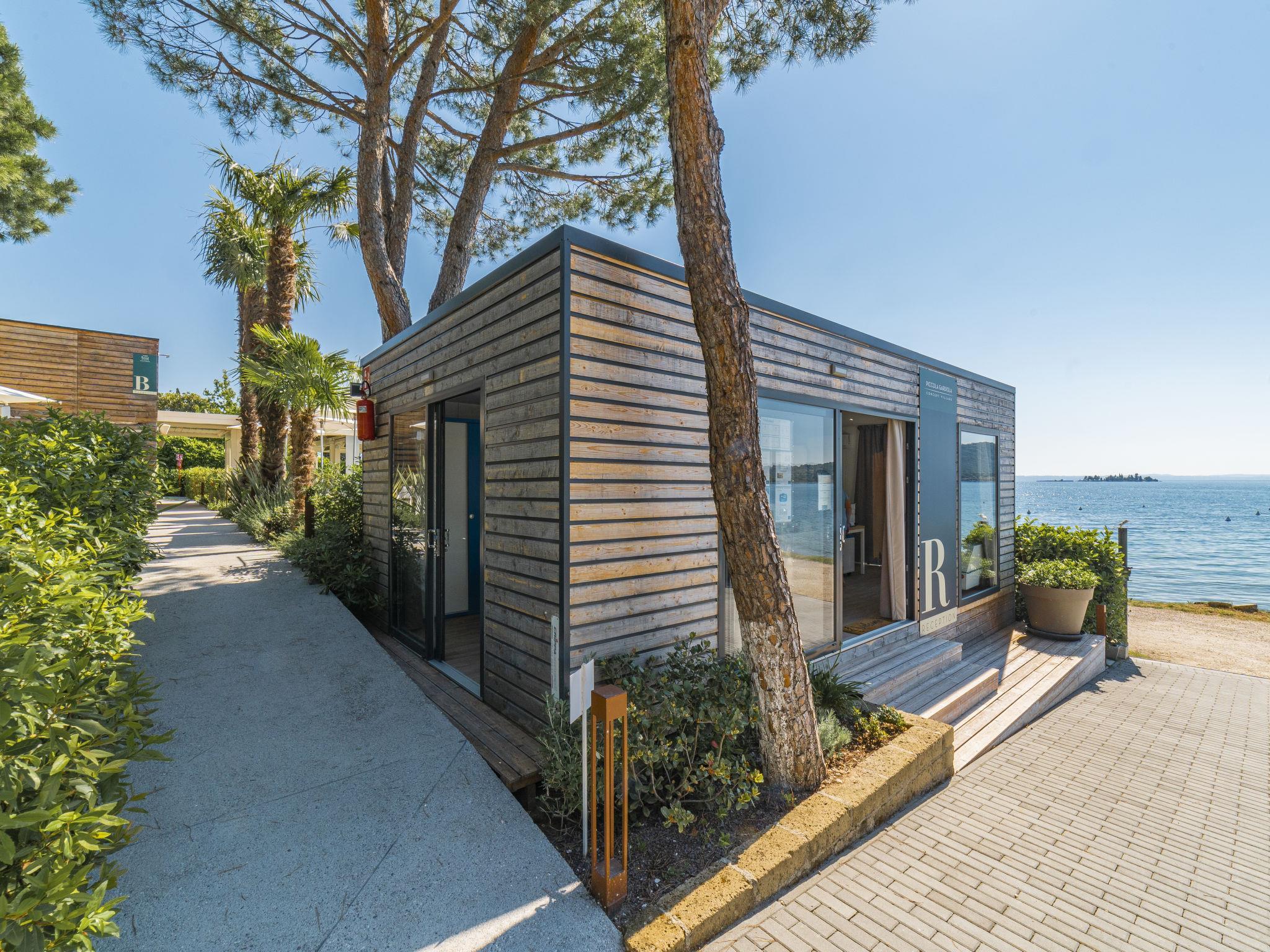 Kleine Ferienanlage "Concept Village Piccola Gardiola". 14 Häuser im Ferienresort. 2 km vom Zentrum von San Felice del Benaco, 9 km vom Zentrum von Moniga del Garda, 20 m vom See, 20 m vom Strand, in einer Sackgasse. Zur Mitbenutzung: Grundstück 3'700 m2 (eingezäunt), schöner Garten mit Bäumen. Sprudelbad, Tischtennis, Terrasse, Gartenmöbel, Kinderspielplatz. In der Anlage: Bar, Wireless LAN (extra). Frühstück möglich (extra). Lebensmittelgeschäft 2 km, Bushaltestelle 950 m, Kieselstrand 20 m. Sprudelbad geöffnet ca. 23.05.-30.09.