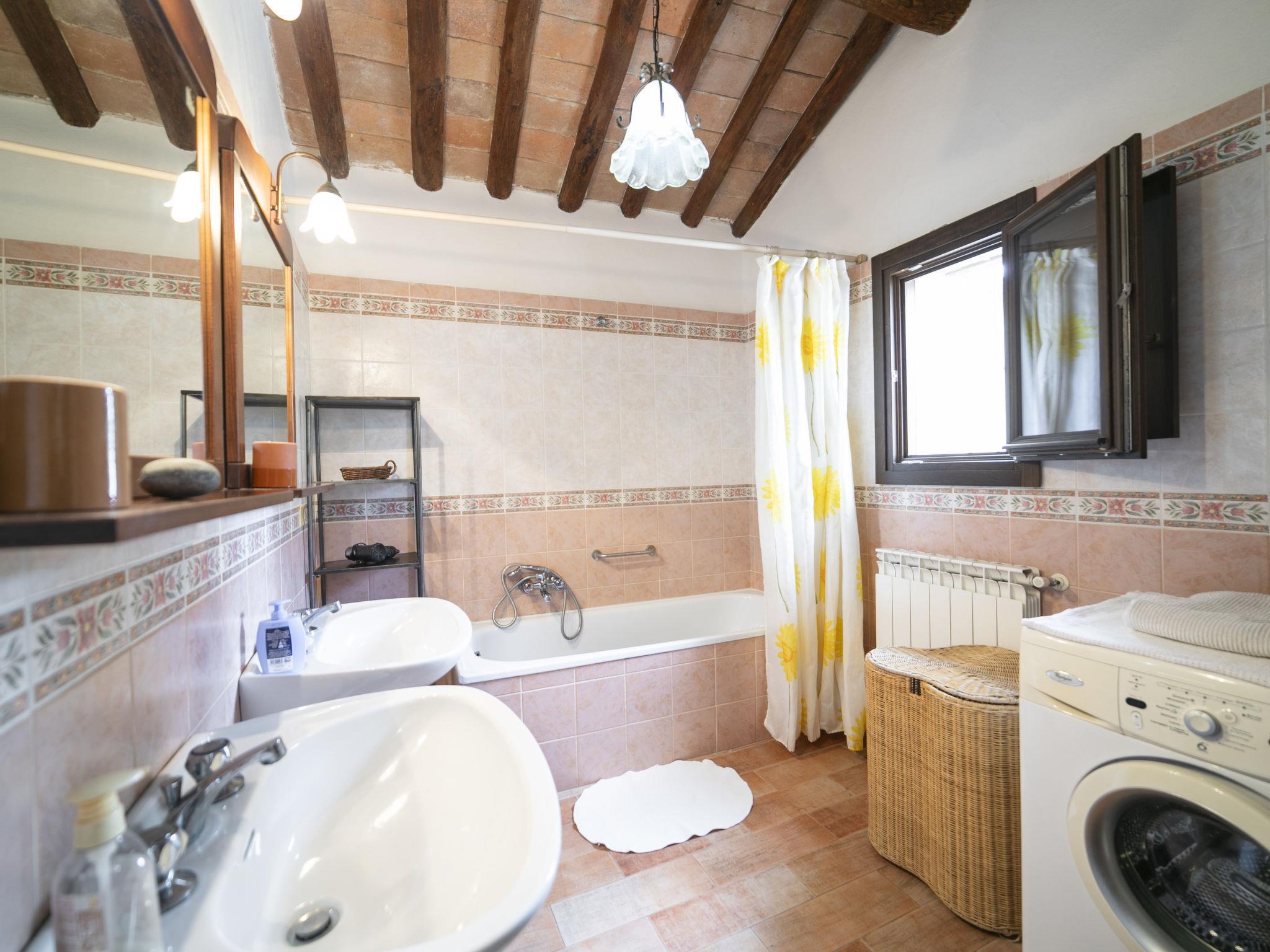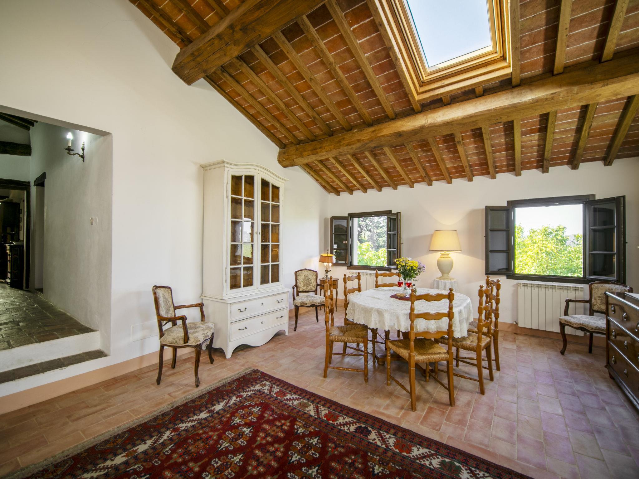 Das von uns vorgeschlagene Haus befindet sich in Panoramaposition und ist in zwei Wohnungen unterteilt, die von außen miteinander kommunizieren. Grosser, kinderfreundlicher, komfortabler Landsitz "Vedi Torre", aus dem 18. Jahrhundert, renoviert im Jahre 2004, umgeben von Bäumen und Feldern. 14 km vom Zentrum von San Gimignano, 35 km vom Zentrum von Siena, 48 km vom Zentrum von Firenze, im Bezirk Casaglia, alleinstehende, ruhige, sonnige Lage auf einem Hügel, im Grünen. Zur Alleinbenutzung: Grundstück 1'200 m2, Park 150 m2, Garten 200 m2, Schwimmbad (12 x 6 m, 140 - 200 cm tief, saisonale Verfügbarkeit: 27.Apr. - 26.Okt.). Aussendusche, Gartenmöbel, Grill, Poolpflege durch den Besitzer/Gärtner. Im Hause: Zentralheizung, Heizung vor Ort zu zahlen, Heizung nur verfügbar von 01.Nov. - 15.Apr.. Zufahrt bis zum Haus (2 km Naturweg). Parkplatz auf dem Grundstück. Supermarkt 3 km, Restaurant 3.5 km, Bushaltestelle 3 km, Bahnstation 4 km. Golfplatz (9 Loch) 10 km. Nahe gelegene Sehenswürdigkeiten: Colle Val d'Elsa 12 km, Castellina in Chianti 21 km, San Donato in Poggio 23 km, Monteriggioni 26 km, Volterra 37 km, Radda in Chianti 40 km. Bitte beachten: Autobahn 5 km vom Haus. Hauptstrasse 2 km vom Haus.