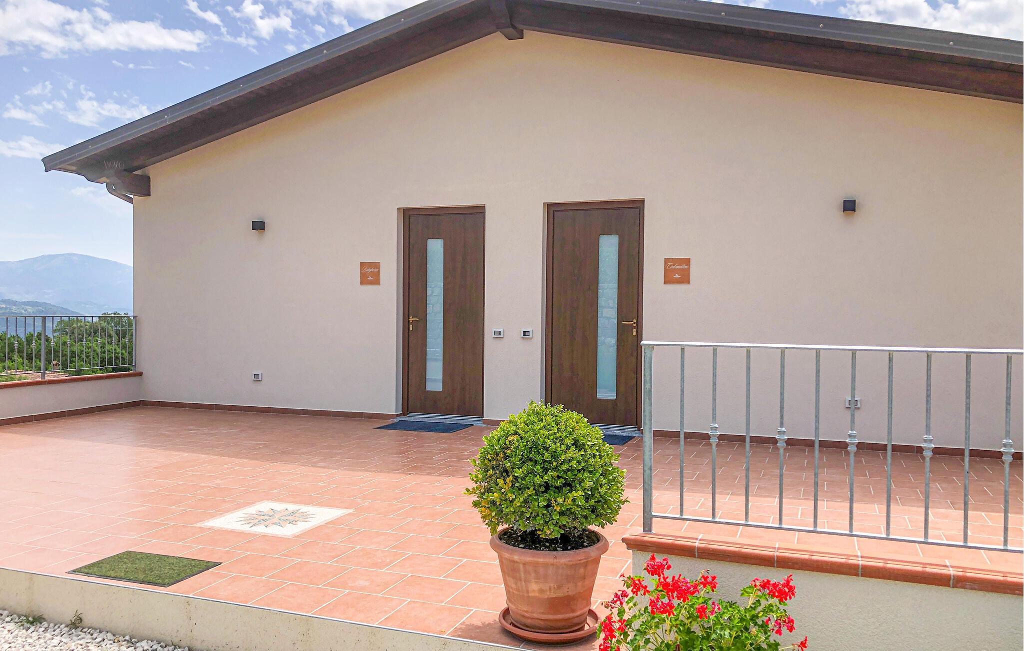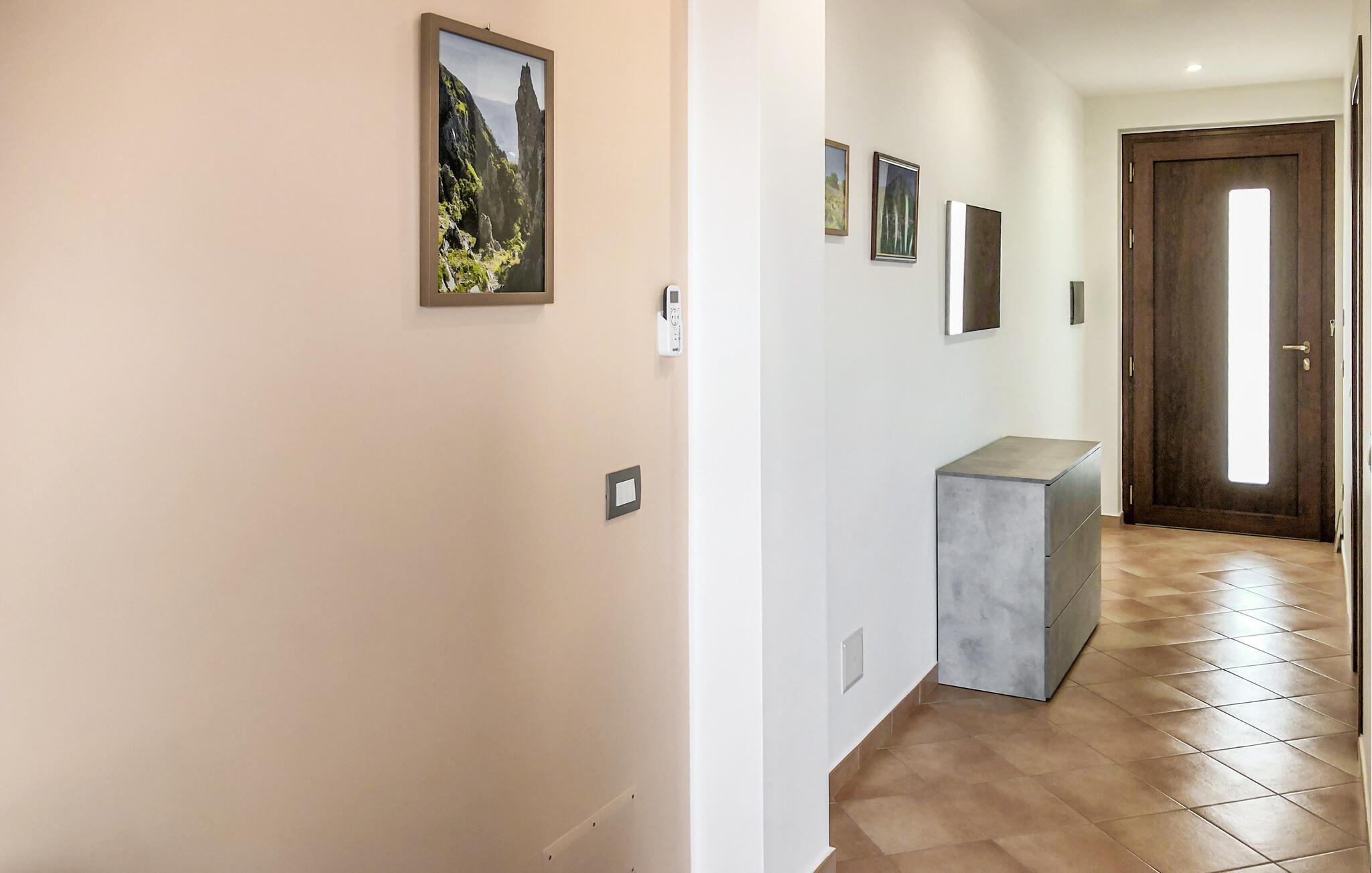 Willkommen in diesem hellen, modernen Refugium inmitten der grünen Hügel von San Giovanni a Piro. Lassen Sie den Alltag hinter sich, während Sie in der offenen Küche Ihre Lieblingsgerichte zaubern und es sich abends auf dem Sofa bequem machen, um einen Film zu streamen oder sich einer spannenden Urlaubslektüre zu widmen.