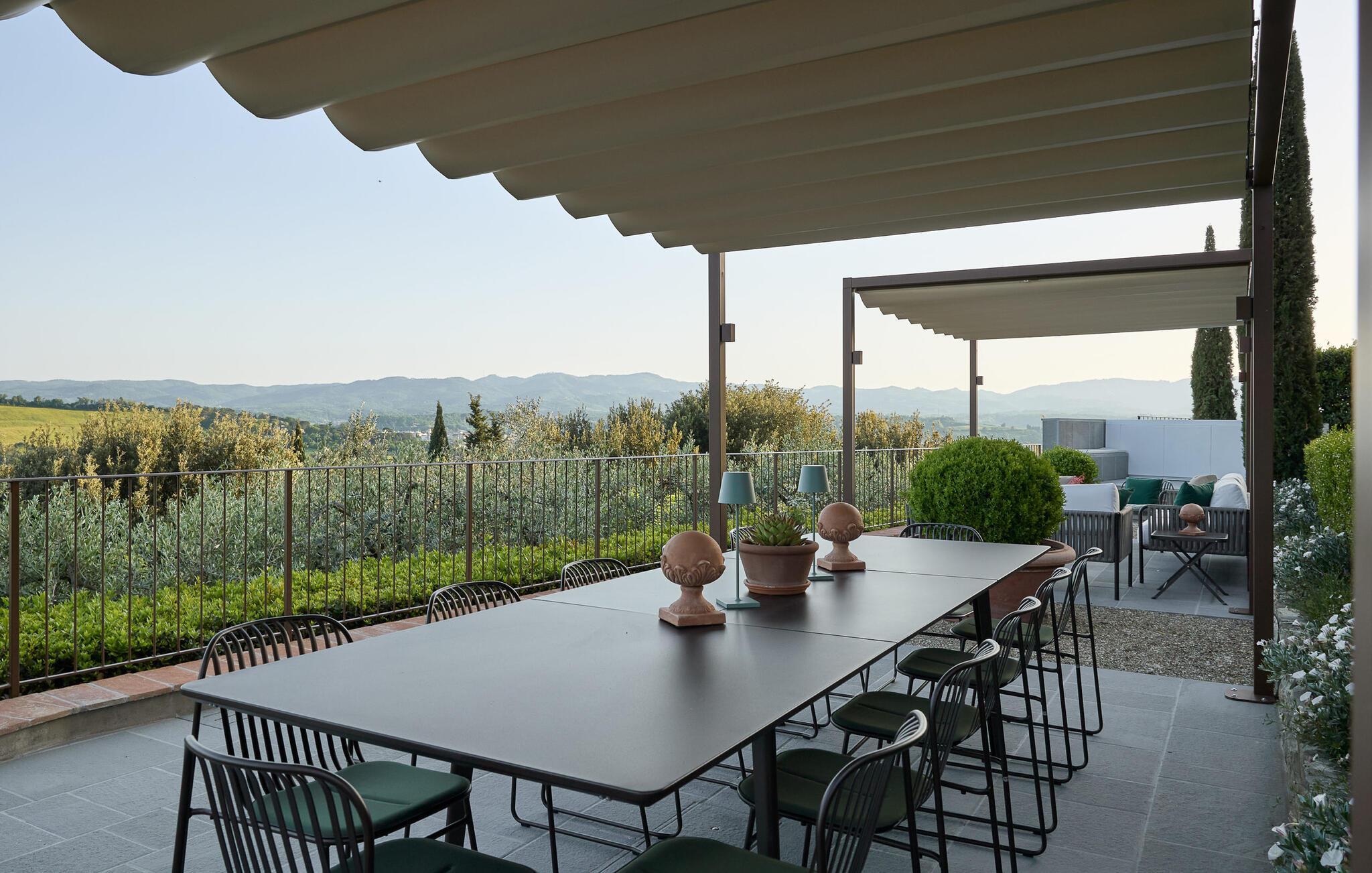 Der wunderschöne Panoramablick begleitet Sie im Außenbereich, während Sie sich im Whirlpool oder auf komfortablen Sonnenliegen entspannen oder sich für anregende Gespräche bei einem Glas Wein in den eleganten Lounge-Bereichen zusammenfinden. Ziehen Sie gemächlich Ihre Bahnen im Pool und zelebrieren Sie die gemeinsame Zeit mit stimmungsvollen Grillabenden.