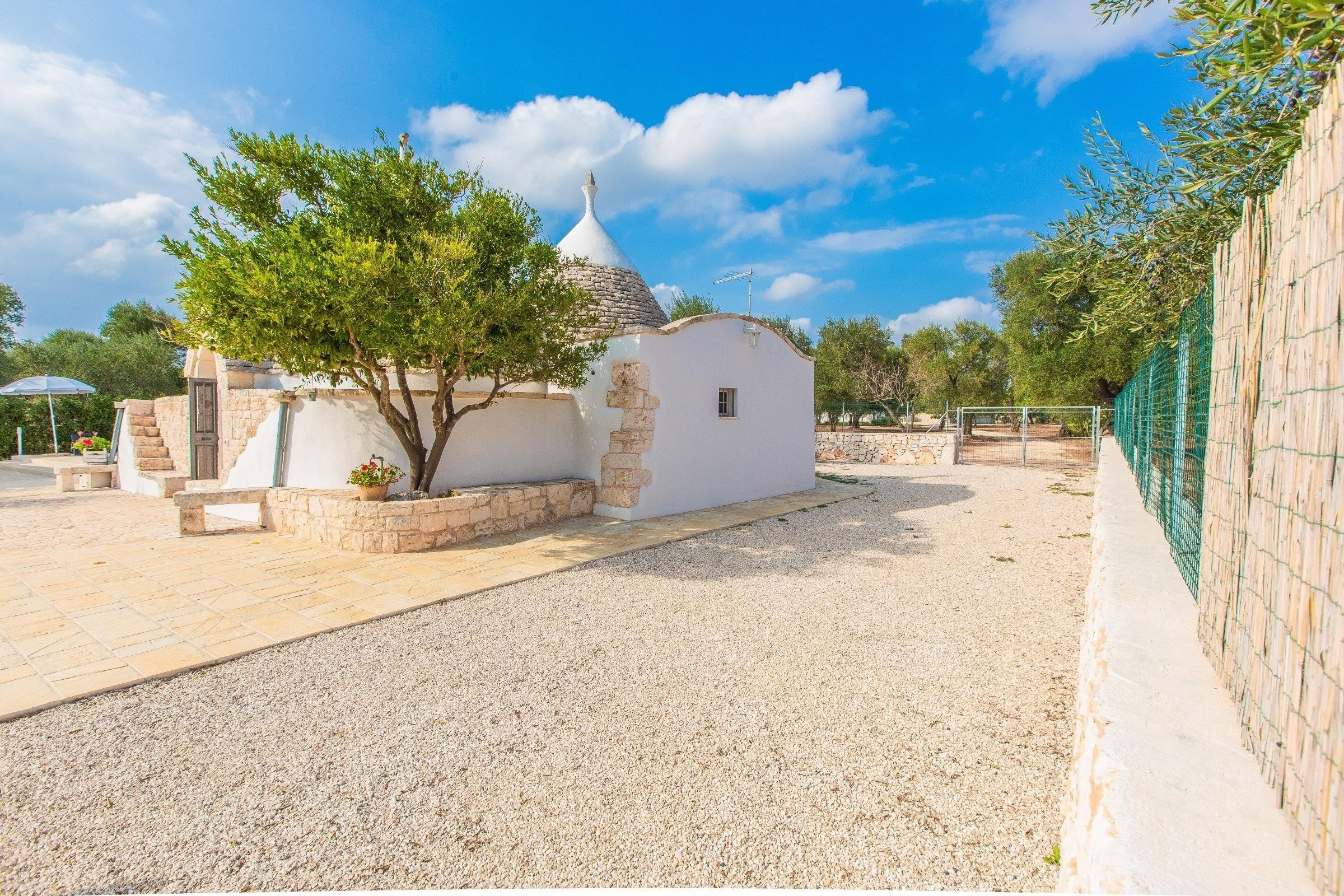 Der Trullo hat einen schönen Vorhof mit Blick auf den 5000qm großen Garten mit einigen verschiedenen Fruchtbäumen (nicht eingezäunt). Eine Außendusche für nach dem Strandbesuch ist auch vorhanden. Genießen Sie Tagsüber den natürlichen Schatten der massiven Olivenbäume um im Freien zu speisen. Dank dem Außengrill können Sie Ihren Tag hier herrlich inmitten der Natur ausklingen lassen oder Abends dank der Außenbeleuchtung vielleicht um ein gutes Buch zu lesen.