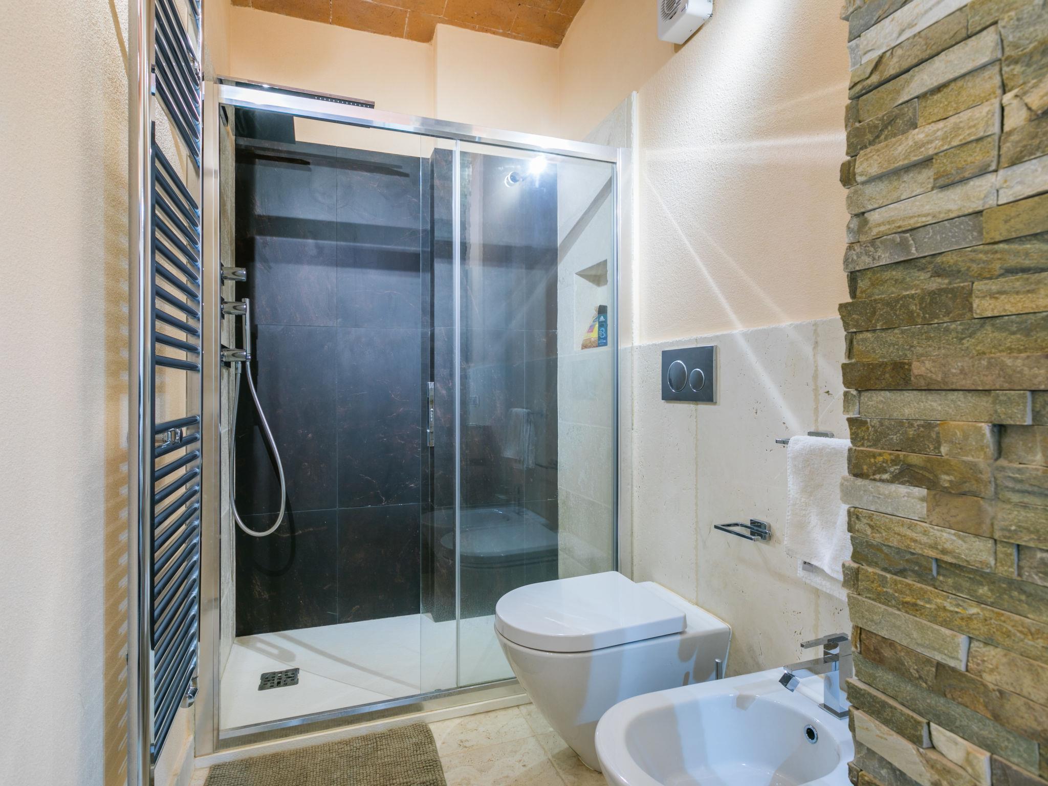 6-Zimmer-Haus 160 m2 auf 2 Stockwerken, im Erdgeschoss. Rustikal und geschmackvoll eingerichtet: Wohnzimmer mit offenem Kamin, Sat-TV und Internationale TV-Sender. 2 Doppelzimmer. 1 Zimmer mit 2 Betten. Dusche/Bidet/WC. Unteres Geschoss: 1 Zimmer mit 1 franz. Bett (140 cm). Wohn-/Esszimmer mit offenem Kamin und Sat-TV. Ausgang zum Garten. Kochnische (Backofen, Geschirrspüler, 4 Induktionskochplatten, Toaster, Tiefkühler, elektrische Kaffeemaschine). Dusche/Bidet/WC. E-Heizung, Klimaanlage. Natursteinboden. Terrasse 45 m2, überdacht Terrasse 20 m2, überdacht. Terrassenmöbel, Gartengrill, Liegestühle (8). Panoramasicht auf San Miniato. Zur Verfügung: Waschmaschine, Wäschetrockner, Bügeleisen, Kinderhochstuhl, Babybett bis 2 Jahre, Haartrockner. Internet (Wireless LAN, gratis). Parkplatz (überdacht, eingezäunt, 3 Autos) beim Haus. Bitte beachten: geeignet für Familien. Nichtraucher-Haus. Eigener Eingang. Beide Badezimmer verfügen über eine Dusche mit entspannendem Wasserfall. In der unteren Etage befindet sich ein Waschraum, der mit einem Waschbecken, einer Waschmaschine, einem Trockner und einem zusätzlichen Kühlschrank ausgestattet ist. IT050032C2785S9K7F