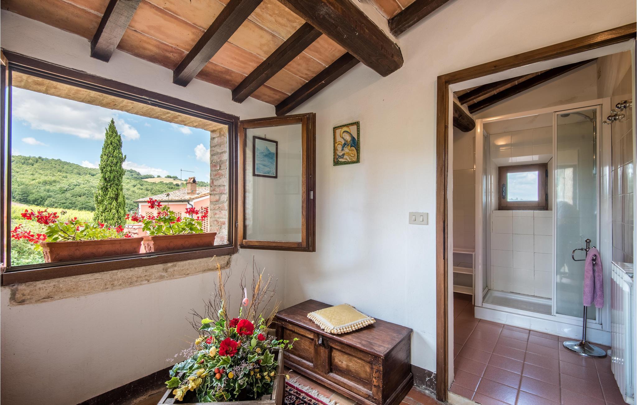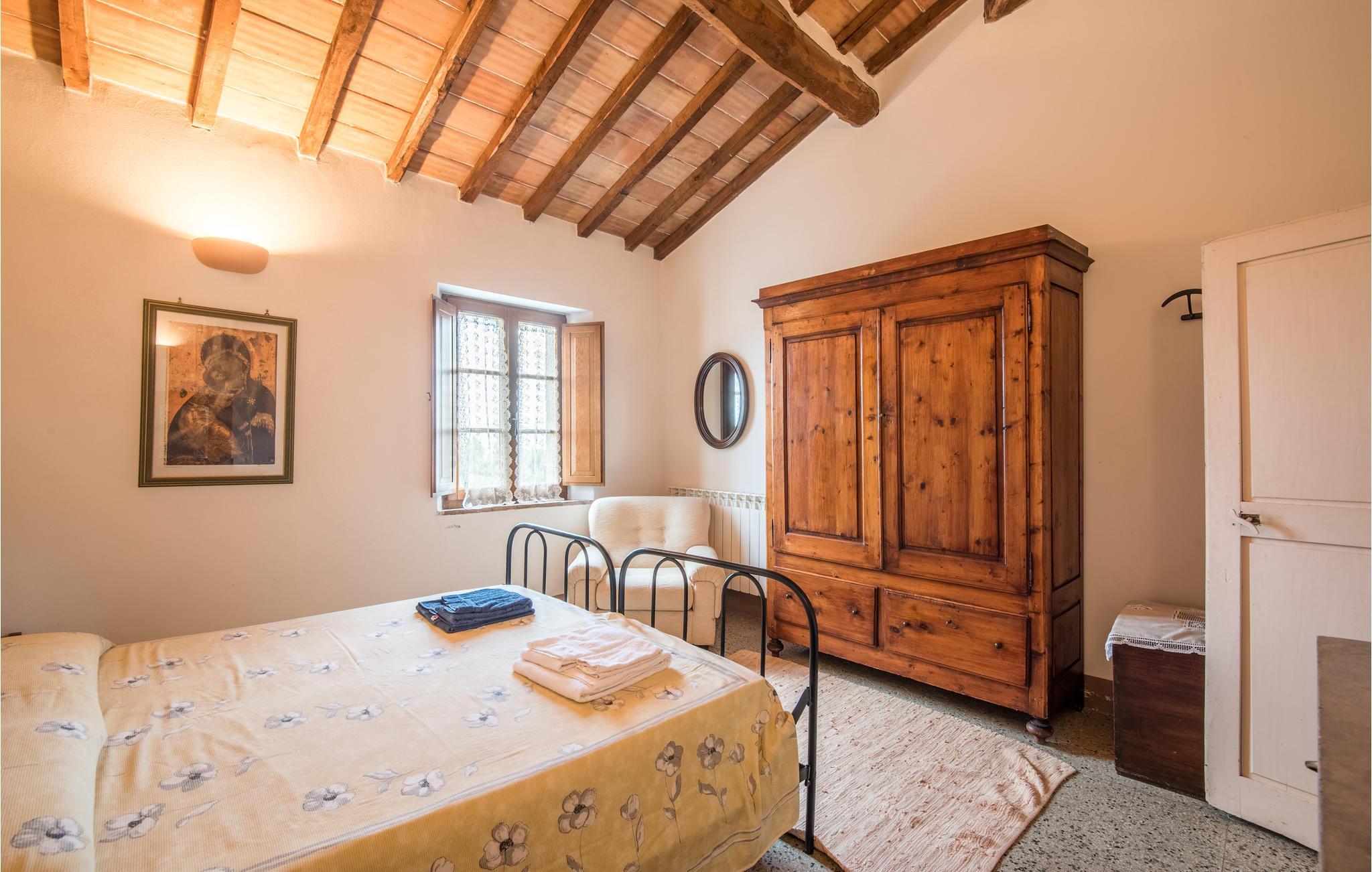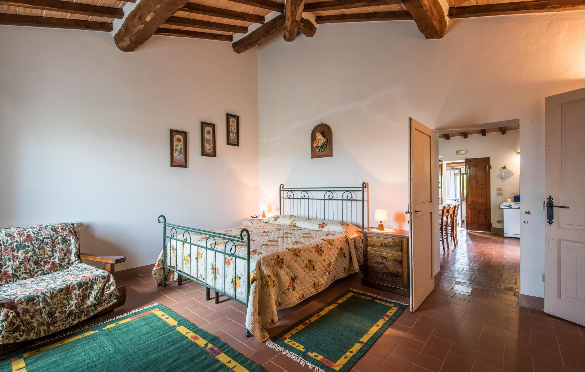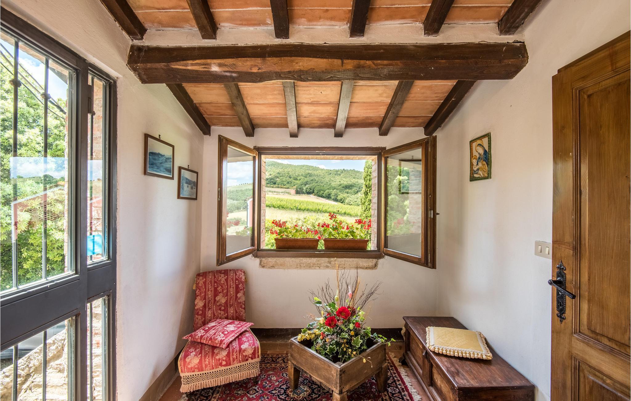 Sie werden sich vom ersten Augenblick an wohlfühlen in diesem Haus, das Sie inmitten toskanischer Weinberge erwartet und der ideale Ort für einen schönen Aufenthalt mit der ganzen Familie ist. Lassen Sie sich in den hellen Räumen häuslich nieder, die wohnliche Einrichtung im Landhausstil, geflieste Böden und dekorative Holzdecken sorgen für ein behagliches Ambiente. Machen Sie es sich abends gemeinsam am Esstisch im Wohnbereich bequem und schmieden Sie Pläne für die nächsten Tage.