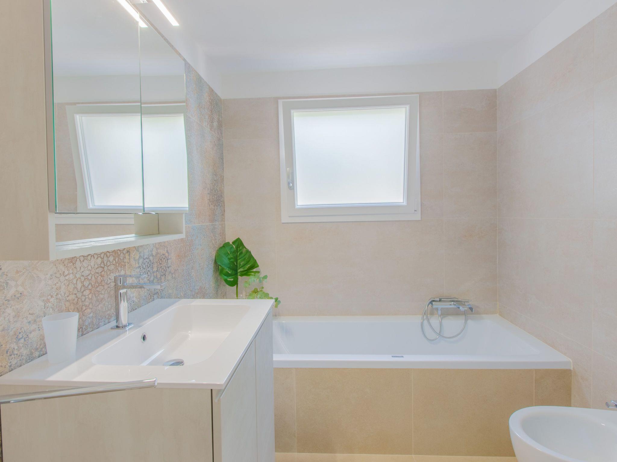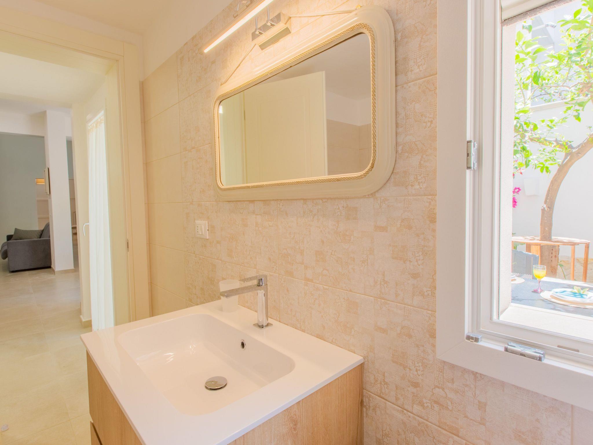 n.1 Schlafzimmer mit Doppelbett, n.1 Schlafzimmer mit zwei zusammenstellbaren Einzelbetten und einem Fenster zum Wohnzimmer, n.1 Wohnzimmer mit Kochnische und Doppelschlafsofa, n.1 Badezimmer mit Badewanne, n.1 Badezimmer mit Dusche, n.1 Vorraum. Ein Kinderbett wird auf Anfrage angeboten.