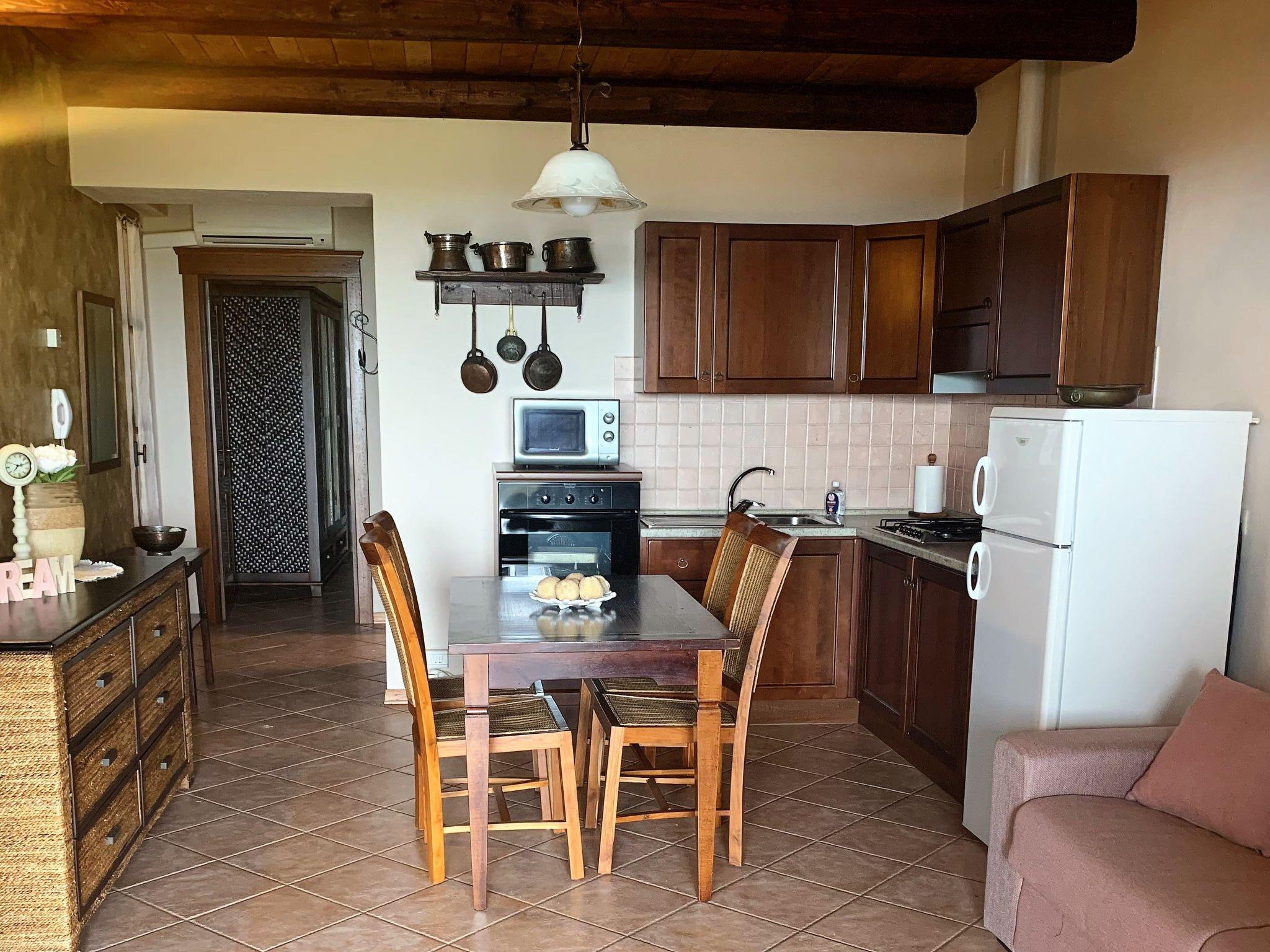 Im Inneren finden Sie eine voll ausgestattete Küche mit Gasherd, Mikrowelle, elektrischer Kaffeemaschine, Wasserkocher und einer Auswahl an Teesorten, ideal für die Zubereitung köstlicher Mahlzeiten wie zu Hause. Das Wohnzimmer ist mit einem Smart-TV und einem Schlafsofa ausgestattet, auf dem Sie sich nach einem Tag voller Entdeckungen entspannen können. Das Schlafzimmer mit Doppelbett verspricht eine ruhige und erholsame Nachtruhe, während die Klimaanlage in allen Zimmern Ihren Komfort unabhängig von der Jahreszeit gewährleistet. Ein eigenes Bad mit Dusche und ein Wäschetrockner, der im Gebäude gemeinschaftlich genutzt wird, vervollständigen die Einrichtung.