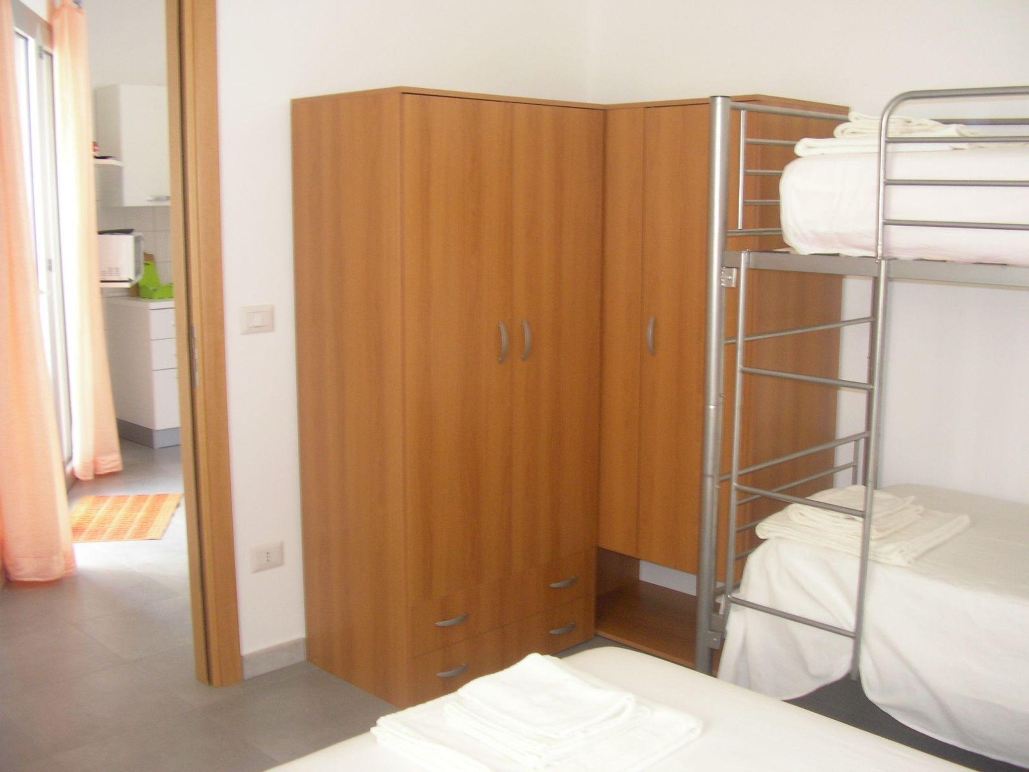 Die Villa besteht aus zwei Schlafzimmern: eines mit einem Doppelbett und einem Etagenbett (für 4 Personen), das andere mit zwei Einzelbetten, einer Wohnküche, einem Badezimmer und einem Balkon auf der Rückseite mit Waschgelegenheit. Vorne gibt es eine Terrasse mit Tisch, Sesseln und Sonnenschirm. Es gibt einen Außenparkplatz, der durch ein Tor abgeschlossen ist. Es ist mit neuen Möbeln eingerichtet und verfügt über folgenden Komfort: Betten mit Holzlattenrost, Klimaanlage/Heizung in jedem Zimmer, Außendusche mit Warm-/Kaltwasser, Waschmaschine, eingebauter Safe, 32"-Satellitenfernseher Led und kostenloser Internetzugang, obwohl das Signal nicht sehr gut ist. Die Wohnküche ist mit einem Herd, einem elektrischen Ofen, einer Mikrowelle, einem Kühlschrank und einem Toaster ausgestattet und mit Sesseln möbliert.