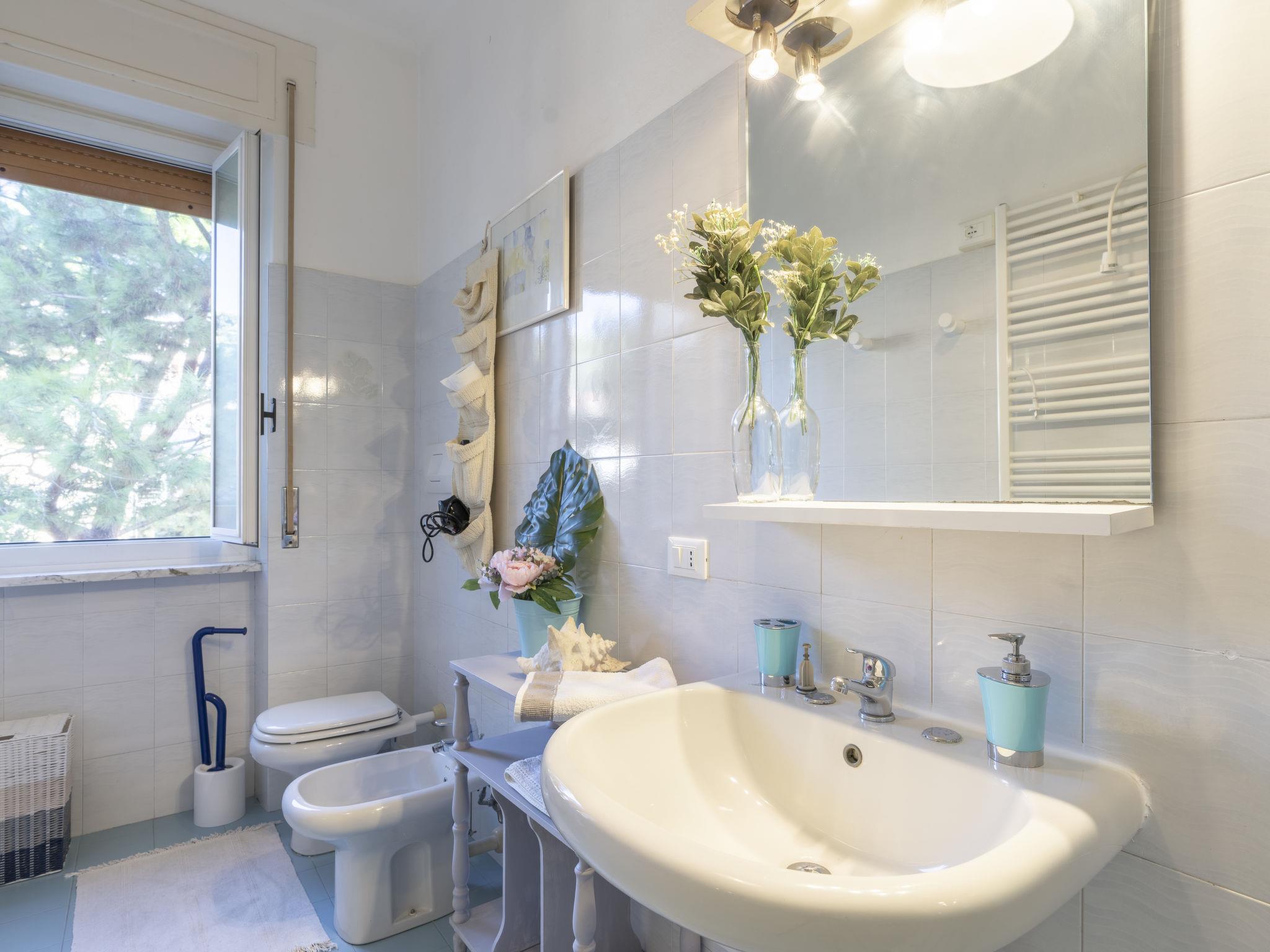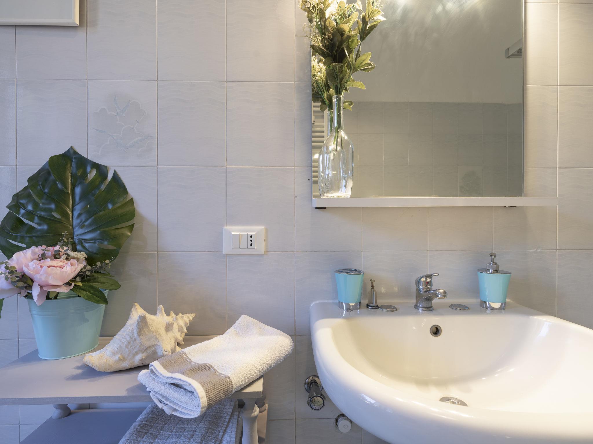 "Imperatrice (SRM127)", 2-Zimmer-Wohnung 50 m2 im 2. Stock. Hell, modern eingerichtet: Wohn-/Schlafzimmer mit 1 Doppeldiwanbett (180 cm), Esstisch und TV. 1 Zimmer mit 1 Bett (80 cm), 1 franz. Bett (160 cm). Ausgang zum Balkon. Kleine, offene Küche (Backofen, 4 Flammen, Toaster, Wasserkocher, Mikrowelle, elektrische Kaffeemaschine) mit kleiner Bar. Dusche/Bidet/WC. G-Heizung. Kleiner Balkon 6 m2. Balkonmöbel. Zur Verfügung: Waschmaschine, Bügeleisen, Kinderhochstuhl, Babybett. Internet (Wireless LAN, gratis). Maximal 1 Haustier/Hund erlaubt. Flexibilität bei der Bettenaufteilung: Es stehen mehr Schlafmöglichkeiten zur Verfügung als die maximal zugelassene Personenzahl, diese darf dennoch nicht überschritten werden. IT008055C2DKS5E2E5