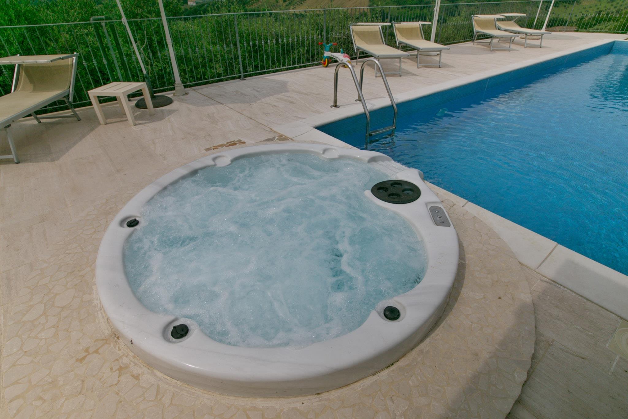 Diese charmante Villa liegt in einer hügeligen Gegend im Norden der Region Abruzzen und 11 km vom Meer entfernt. Von der Villa aus haben Sie einen schönen Blick auf die Berge rund um das Tal und den Gran Sasso, dem höchsten Gipfel des Apennin. Die Villa ist elegant und geschmackvoll eingerichtet und bietet seinen Gästen einen wunderbar ruhigen Ort. Die Villa besteht aus zwei Wohnungen mit separatem Eingang. Es gibt einen schönen Jacuzzi neben dem Pool (gegen Gebühr, vor Ort zu zahlen). Der Salzwasser-Pool wird durch Sonnenkollektoren erwärmt. Die charmante Stadt Sant'Omera ist 800 Meter von der Villa entfernt. Es gibt mehrere Restaurants und Bars, wo man schmeckt. Specialties porchetta und Kabeljau Die Villa ist von einem großen Olivenhain und einem großen Garten mit einem schönen Pool umgeben. Der Vermieter wohnt in der Nähe der Villa. Die Umgebung ist ideal zum Wandern und Radfahren, und lohnt sich der Naturpark Gran Sasso Monti della Laga, Civitella del Tronto, Campli, Teramo e Atri.