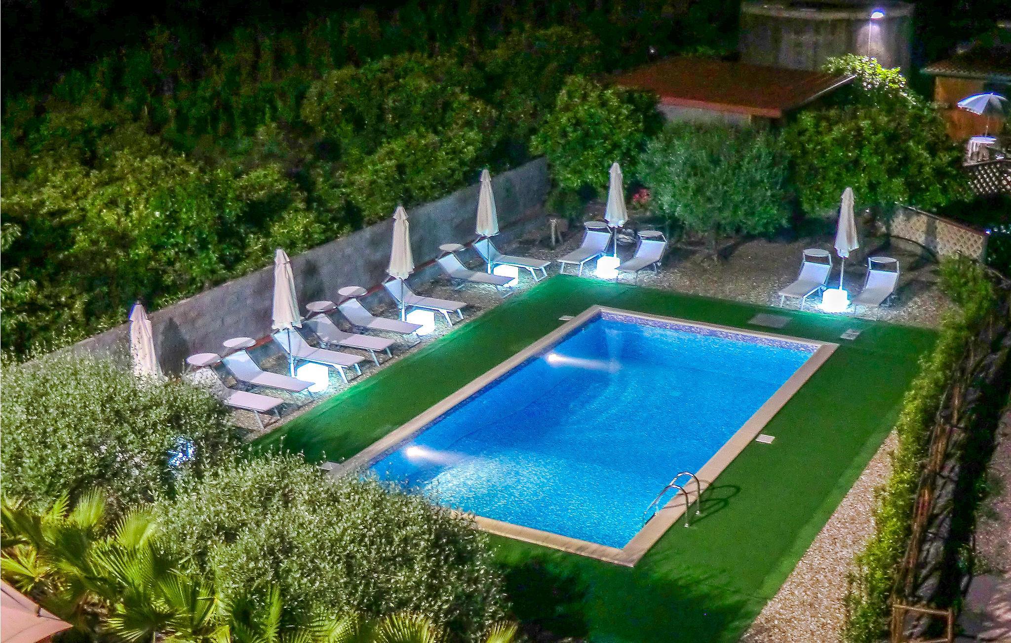 Von Ihrer Terrasse aus bietet sich ein schöner Blick auf die mediterrane Vegetation und den Pool. Starten Sie hier mit einem entspannten Frühstück in den Tag und nutzen Sie bei Sonnenuntergang den kleinen Grill. Erfrischen Sie sich nach Lust und Laune im gemeinschaftlichen Pool und lassen Sie auf der Sonnenliege die Seele baumeln.