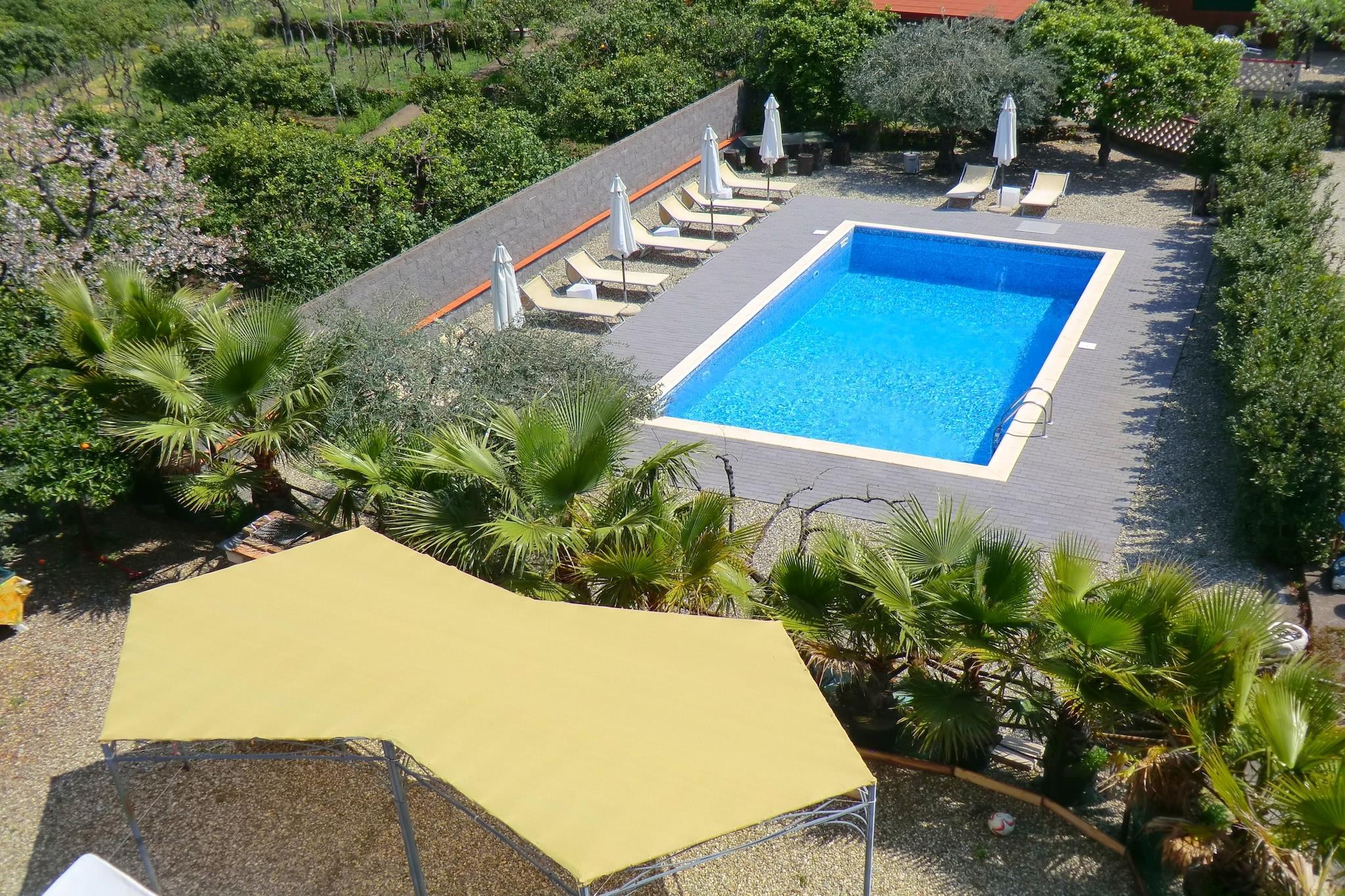Entspanntes Wohnen am Ätna Genießen Sie einen ruhigen Rückzugsort in diesem klimatisierten Apartment in einer charmanten Villa mit großer Terrasse, 3D-Kino, Billardtisch und Salzwasserpool, den Sie sich mit nur zwei weiteren Apartments teilen. Der Garten mit Liegestühlen und Grill lädt zum Sonnenbaden ein. Kinder können sich auf dem Spielplatz vergnügen, und Haustierbesitzer werden das offene Gelände und die nahegelegenen Wanderwege lieben. Gäste können außerdem im saisonalen Gemüsegarten regionale Produkte genießen. Entdecken Sie den Ätna und seine ikonische Umgebung Das Apartment liegt an den Hängen des Ätna und bietet eine schnelle Anbindung an Acireale (5 km) mit seiner barocken Architektur und der Strandpromenade. Zafferana Etnea, bekannt für seine Honig- und Naturfestivals, ist nur 7 km entfernt, während die Wanderwege des Ätna-Nationalparks nur 15 km entfernt liegen. Strandliebhaber finden die Lavafelsen von Pozzillo und Stazzo in der Nähe. Ein Tagesausflug nach Catania oder Taormina bietet reiche Kultur, Geschichte und atemberaubende Ausblicke. Sizilianische Aromen überall Santa Venerina ist bekannt für seine handgemachten Süßigkeiten und lokal destillierten Spirituosen. Traditionelle sizilianische Küche finden Sie im Ristorante I Russo oder La Cantina di Bacco, beide nur wenige Minuten entfernt. Verpassen Sie nicht die Honigläden von Zafferana oder ein Meeresfrüchte-Festmahl im nahegelegenen Acitrezza, bekannt für seine legendären Felsnadeln und seinen frischen Fang. Jeder Bissen bringt Sie dem wahren Geschmack Siziliens näher.