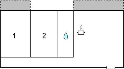 Badezimmer (nr. 1) - WC. Warmes und kaltes Wasser. Dusche