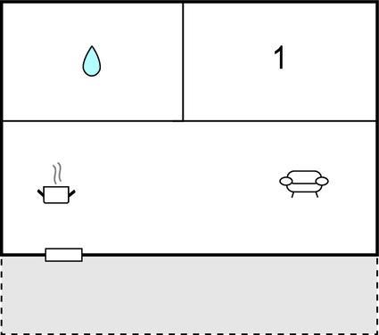 Badezimmer (nr. 1) - WC. Warmes und kaltes Wasser. Dusche