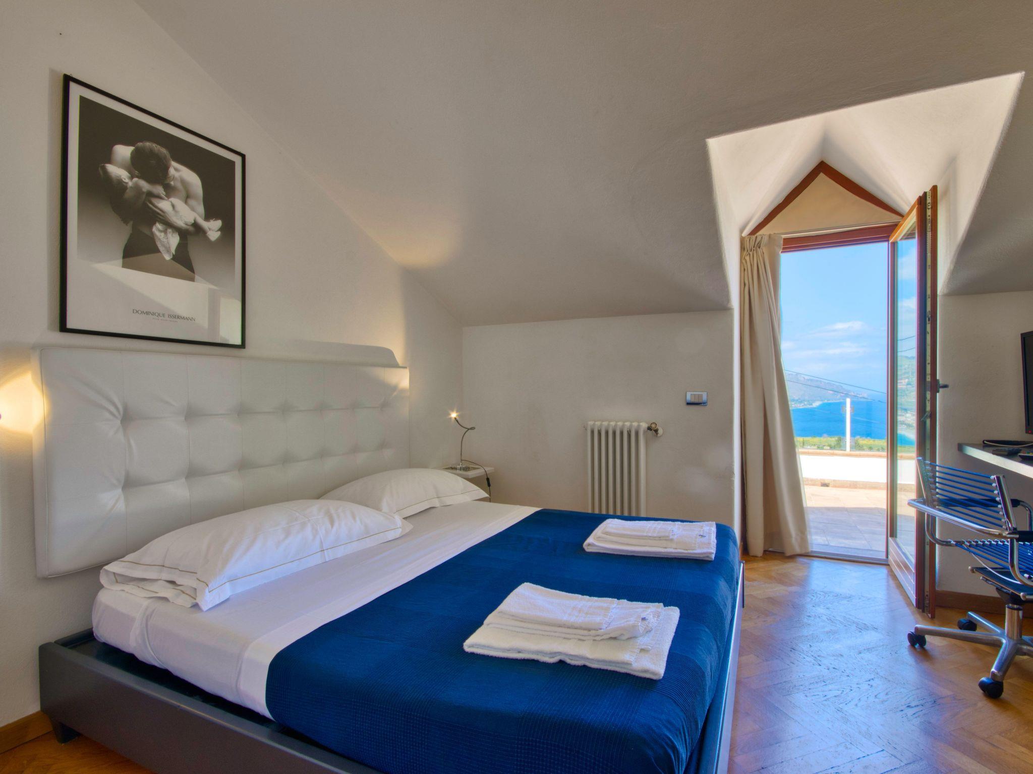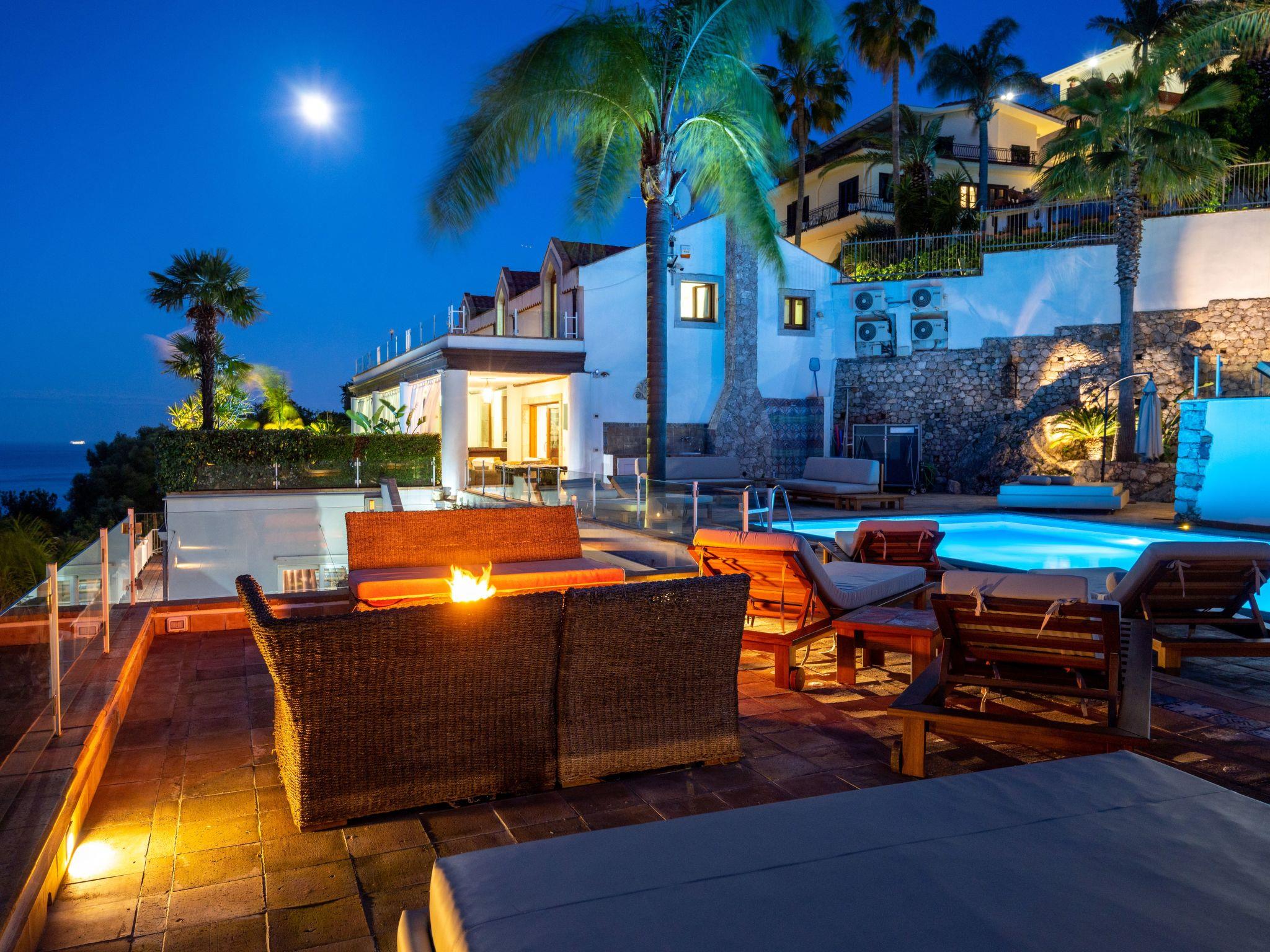 Der Außenbereich der Villa verfügt über einen schönen Innenhof mit terrassenförmigem Garten, einen herrlichen beheizten Whirlpool mit 6 Plätzen, Aromatherapie, Farbtherapie und Sauerstofftherapie und einen Blick aufs Meer. Es gibt einen Grillplatz, eine Sonnenterrasse und einen schönen Swimmingpool im Freien, ebenfalls mit Meerblick, den man sich mit den anderen Gästen der darunter liegenden Dependancen teilt und der über eine Abteilstruktur zugänglich ist. Parken ist in der Umgebung möglich, oder auf Anfrage und gegen Bezahlung auf dem Gelände innerhalb der Villa, je nach Verfügbarkeit.