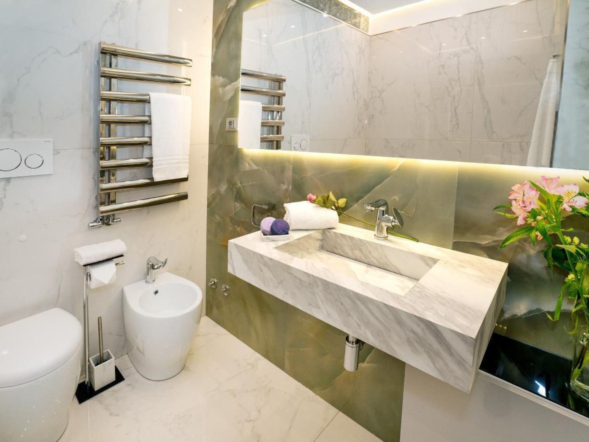 Dieses Apartment bietet zwei Schlafzimmer, die alle mit hochwertigen Möbeln (und hochwertigen Matratzen) ausgestattet sind, sodass Sie bequem schlafen können. Für jedes Schlafzimmer gibt es ein separates Badezimmer, eines mit Dusche, eines mit Badewanne und Bidet.
