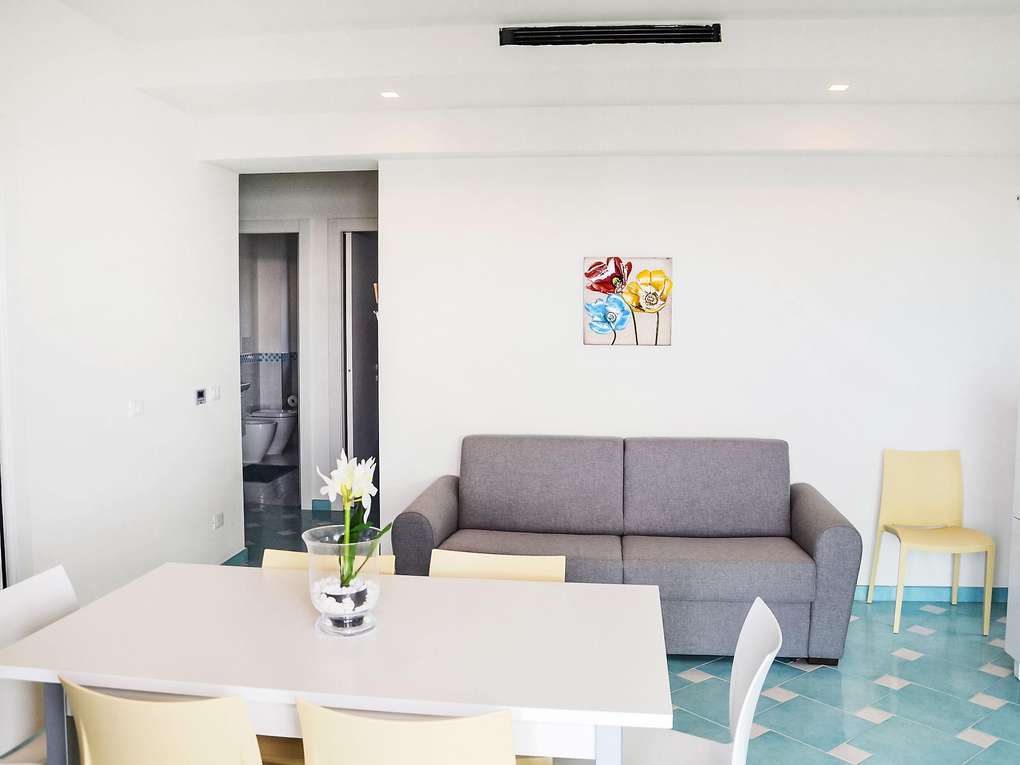 "Appartamento 3", 3-Zimmer-Wohnung 63 m2 im 1. Stock. Sehr komfortabel und modern eingerichtet: Wohn-/Esszimmer mit 1 Doppeldiwanbett und TV (Flachbildschirm). Ausgang zum Balkon. 1 Doppelzimmer mit Dusche/Bidet/WC. 1 Zimmer mit 1 x 2 Etagenbetten. Offene Küche (Backofen, Geschirrspüler, 4 Induktionskochplatten, Mikrowelle, Tiefkühler). Dusche/Bidet/WC. Heizung, Klimaanlage. Balkonmöbel. Sehr schöne Sicht auf das Meer. Zur Verfügung: Waschmaschine, Safe, Haartrockner. Internet (Wireless LAN, gratis). 1 kleines Haustier/Hund erlaubt. IT059032B46A7JW929