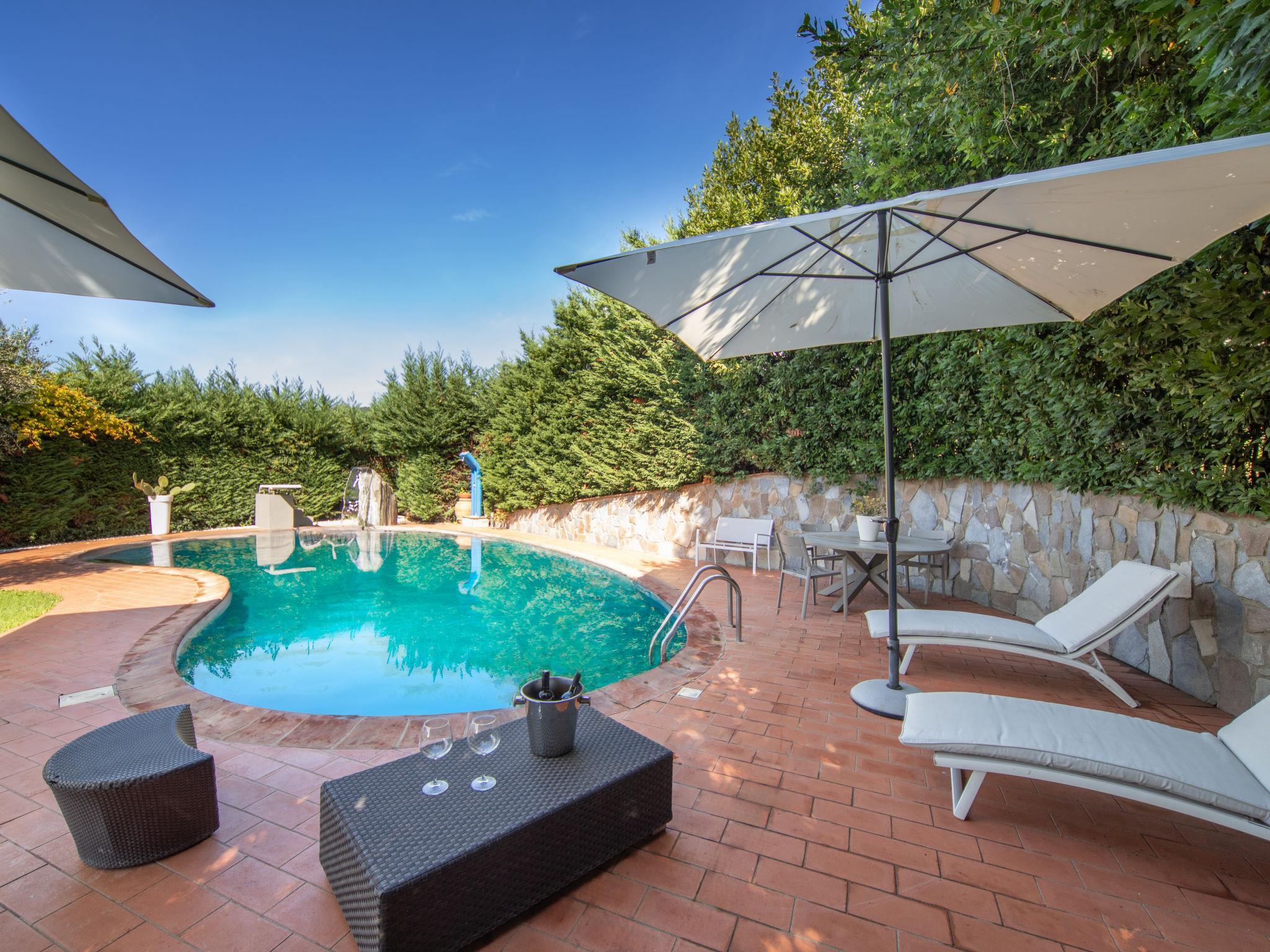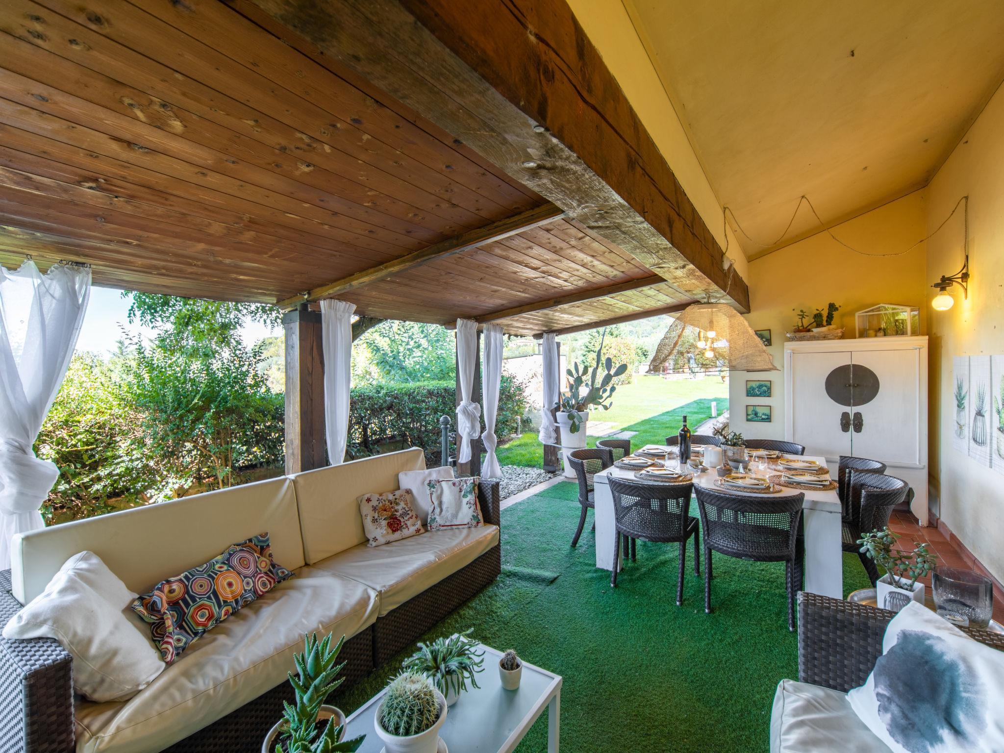 "Villa Il Guscio", 8-Zimmer-Haus 400 m2 auf 3 Stockwerken, im Erdgeschoss. Geräumig und hell, stilvoll und gemütlich eingerichtet: Eingang. Offenes grosses Wohnzimmer mit offenem Kamin und Klimaanlage. Ausgang zum Garten. Offenes Esszimmer mit Klimaanlage. Ausgang zum Garten. 1 Zimmer mit 1 Bett und 1 Doppelbett. Grosse Küche (Backofen, Geschirrspüler, 6 Induktionskochplatten, Toaster, Wasserkocher, Mikrowelle, Tiefkühler, elektrische Kaffeemaschine, Pizzaofen). Ausgang zum Garten. Dusche/WC. Unteres Geschoss: Wohnzimmer. Spielzimmer. Obergeschoss: gross, 1 Zimmer mit 1 Bett, 1 Doppelbett, Bad/Dusche/Bidet/WC, Sprudelbad und Klimaanlage. 1 Doppelzimmer mit Dusche/Bidet/WC und Klimaanlage. 1 Doppelzimmer mit Dusche/Bidet/WC und Klimaanlage. Klimaanlage (extra). Terrassenmöbel, Gartengrill. Panoramasicht auf die Landschaft. Zur Verfügung: Waschmaschine, Bügeleisen, Kinderhochstuhl, Babybett bis 2 Jahre, Haartrockner. Internet (WLAN, gratis). Geeignet für Familien. IT051039C25ZPN5GIG