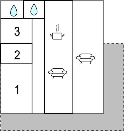 Badezimmer 6m2 (nr. 1) - WC. Warmes und kaltes Wasser. Dusche