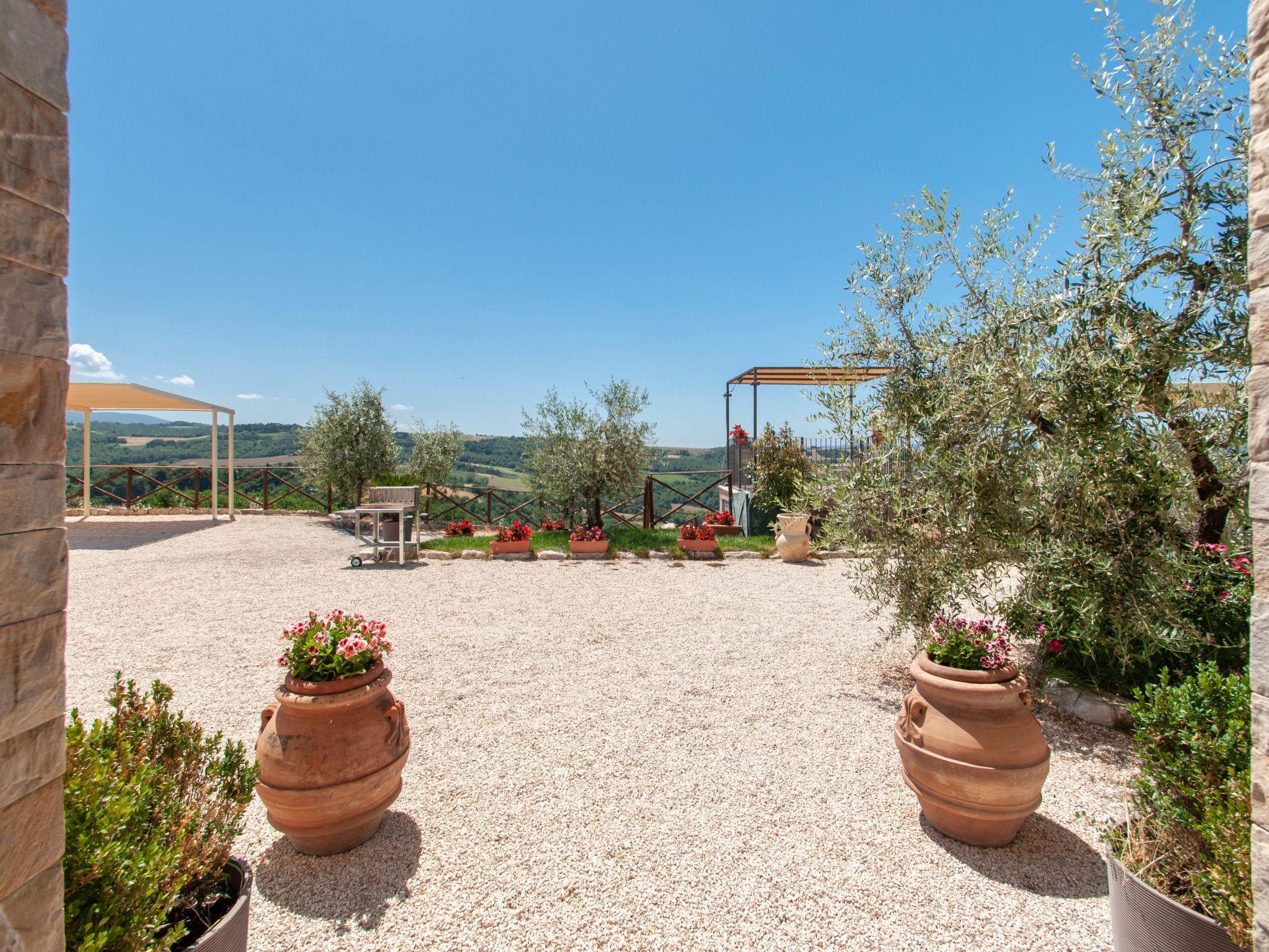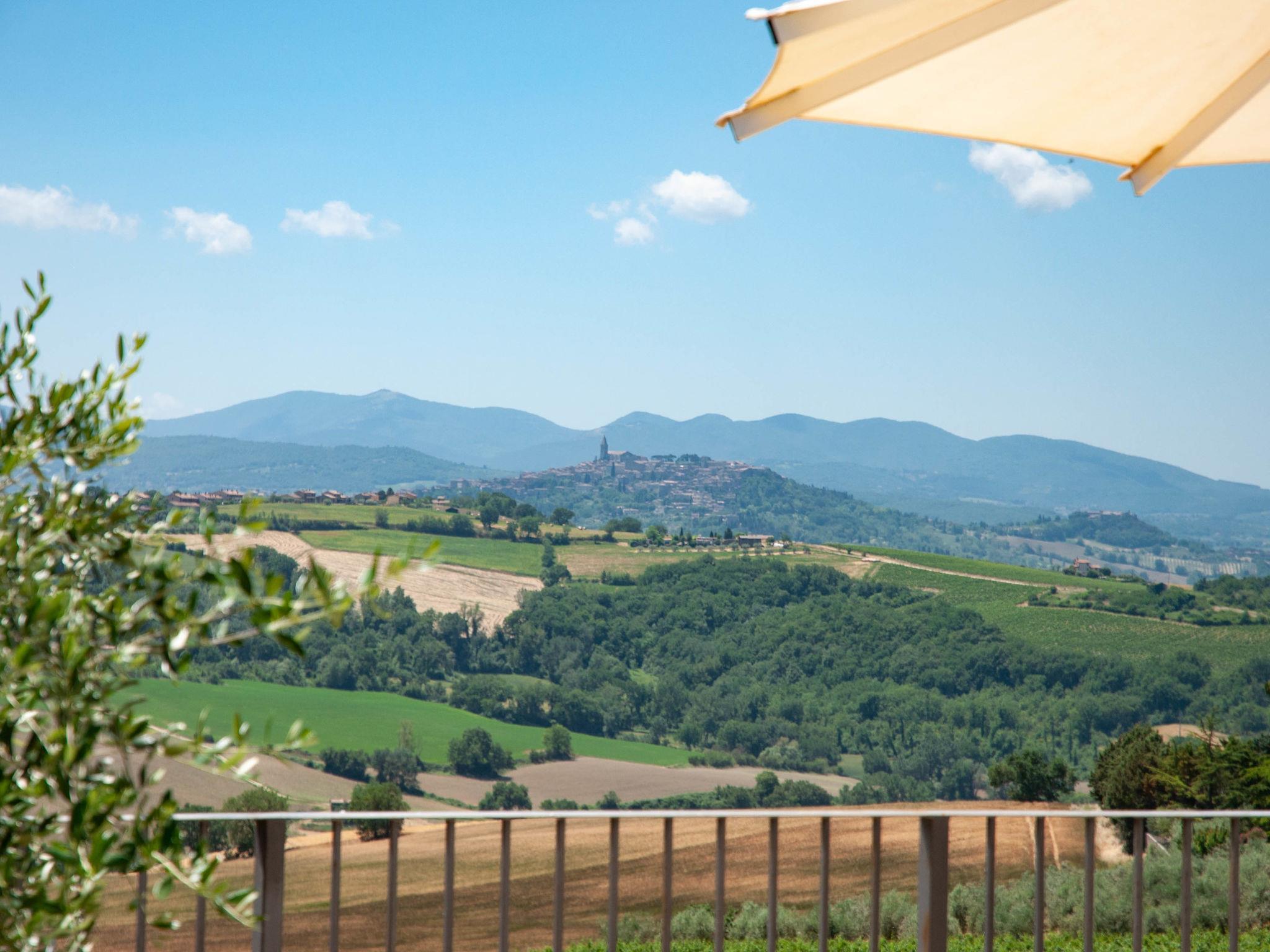 Diese moderne, helle und komfortable Villa ist perfekt in die Landschaft integriert und für diejenigen ideal, die einen Urlaub inmitten der Natur verbringen möchten, ohne auf Komfort verzichten zu müssen. Moderne, freistehende, komfortable Villa "Futura", 350 m.ü.M., Baujahr 2015, umgeben von Feldern. 9 km vom Zentrum von Todi, sonnige Lage auf einem Hügel. Zur Alleinbenutzung: Garten 1'000 m2, Schwimmbad (6 x 12 m, 145 cm tief, saisonale Verfügbarkeit: 07.Apr. - 30.Sep.) mit Innentreppe. Aussendusche, Sitzplatz, Gartenmöbel, Grill, Kinderspielplatz. Im Hause: Fahrräder vorhanden (extra). Zur Verfügung: Fahrräder (5). Wohnungsreinigung täglich möglich (extra). Haushaltshilfe täglich möglich (extra). Zufahrt (100 m Naturweg). Parkplatz (für 4 Autos, überdacht) beim Haus. Lebensmittelgeschäft 3 km, Supermarkt 6 km, Restaurant 3 km, Bar 3 km, Bahnstation "Todi (Ponte Rio)" 8 km, Badesee "Trasimeno" 53 km. Nahe gelegene Sehenswürdigkeiten: Bevagna 26 km, Spoleto 37 km, Foligno 30 km, Orvieto 41 km, Perugia 45 km. Bitte beachten: Fahrzeug empfohlen. Babyausstattung. Jugendgruppen nur auf Anfrage. Geeignet für Events.