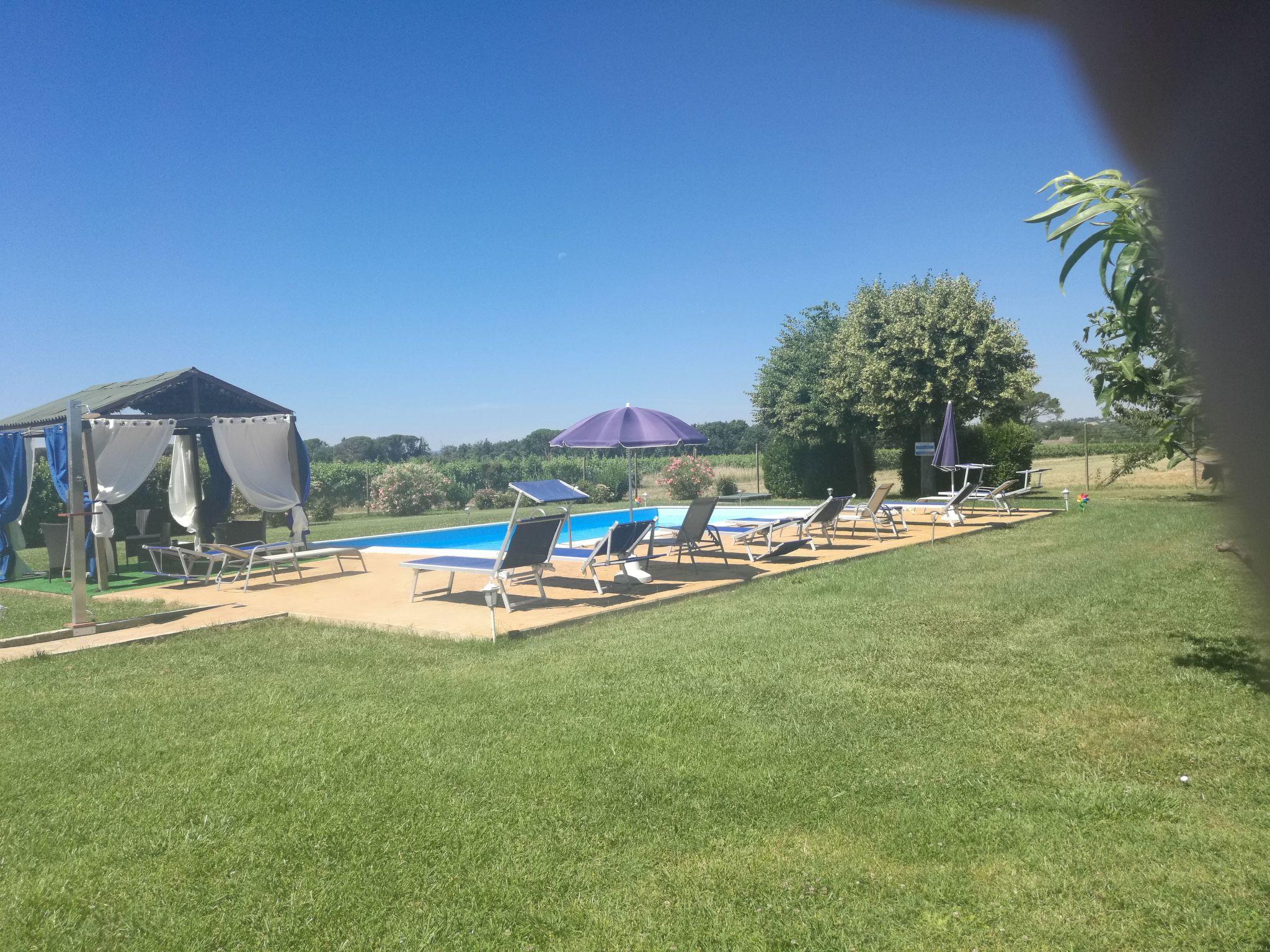 Im Außenbereich verfügt jede Wohnung über einen eigenen Platz unter einer großen, beleuchteten Pergola, die mit einem handverzierten Tisch und Stühlen aus Deruta ausgestattet ist und zum Entspannen und Essen im Freien einlädt. Ein privater gemauerter Grill und eine Außendusche vervollständigen das Angebot, das von einem großen, eingezäunten Garten mit Swimmingpool, Obstbäumen und blühenden Pflanzen umgeben ist, so dass die Gäste die Ruhe und Schönheit der Umgebung in vollen Zügen genießen können.