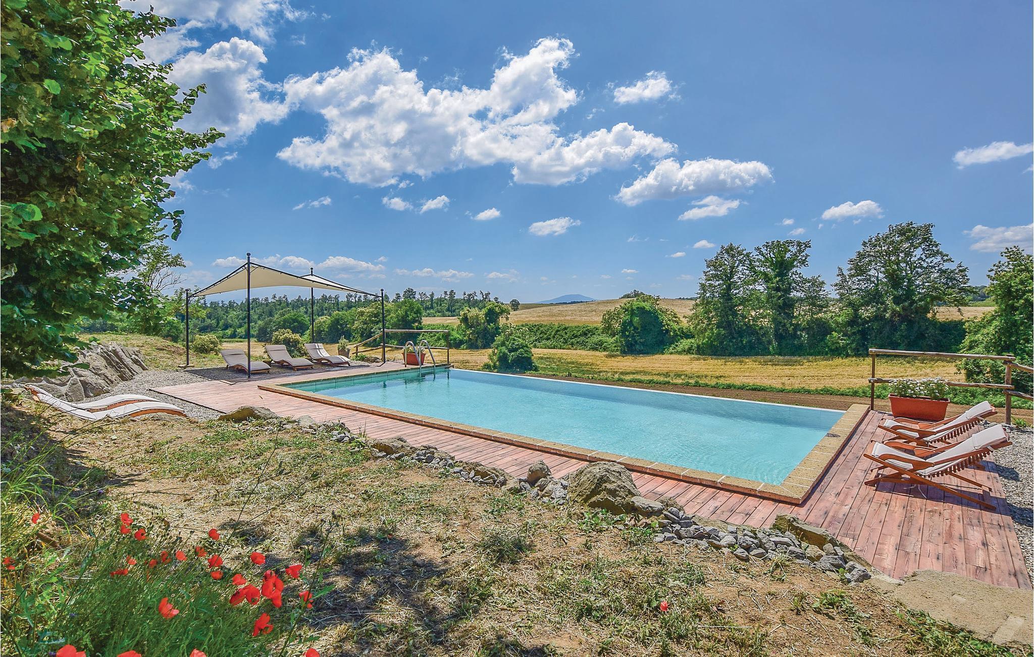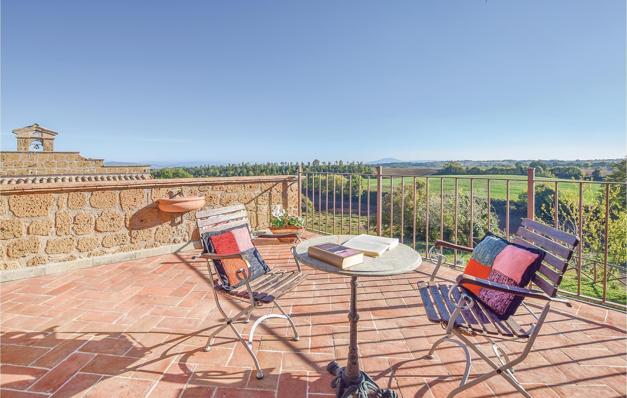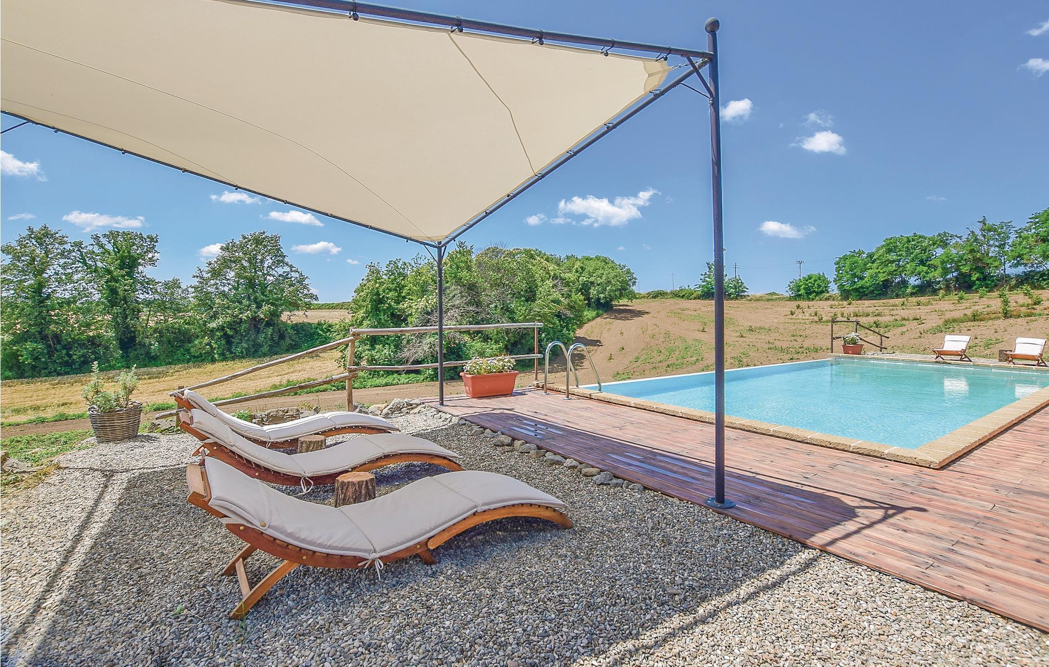 Bei diesem wundervollen Feriendomizil steht unseren Gästen der größere Teil eines schönen Landhauses mit Privatpool (zu Ihrer ausschließlichen Benutzung) zur Verfügung. Das Ferienhaus liegt mitten auf dem Land in den Hügeln zwischen den Regionen Umbrien und Latium und verfügt über einen wundervollen Panoramablick. Das gesamte Anwesen besteht aus zwei separaten Wohneinheiten, die durch einen hübschen Innenhof voneinander getrennt sind. Die sehr diskreten Eigentümer wohnen im kleineren Hausteil auf dem gleichen Anwesen und verfügen über einen separaten Eingang von außen. Den Gästen steht eine einladende überdachte Veranda mit Tisch und Stühlen, große Außenbereiche im Garten und ein Grill zur Verfügung. Der Gebäudeteil, der von unseren Gästen bewohnt wird, ist zweistöckig und bietet geschmackvoll eingerichtete, großzügige Räumlichkeiten. Die Lage des Hauses ist einmalig und Naturliebhaber werden hier voll auf ihre Kosten kommen. In der unmittelbaren Umgebung gibt es eine Vielzahl von interessanten Ausflugszielen: Civita di Bagnoregio, auch die „sterbende Stadt“ genannt, befindet sich in nur 7 km Entfernung, Orvieto mit seinem wundervollen Dom 14 km, der Bolsenasee 14 km, Tuscania, die charakteristische Stadt etruskischen Ursprungs, 45 km, Todi, überall bekannt als die italienische Stadt, die mit die beste Lebensqualität bietet, liegt 48 km entfernt und Tarquinia mit seinen wundervollen vollständisch erhaltenen, etruskischen Gräbern, seinen ausgestatteten Stränden und dem Meer 70 km. Wer Rom (132 km) besichtigen möchte, erreicht die Hauptstadt mit dem PKW über die Autobahnzufahrt der E35/A1 in Orvieto (17 km entfernt). Alternativ können Sie von Orvieto Scalo aus den Zug direkt in das Stadtzentrum von Rom nehmen.