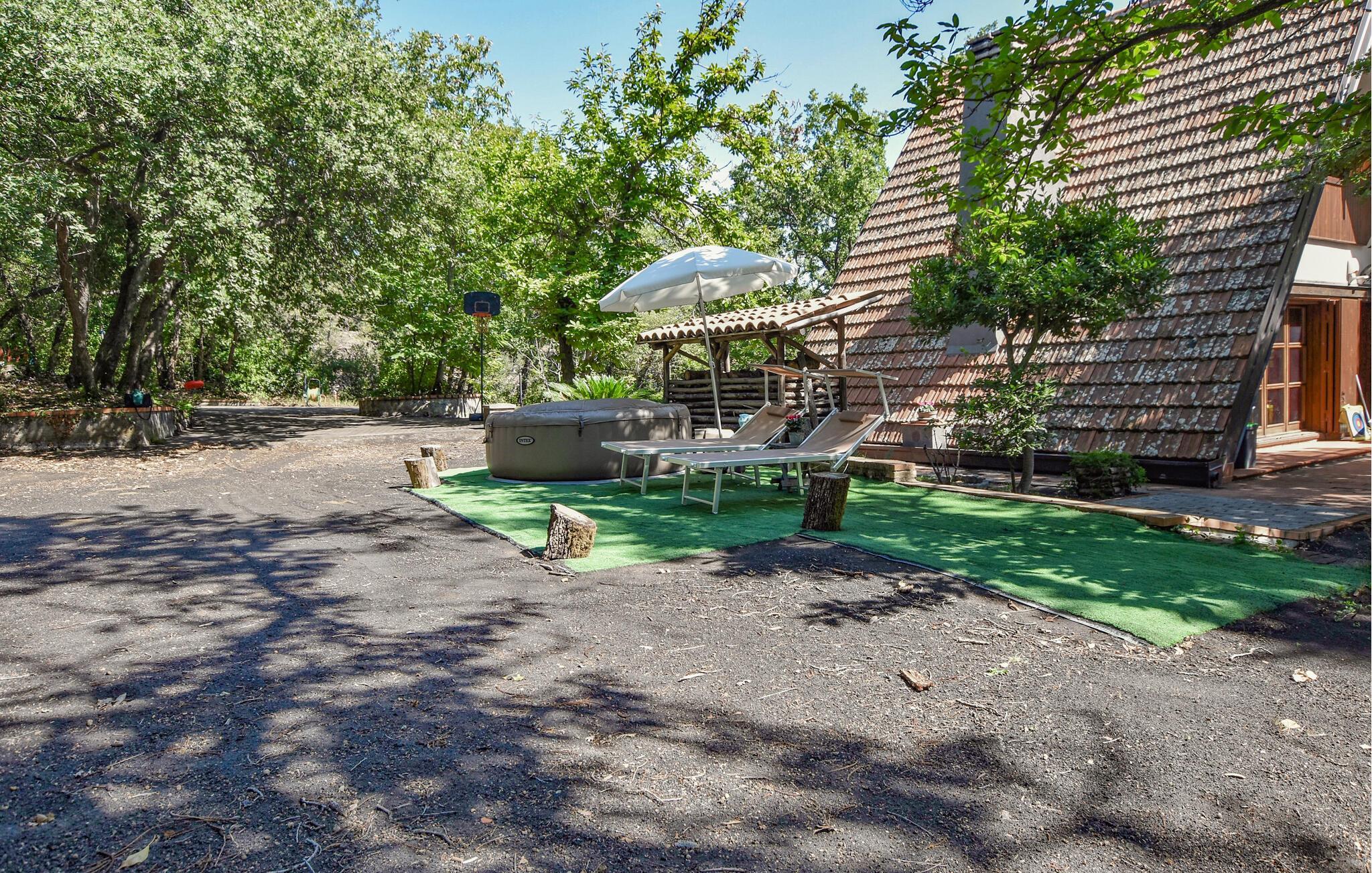 Willkommen in diesem charmanten Ferienhaus mit rustikalem Zeltdach und einem behaglichen Ambiente, das Ihnen und Ihrer Familie sofort ein Gefühl von zuhause schenkt. Die freundliche Holzverkleidung, der Kamin im Wohnzimmer und die farbenfrohe Gestaltung der zwei Etagen schaffen eine einladende Atmosphäre. Auf der großen Terrasse lässt es sich herrlich entspannen: Genießen Sie den Schatten des Sonnenschirms und beobachten Sie Ihre Kinder, die fröhlich im Garten spielen. Am Abend versammeln Sie sich alle zum Grillen oder erfrischen sich im Whirlpool – das perfekte Ende eines Urlaubstages.