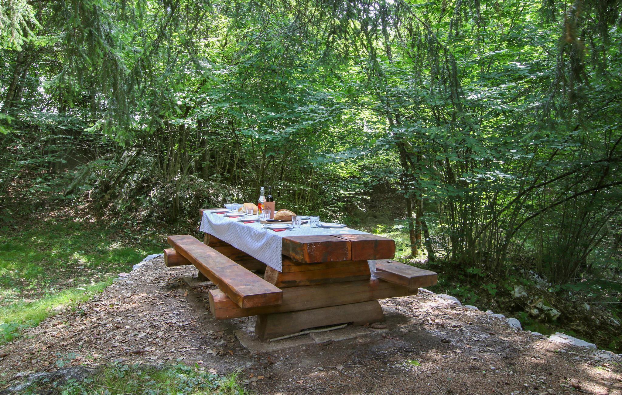 Starten Sie mit einem ausgiebigen Frühstück auf der Terrasse in den Tag oder nutzen Sie den lauschigen Essplatz im Schatten der Bäume. Atmen Sie die wohltuende Waldluft ein und lassen Sie den Blick über das wunderschöne Bergpanorama gleiten. Nutzen Sie die große Grillecke für stimmungsvolle Mahlzeiten unter freiem Himmel.