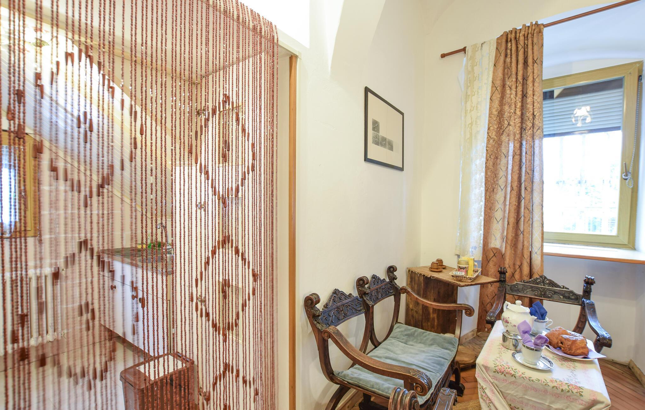 Dieses liebevoll eingerichtete Studio bietet Ihnen ein charmantes Zuhause auf Zeit, während Sie in vertrauter Zweisamkeit die reizvolle Region rund um Trento erkunden. Genießen Sie das helle und freundliche Ambiente, während Sie in aller Ruhe Ihre Unternehmungen planen, und ruhen Sie sich nach einem erlebnisreichen Tag mit einem guten Buch auf den bequemen Sesseln aus.