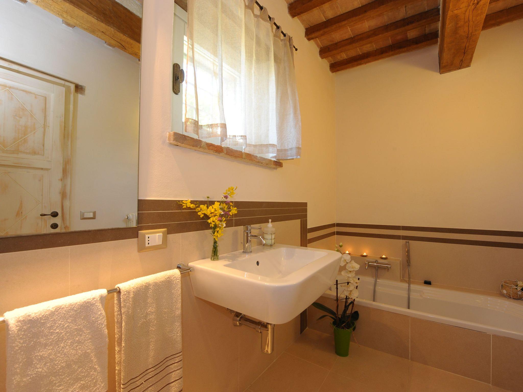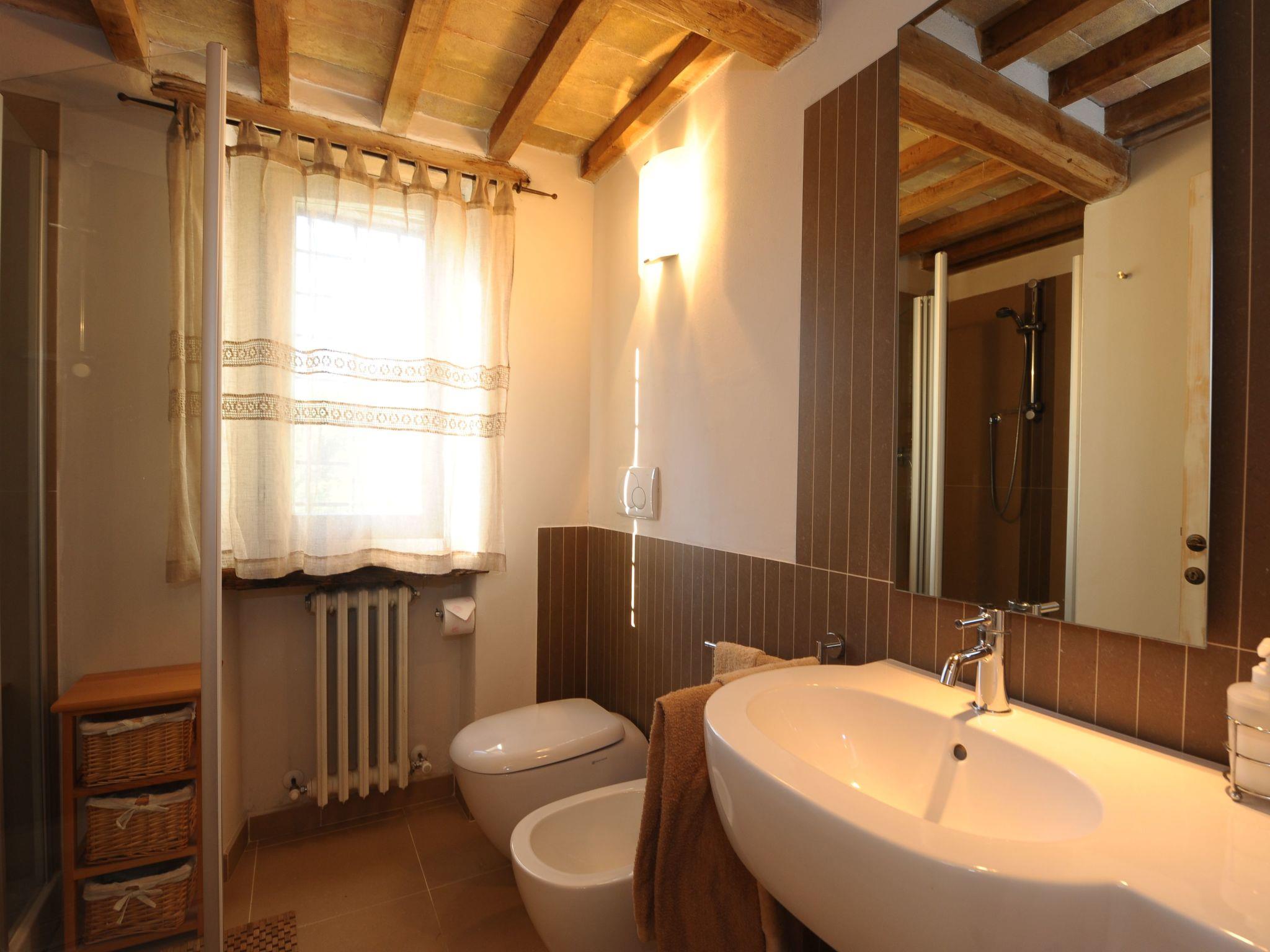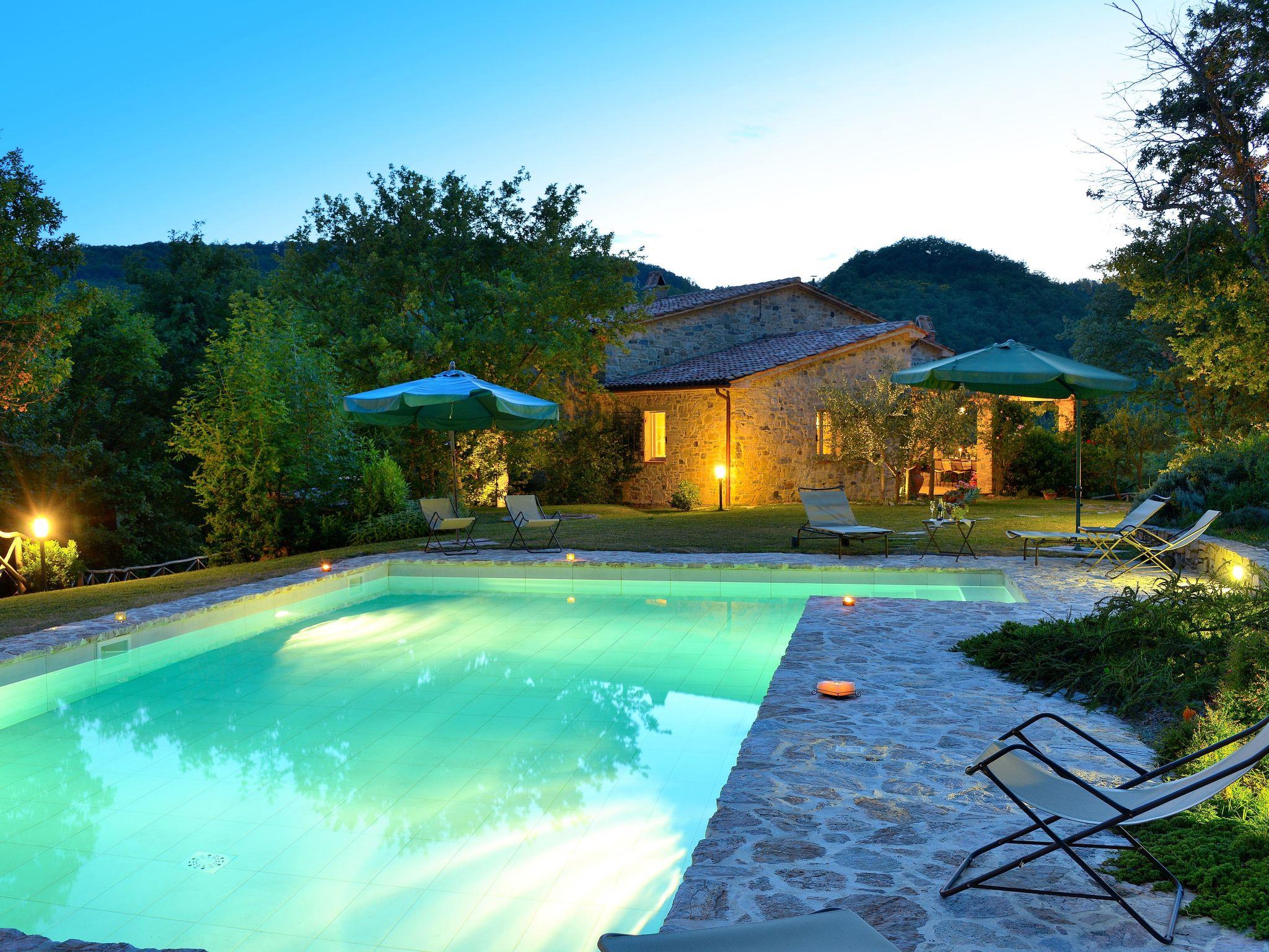 Diese Villa ist eine reizvolle und elegante Eigenschaft in den Hügeln von'Umbria, nei pressi di Umbertide, in provincia di Perugia, non distante dalla Toscana.\r\n\r\nIl casale, di complessivi 250 m2, si sviluppa su due piani principali, il piano nobile soppalcato e il piano inferiore, che contano complessivamente 4 camere da letto matrimoniali per ospitare comodamente fino ad 8 adulti e un bambino. I bagni sono quattro, di cui tre attrezzati con doccia e uno con vasca da bagno.