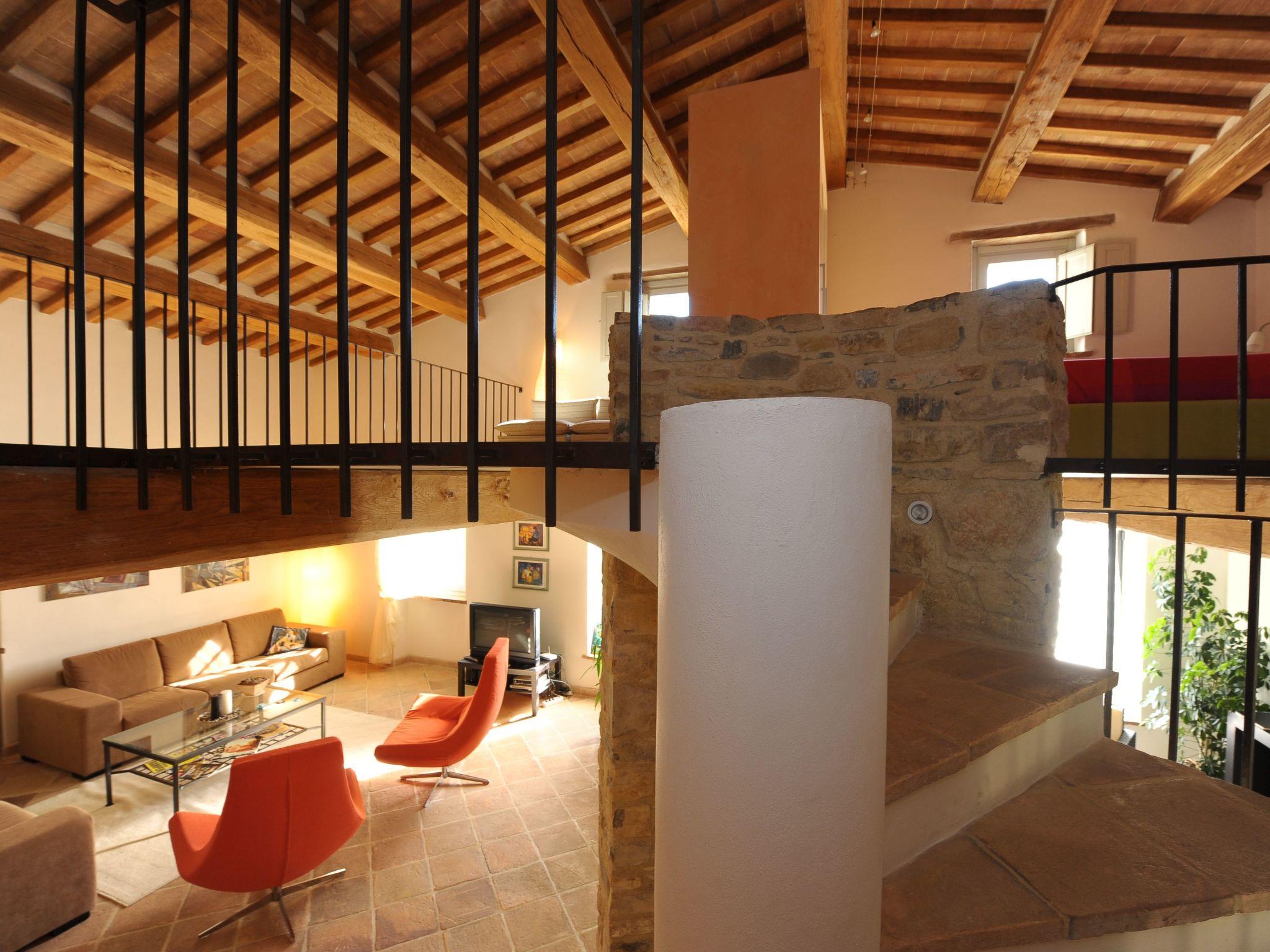 Il piano nobile è costituito da soggiorno, cucina e una prima camera matrimoniale con bagno. L'großen Wohnzimmer hat einen Kamin, Sofas und Sesseln; die Küche ist modern und voll funktionsfähig, mit Blick auf den Garten und Pool. Vom Essbereich mit einem Tisch für zehn Personen gibt es einen direkten Zugang zu der Pergola, auch'esso comodamente attrezzato per pranzi estivi all'offen. Über dem Wohnzimmer befindet sich ein großes Zwischengeschoss, bestehend aus dem zweiten Schlafzimmer mit Bad, einem versteckten Kleiderschrank, um es privater zu machen, und dem Entspannungsbereich mit Blick auf das Wohnzimmer. Wie auf den Fotos zu sehen ist, ist das Schlafzimmer auf der Mezzanine offen zum Wohnzimmer unten, aber dank der Beschaffenheit der Mezzanine selbst und der'armadio a muro, è impossibile vedere ciò che sta accadendo nella camera da letto sul soppalco. Una comoda scala a chiocciola in muratura collega il piano nobile sia con il soppalco sia con il piano sottostante. Quest'letzten ist eine Waschküche, Weinkeller, Abstellraum, die anderen zwei Doppelzimmer mit jeweiligen Bädern, eines mit Dusche und die'altro con vasca. Dalle stanze da letto si accede ad un secondo pergolato, attrezzato con tavolo e sedie per la colazione in giardino. Tutte le finestre e le porte sono munite di zanzariere. La struttura può ospitare comodamente fino a otto adulti e un bambino ed è provvista di riscaldamento autonomo, aria condizionata (con oneri aggiuntivi), TV satellitare e Wi-Fi gratuito."