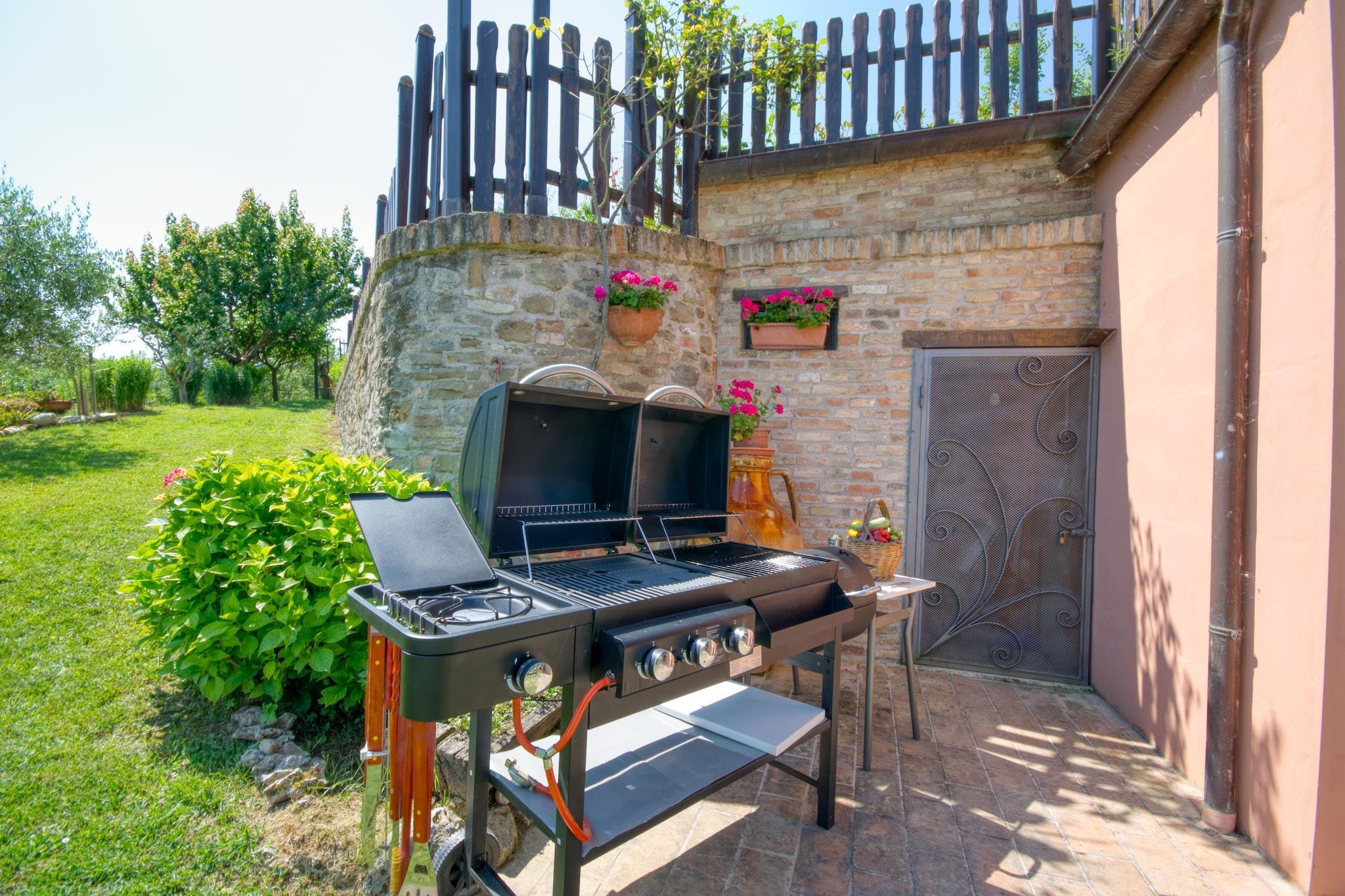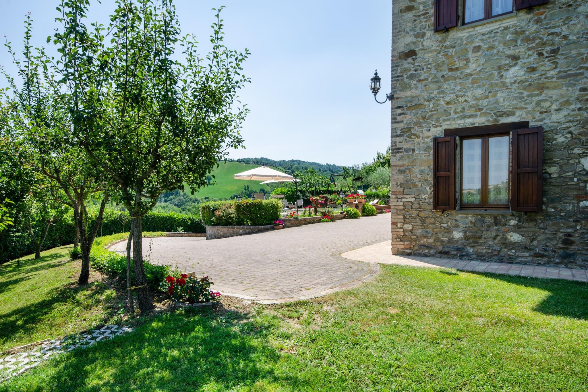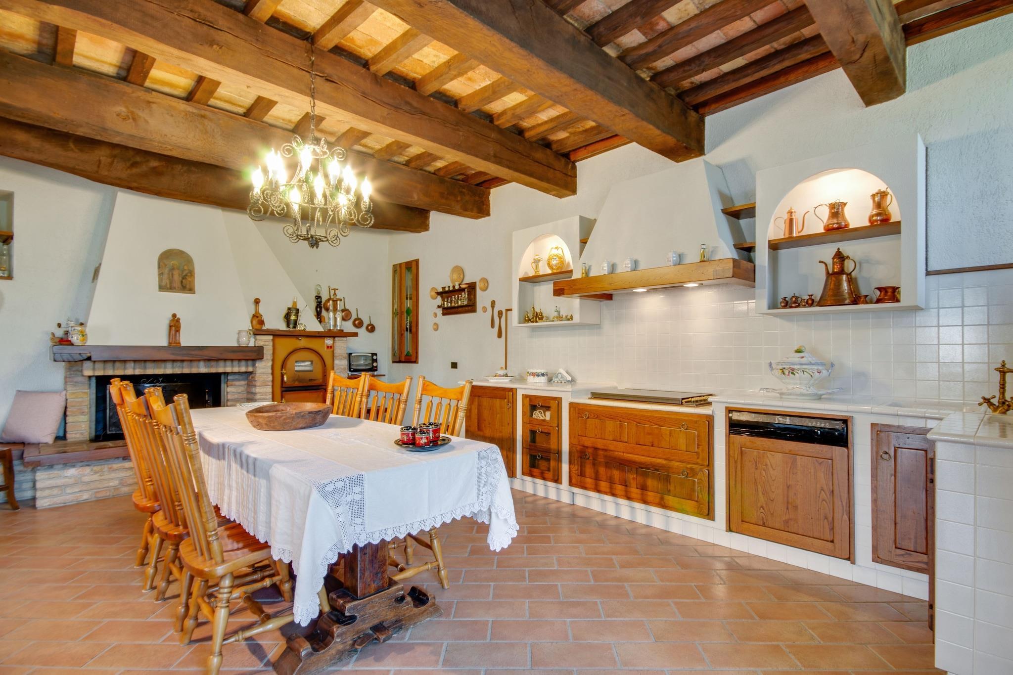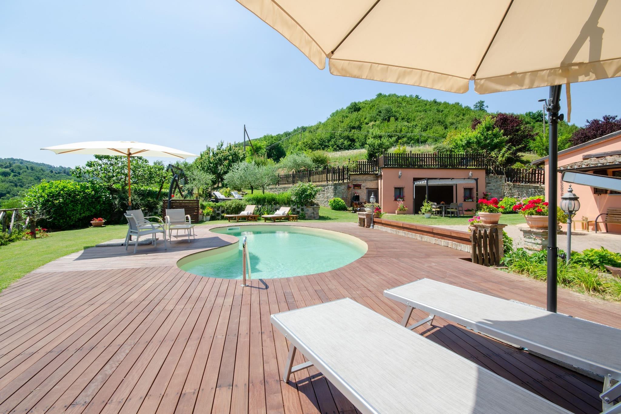 Rustikale Eleganz mit Blick auf den Pool Umgeben von den sanften Hügeln der Marken bietet diese charmante Landvilla die perfekte Mischung aus traditionellem Flair und modernem Komfort. Im Inneren erwarten Sie großzügige Wohnbereiche mit Kaminen, eine voll ausgestattete Küche mit Holzofen für Pizza und mehrere gemütliche Lounges – ideal für größere Familien oder Freundesgruppen. Draußen können Sie einen privaten Pool, ein entspannendes Whirlpoolbad, einen schattigen Pavillon für Mahlzeiten im Freien und Spielgeräte für Kinder genießen – ein ruhiger und geselliger Rückzugsort. Haustiere sind willkommen, und die weitläufige Anlage sowie die nahegelegenen Wanderwege bieten auch vierbeinigen Gästen viel Freude. Entdecken Sie das reiche Erbe von Urbino Nur 9 km entfernt lockt die Renaissancestadt Urbino – UNESCO-Weltkulturerbe – mit kulturellen Schätzen wie dem Dogenpalast, dem Oratorium San Joseph und dem Geburtshaus Raffaels. Ein Tagesausflug nach Pesaro (45 km) belohnt Sie mit goldenen Stränden an der Adria, ideal für einen entspannten Urlaub am Meer. Naturliebhaber können auf den nahegelegenen Wander- und Radwegen unterwegs sein, während Geschichtsinteressierte vom mittelalterlichen Charme umliegender Dörfer wie Urbania und Fermignano begeistert sein werden.