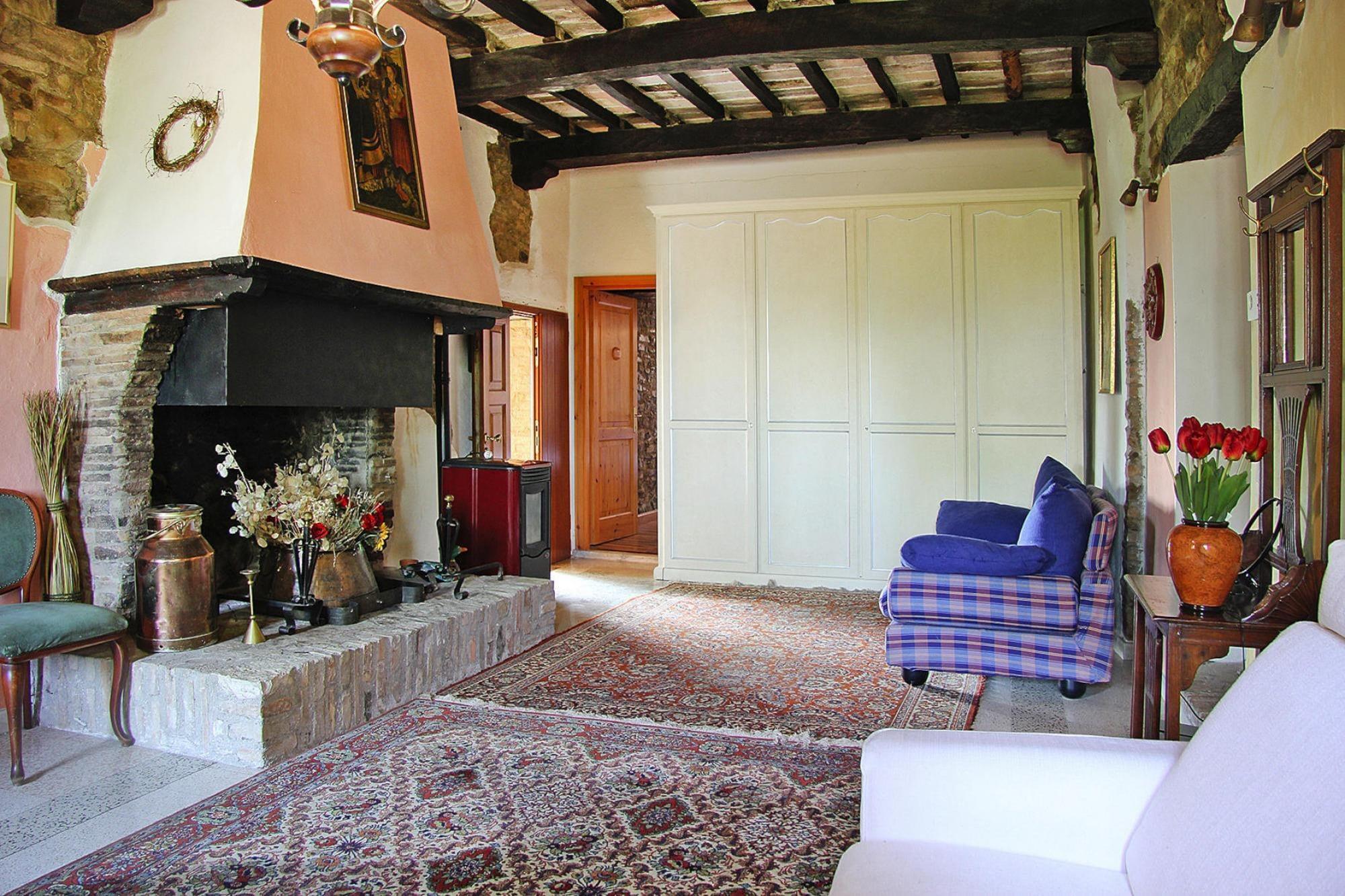 Urlaub ohne Stress und Verkehr in einem Borgo zur alleinigen Nutzung, einem mittelalterlichen kleinen Dorfweiler. Liebevoll unter Beibehaltung der typischen Bauelemente renoviert, wurde es zu einem wunderschönen Refugium mit Swimmingpool und herrlichem Rundum-Blick auf die Hügellandschaft. Neu ist das Spielzimmer im EG mit u.a. einem Billardtisch und einem Tischfußball. Genießen Sie die Aussicht bis hin zur Toskana und bei klarem Wetter sogar bis zum Meer. In dem gemütlich gestalteten Innenhof mit Pizzaofen und auf dem weitläufigen Gartengrundstück können Sie sich ausbreiten und wunderbar entspannen. Sie werden von keinem Nachbarn außer von vielleicht einmal von Hirschen, Eichhörnchen, Falken. Schafe oder Stachelschweinen gestört und können Ihre Urlaubszeit in engem Kontakt mit der Natur verbringen. Antike Steintreppen führen zum Obergeschoss in ein Esszimmer mit großem offenen Kamin und einer langen Tafel für bis zu 20 Personen. Hier können Sie alle zusammen italienische Köstlichkeiten und einen guten Rotwein genießen. HighLights : WLAN Aktivitäten in der Nähe : In der Umgebung können Sie wandern und Radtouren unternehmen und dabei Städte wie Urbania (12 km) und eindrucksvolle Kulturdenkmäler besichtigen. Mit dem Auto sind Sie schnell im Flusstal des Metauro, romantisch und sehenswert! Ausflüge nach Urbino oder ans Meer nach Fano und Pesaro sollten ebenfalls auf Ihrer Urlaubsliste stehen Mobilität : Nicht geeignet für Personen mit eingeschränkter Mobilität