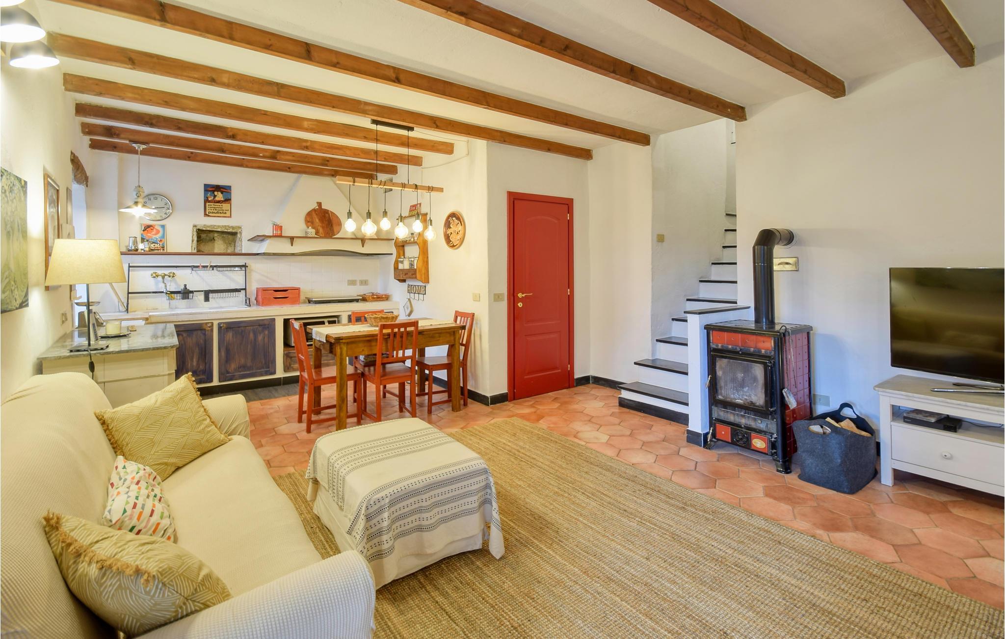 Ein paar Stufen führen zu diesem Anwesen, das Sie in Uscio erwartet und der ideale Ort für einen schönen Aufenthalt mit der ganzen Familie ist. Lassen Sie sich in den hellen Räumen häuslich nieder, die wohnliche Einrichtung im Landhausstil, geflieste Böden und dekorative Holzdecken sorgen für ein behagliches Ambiente. Machen Sie es sich abends auf dem gemütlichen Sofa im Wohnbereich bequem und schmieden Sie Pläne für die nächsten Tage.
