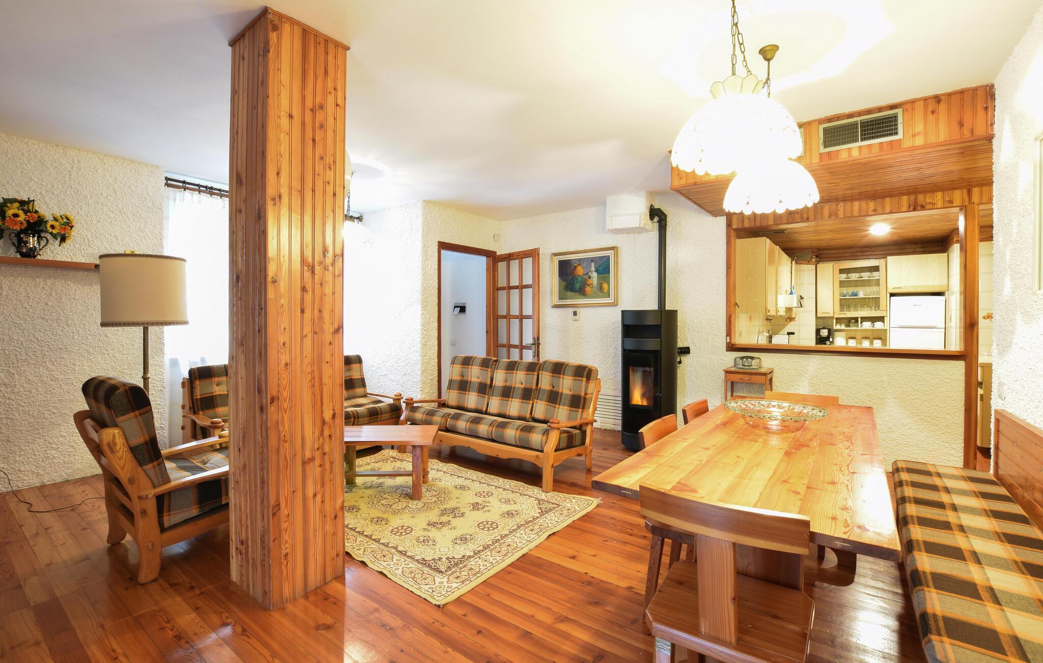 Ihre Ferienwohnung liegt idyllisch eingebettet in die Natur und bietet eine ideale Kombination aus rustikalem Charme und modernem Komfort. Machen Sie es sich im geräumigen Wohnbereich mit den schönen Holzdetails gemütlich und entspannen Sie hier nach einem Tag voller Erkundungen in der Region. Nutzen Sie die gut ausgestattete Küche, um Ihre Mahlzeiten zuzubereiten, und genießen Sie diese am gemütlichen Holzesstisch, der anschließen auch zum Verweilen einlädt.