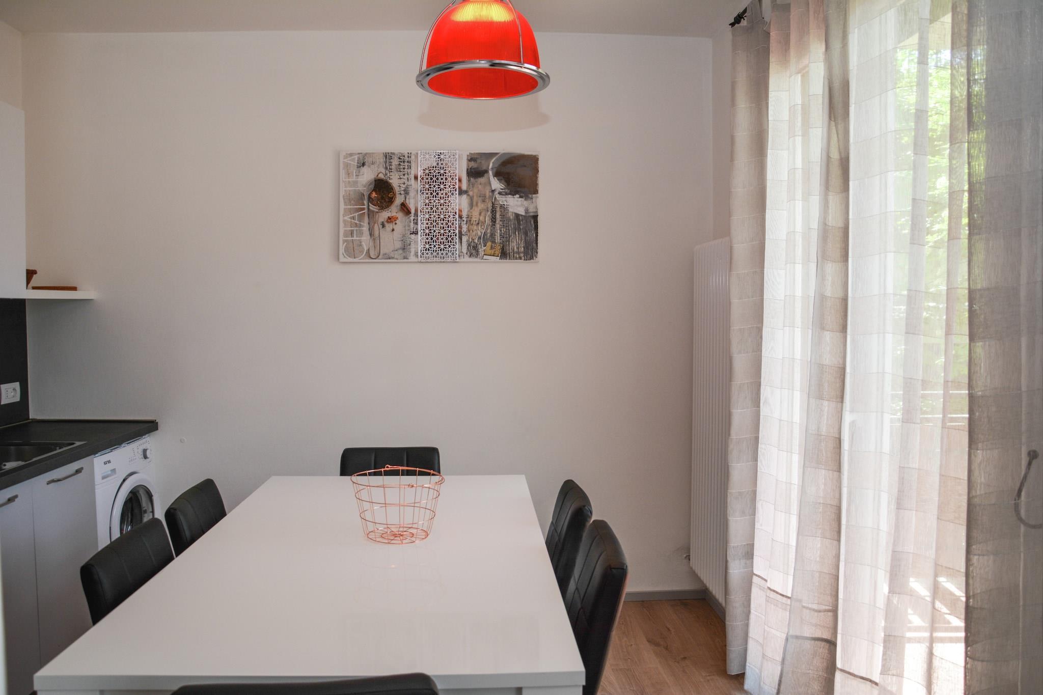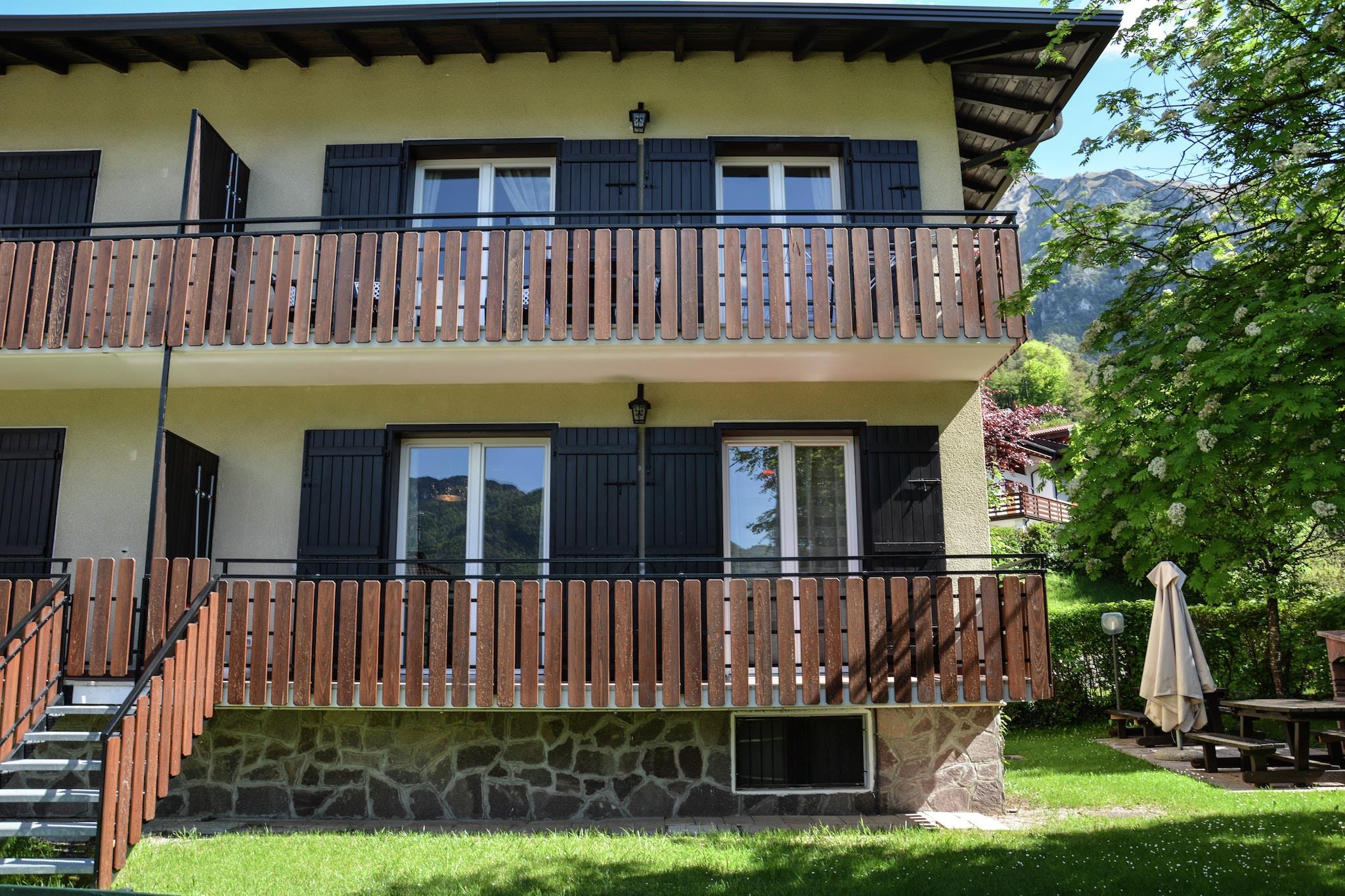 Dieses haustierfreundliche Apartment in der Via Dromaé 44 im ruhigen Dorf Molina di Ledro bietet bis zu sechs Gästen einen komfortablen Rückzugsort. Das helle Wohnzimmer verfügt über ein Schlafsofa und Sat-TV. Die offene Küche ist mit einem Geschirrspüler ausgestattet, sodass Sie Ihre Mahlzeiten ganz einfach zubereiten können. Zwei Schlafzimmer – eines mit Einzelbett und Etagenbett, das andere mit Doppel- oder Zweibettzimmer – bieten eine gemütliche Unterkunft. Ein modernes Badezimmer mit Dusche, Bidet, WC und Waschbecken sowie kostenloses WLAN und eine Waschmaschine sorgen für einen entspannten Aufenthalt. Gäste können einen privaten Balkon oder eine Terrasse genießen und im Gemeinschaftsgarten mit Sitzgelegenheiten und Grill entspannen. Ein Fahrradabstellplatz und ein 10 × 5 m großer Gemeinschaftspool (geöffnet von Mai bis September) runden das Angebot ab. Ein privater Parkplatz sorgt für zusätzlichen Komfort. Ob Sonnenbaden, Radfahren oder Grillen mit Freunden – die Unterkunft bietet Komfort und Freizeit in alpiner Umgebung. Das Apartment liegt nur 650 Meter vom Ledrosee entfernt und bietet Möglichkeiten zum Schwimmen, Kajakfahren und für malerische Wanderungen. Erkunden Sie kulturelle Sehenswürdigkeiten wie das Pfahlhausmuseum am Ledrosee oder begeben Sie sich auf Bergpfade nach Tremalzo und Dromaé. Restaurants und Geschäfte im Umkreis von 600 Metern servieren Trentiner Spezialitäten und machen dieses Haus zum idealen Ausgangspunkt für Natur und kulinarische Erlebnisse.
