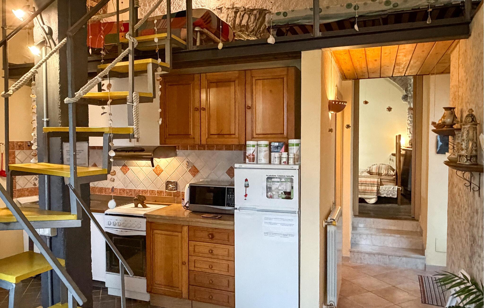 Genießen Sie Ihren Urlaub in dieser liebevoll restaurierten Ferienwohnung, die Geschichte und Gemütlichkeit vereint. Lassen Sie sich von der warmen Atmosphäre des Innenraums empfangen. Entspannen Sie im behaglichen Wohnbereich mit seinen weichen Sofas, dekorativen Kissen und sanftem Licht. Die Einrichtung ist individuell gestaltet und verbindet rustikale Elemente wie Steinmauern und Holzbalken mit wohnlicher Behaglichkeit. Kochen Sie in der Küche mit traditionellen Fliesenmustern und Holzschränken und genießen Sie Ihre Mahlzeiten am liebevoll gedeckten Esstisch.