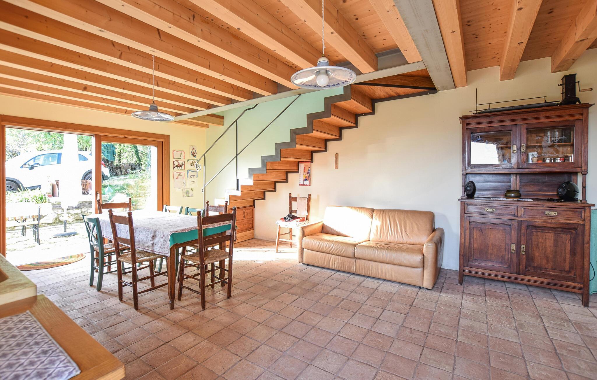 Dieses stilvolle Ferienhaus in Miane verbindet traditionellen Baustil mit modernem Komfort. Große Panoramafenster holen die atemberaubende Aussicht auf die umliegenden Weinberge und Berge direkt ins Haus. Der offene Grundriss auf zwei Etagen, der warme Holzton und der offene Kaminofen schaffen eine einladende und gemütliche Atmosphäre. Auf der Terrasse vor dem Haus können Sie die Ruhe genießen, am Abend grillen und dazu ein Glas lokalen Prosecco mit dem herrlichen Ausblick kombinieren – ein perfekter Ort, um den Alltag hinter sich zu lassen.