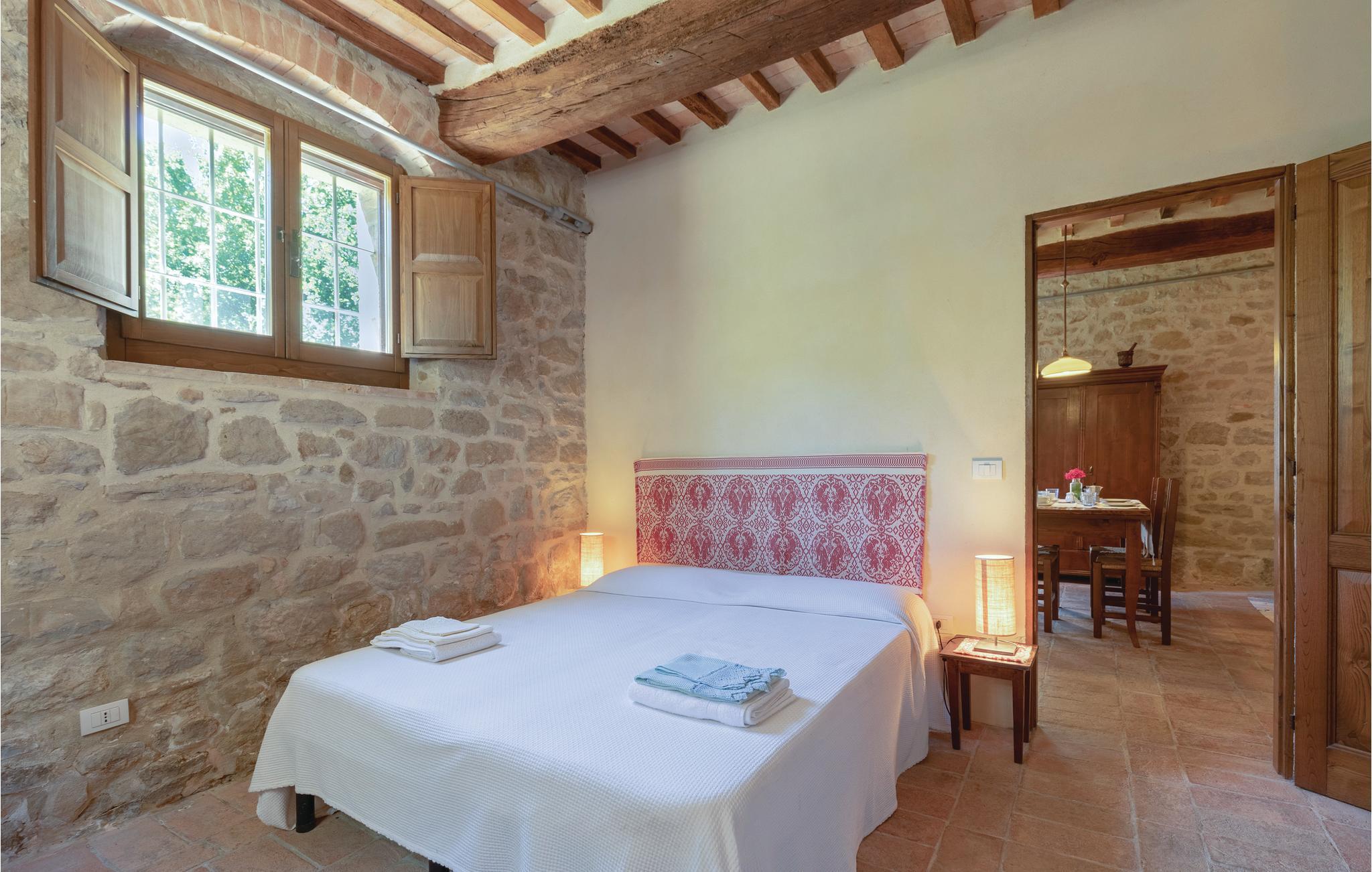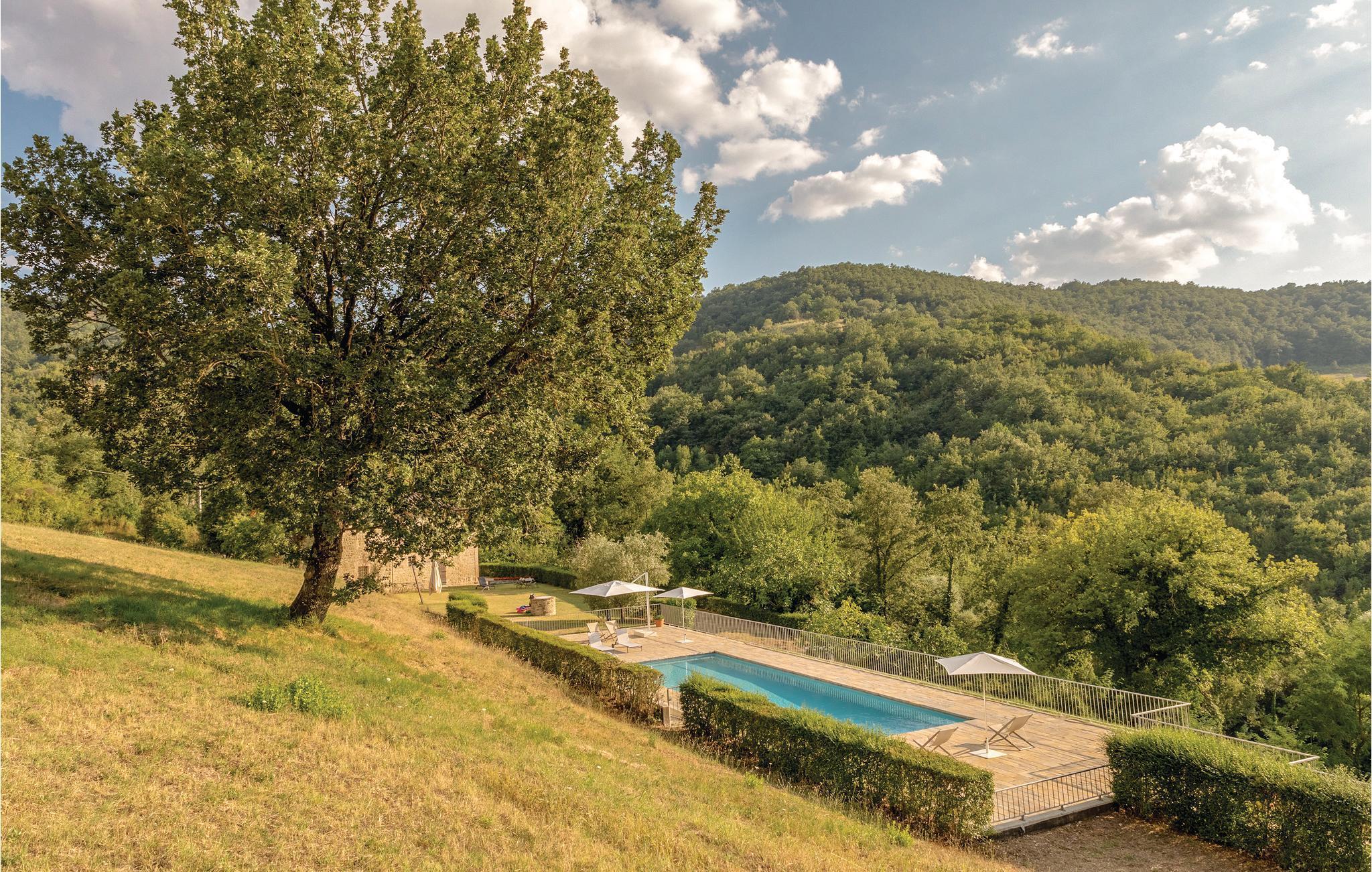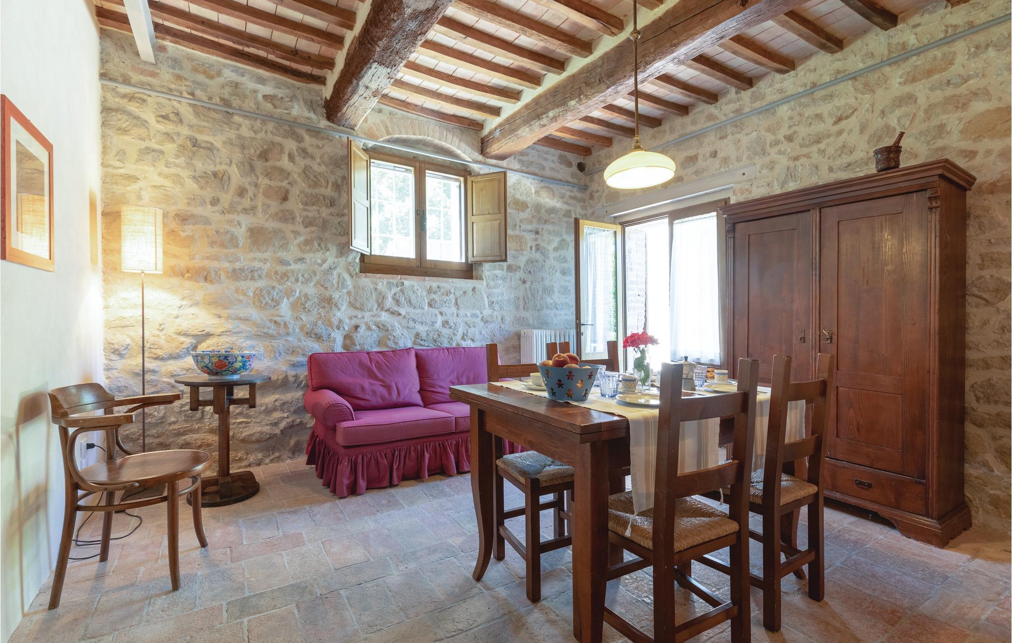 Historisches Landhaus mit 2 Wohnungen und einer weiteren, kleineren Wohnung im angrenzenden Türmchen. Sehr schöne, ruhige, erhöhte Lage über einem großen Tal, umgeben von einem Eichenhain. Jede Wohnung verfügt über einen privaten Aussenbereich. Der Swimmingpool mit einer großen Sonnenterrasse, mit fantastischer Aussicht, wird gemeinschaftlich genutzt, u.a. mit den Gästen einer am Eingang des Grundstücks gelegenen Scheune mit 2 Schlafplätzen. Gute Möglichkeiten für schöne Spaziergänge. Einrichtung mittleren Komforts. 3 km Pianello (Lebensmittelgeschäfte), 6 km Valfabbrica (Geschäfte aller Art), 19 km Assisi, 20 km Perugia, 30 km Gubbio, 45 km Trasimeno See. S. IUP751-752-753-588.