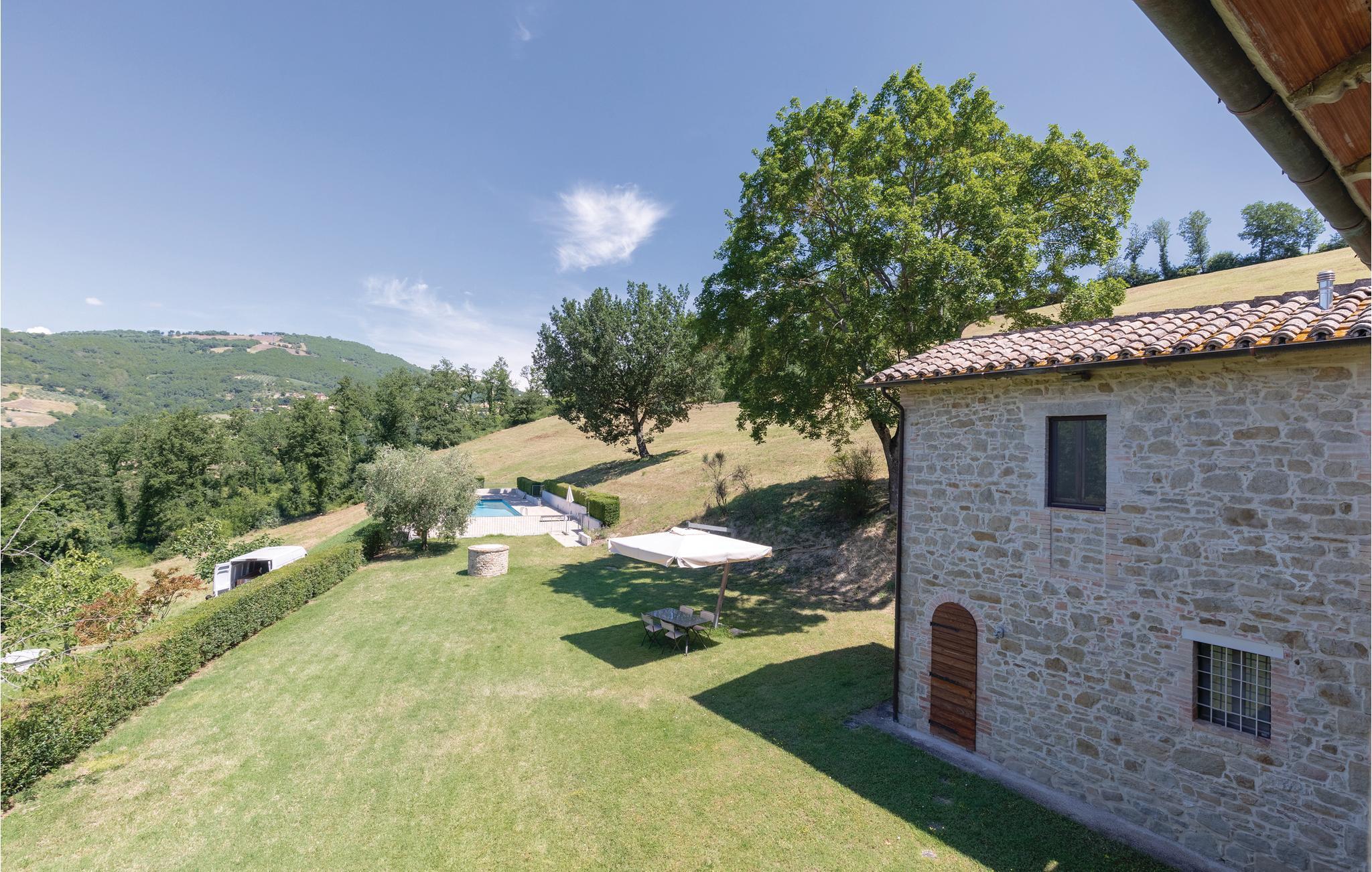 Historisches Landhaus mit 2 Wohnungen und einer weiteren, kleineren Wohnung im angrenzenden Türmchen. Sehr schöne, erhöhte Lage über einem großen Tal, umgeben von einem Eichenhain. Jede Wohnung verfügt über einen privaten Aussenbereich. Der Swimmingpool mit einer großen Sonnenterrasse, mit fantastischer Aussicht, wird gemeinschaftlich genutzt, u.a. mit den Gästen einer am Eingang des Grundstücks gelegenen Scheune mit 2 Schlafplätzen. Gute Möglichkeiten für schöne Spaziergänge. Einrichtung mittleren Komforts. 3 km Pianello (Lebensmittelgeschäfte), 6 km Valfabbrica (Geschäfte aller Art), 19 km Assisi, 20 km Perugia, 30 km Gubbio, 45 km Trasimeno See. S. IUP751-752-753-588.