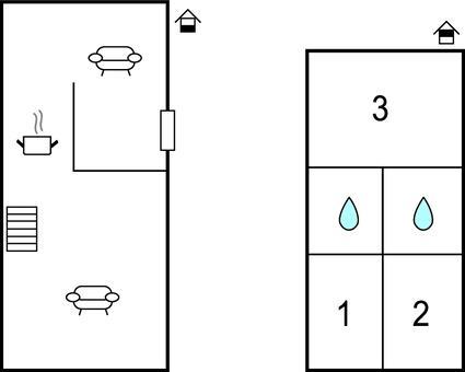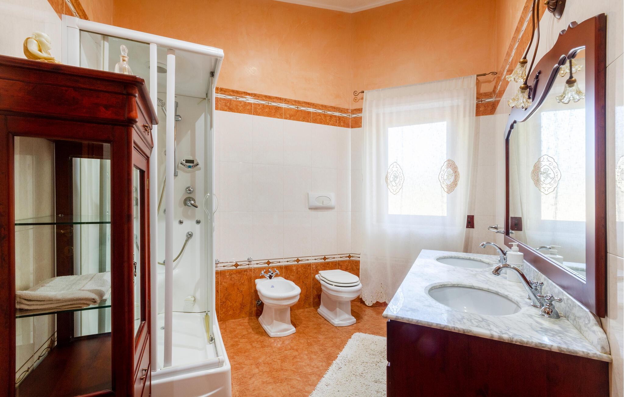 Badezimmer (nr. 2) - WC. Warmes und kaltes Wasser. Dusche