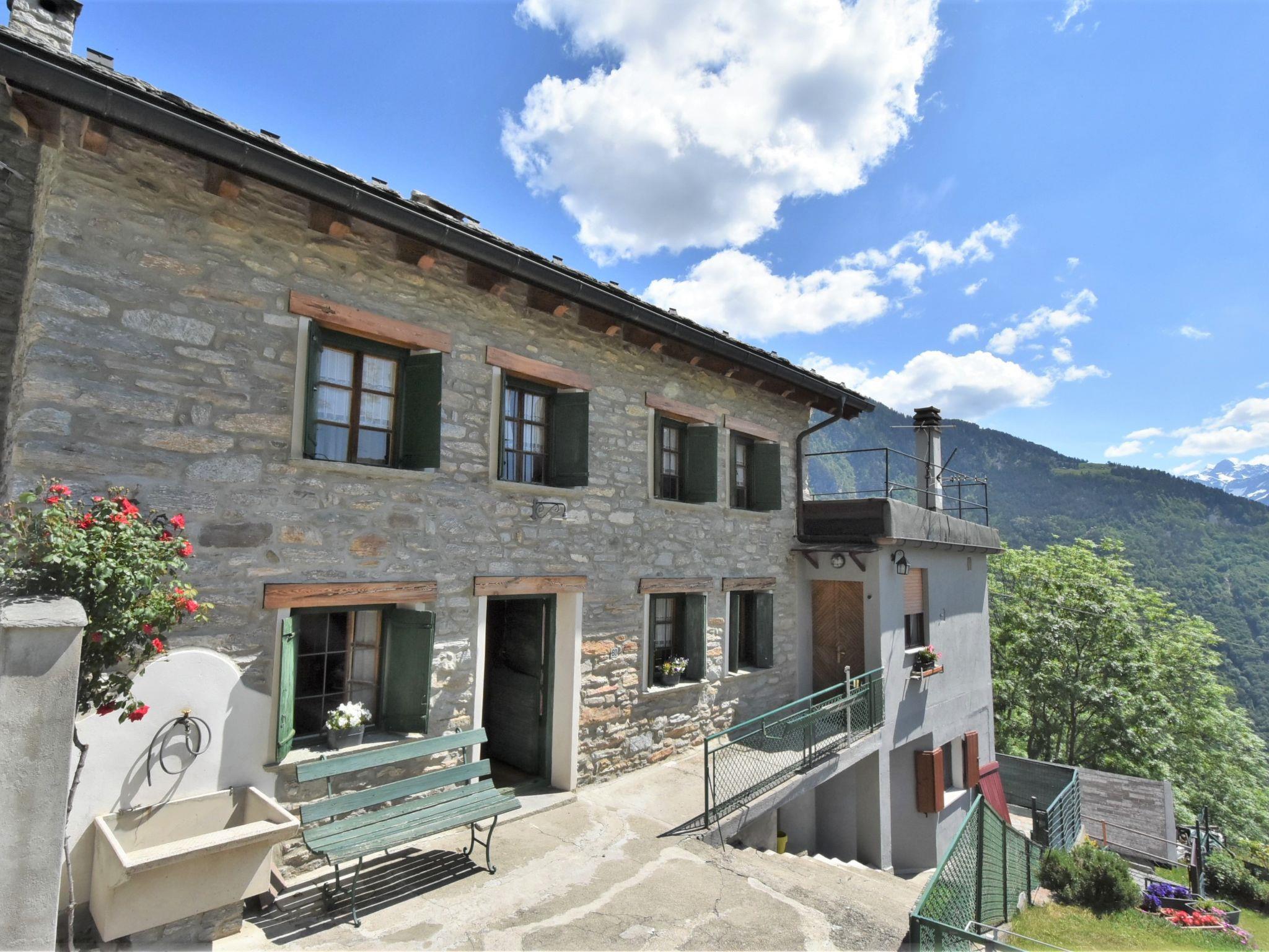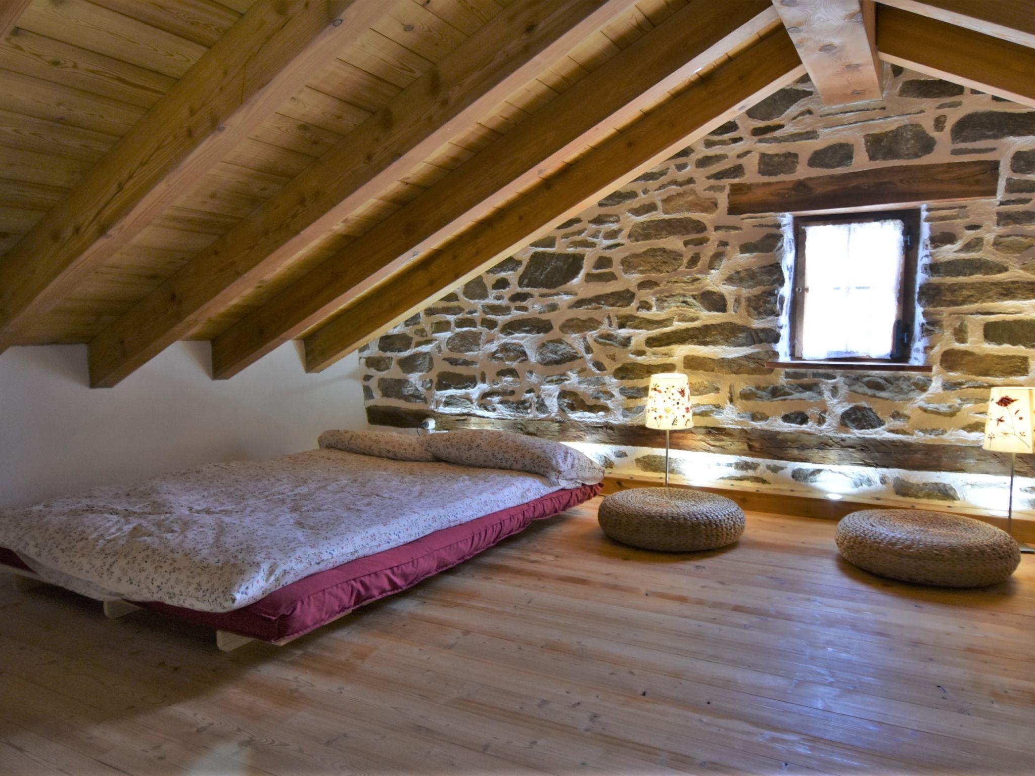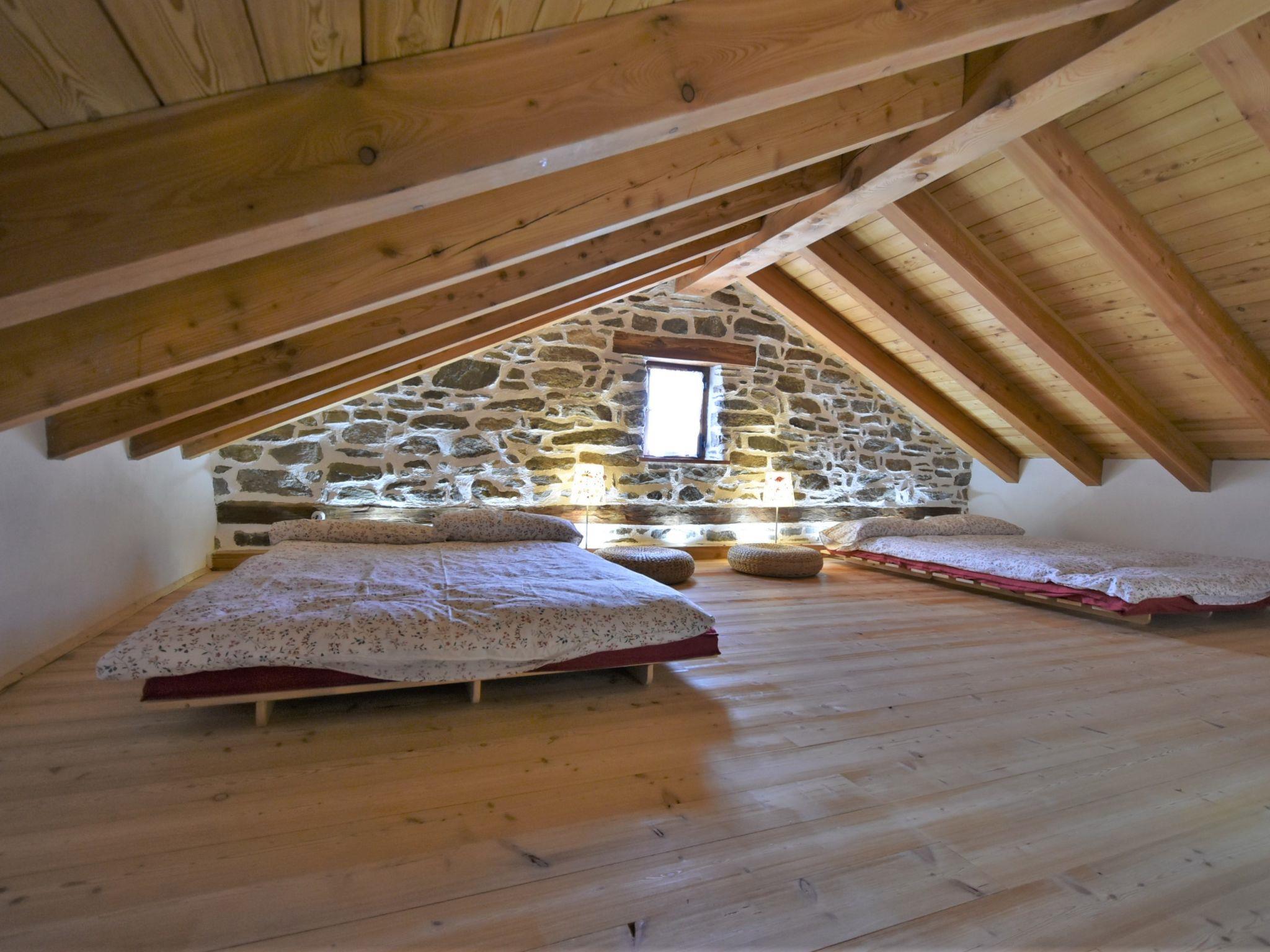 5-Zimmer-Haus 100 m2 auf 3 Stockwerken. Teilweise abgeschrägt, renoviert im Jahre 2021, rustikal und mit viel Holz eingerichtet: Wohn-/Esszimmer, Deckenhöhe 190 - 205 cm mit Esstisch und TV (Flachbildschirm), Radio und Holzofen. Offene Küche im Eingang (4 Flammen, Toaster, Wasserkocher, Mikrowelle, elektrische Kaffeemaschine) mit Deckenhöhe 190 - 205 cm, Esstisch und Holzofen. Ausgang zum Garten. Obergeschoss: 1 Zimmer, Deckenhöhe 185 - 200 cm mit 1 franz. Bett (140 cm). 1 Zimmer, Deckenhöhe 185 - 200 cm mit 1 Bett. 1 Doppelzimmer, Deckenhöhe 185 - 200 cm. Dusche/Bidet/WC. 2. Obergeschoss: 1 abgeschrägtes grosses Zimmer, Deckenhöhe 60 - 200 cm mit 2 Betten. Holzdielenboden. Liegestühle (2). Schöne Sicht auf die Berge und das Tal. Zur Verfügung: Waschmaschine, Haartrockner, Holz (gratis). Bitte beachten: Nichtraucher-Unterkunft. Eigener Eingang. IT014058C23P3G9K7X
