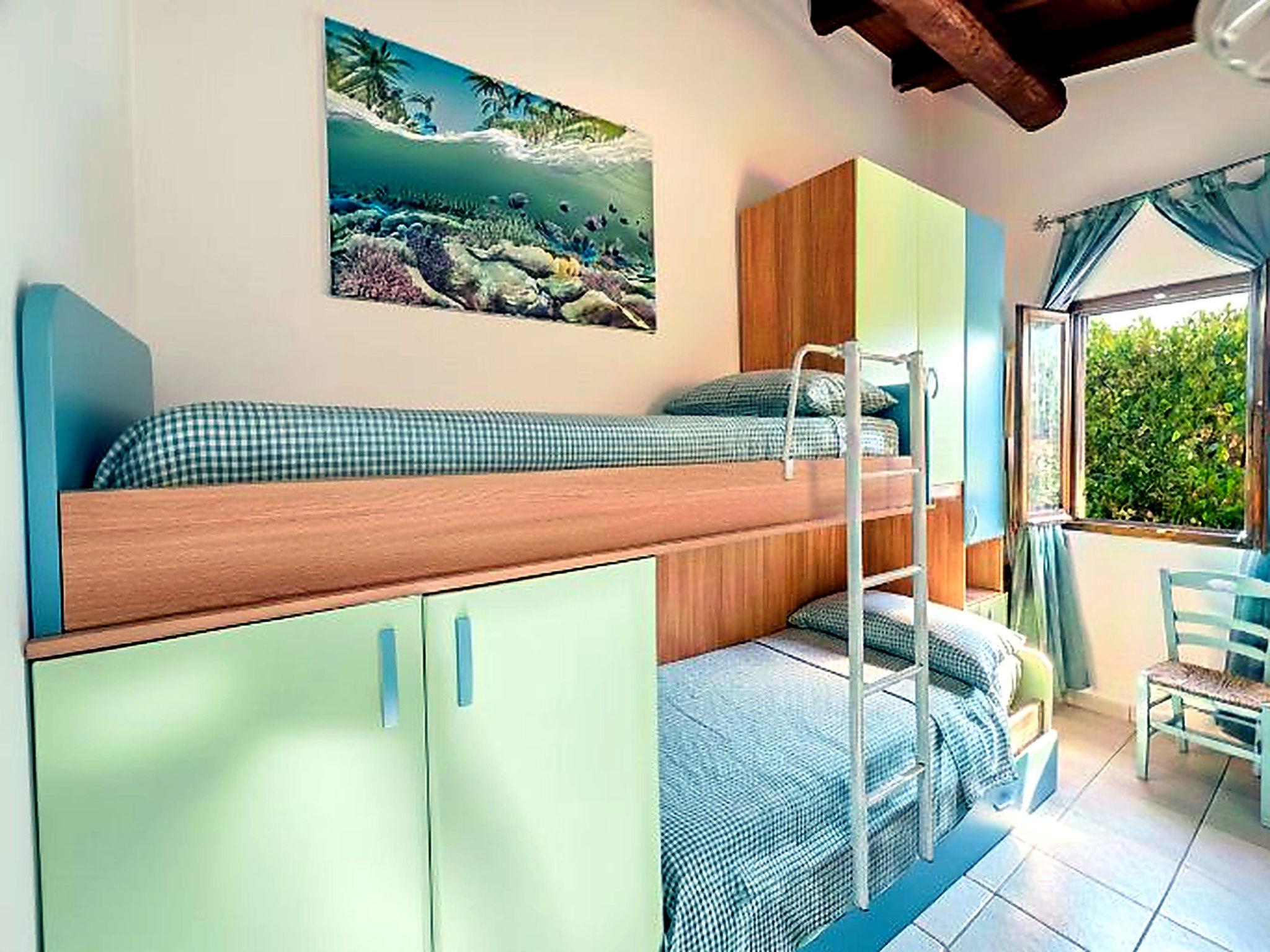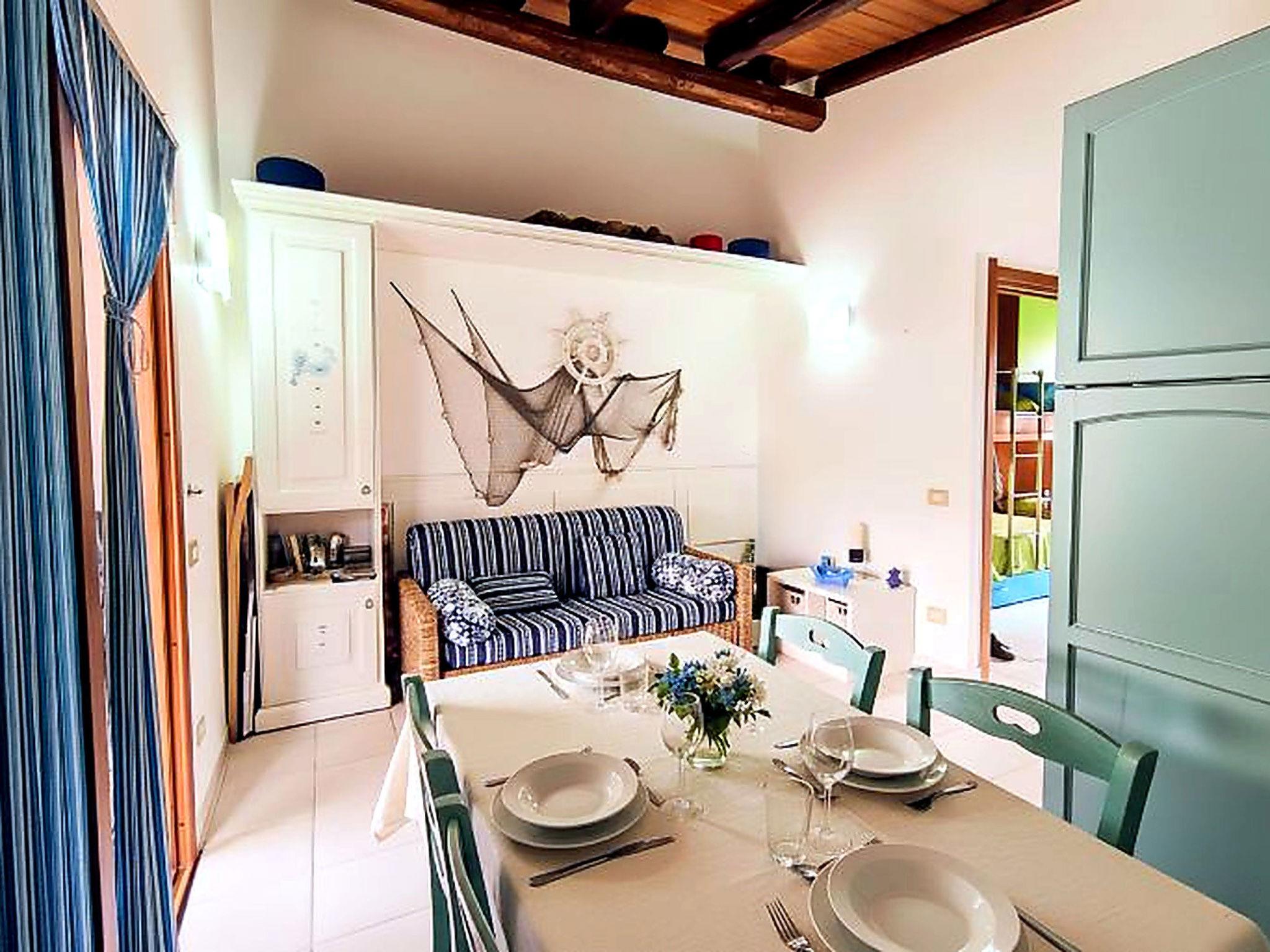 "Azzurra", 3-Zimmer-Reihenhaus 50 m2, im Erdgeschoss. Schön und gemütlich eingerichtet: Wohn-/Esszimmer mit TV (Flachbildschirm), Klimaanlage. Ausgang zum Garten. 1 Zimmer mit 1 Doppelbett und Klimaanlage. Ausgang zum Garten. 1 Zimmer, 1 Etagenbetten. Kochnische (Backofen, 4 Flammen, Toaster, Wasserkocher). Dusche/Bidet/WC. Kleiner Garten. Terrassenmöbel, Gartengrill, Wintergarten. Zur Verfügung: Waschmaschine, Bügeleisen, Haartrockner. Maximal 1 kleines Haustier/Hund erlaubt. IT000000C0000T0000