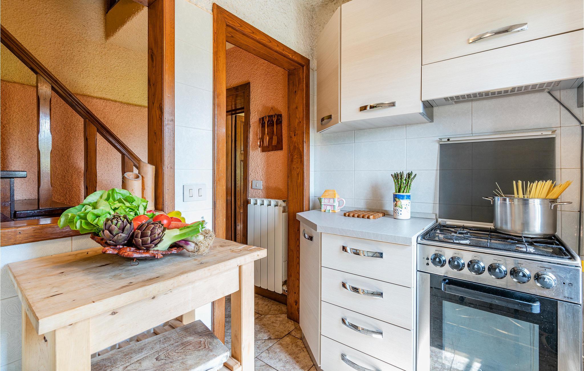 Erleben Sie einen entspannten Aufenthalt in diesem einfachen, aber funktionalen Ferienhaus am Rande des Garfagnana-Gebiets, nahe dem charmanten Ort Vallico Sopra. Die geräumige Unterkunft eignet sich ideal für eine große Familie, die das ländliche Italien entdecken möchten. Im Haus erwartet Sie eine schlichte, aber gemütliche Einrichtung. Die Wohnräume sind mit rustikalen Holzmöbeln ausgestattet, während helle Wände und traditionelle Dekorationen für eine angenehme Atmosphäre sorgen. Im Wohnbereich können Sie am großen Esstisch gemeinsame Mahlzeiten genießen oder es sich auf den Sitzmöbeln bequem machen. Die Küche bietet Ihnen die nötige Grundausstattung zur Selbstverpflegung.