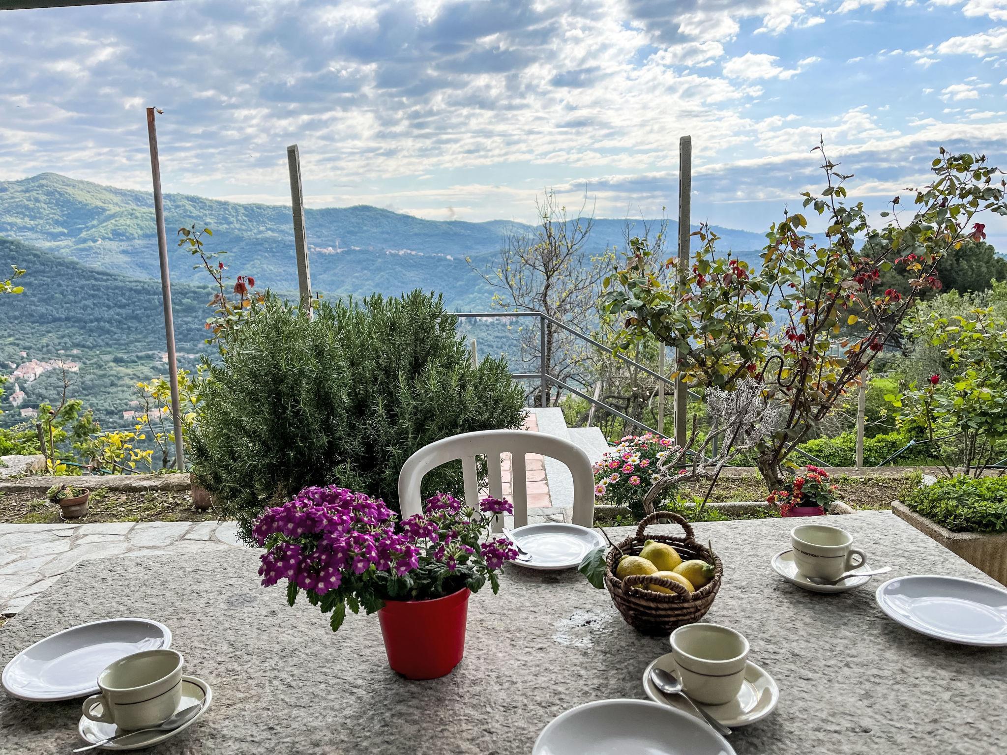 Schöner, gemütlicher, freistehender Agriturismo "San Giuseppe", 400 m.ü.M., auf 2 Stockwerken, umgeben von Bäumen und Wiesen. 7 Wohnungen in der Residenz. Oberhalb von Valloria, 100 m vom Zentrum von Valloria, 14 km vom Zentrum von Imperia, 5 km vom Zentrum von Dolcedo, alleinstehende, sonnige, erhöhte Lage auf einem Hügel, 14 km vom Meer, 4 km vom See, im Grünen. Zur Mitbenutzung: Grundstück 1'000 m2, grosser, gepflegter terrassierter Garten (nicht eingezäunt) mit Blumen und Bäumen, Liegewiese, Schwimmbad (6 x 5 m, saisonale Verfügbarkeit: 01.Apr. - 26.Nov.) mit Innentreppe. Aussendusche, Sprudelbad, Poolhaus mit Kochherd, Tennis, beleuchtet, Tischtennis, Sitzplatz, Terrasse, Gartenmöbel, Grill, Feuerstelle, begrünter Innenhof Poolpflege durch den Besitzer/Gärtner. In der Anlage: Restaurant, Frühstücksraum, Aufenthaltsraum, Wireless LAN, Massage, Sprudelbad (extra). Tischtennis (alles inkl.), Tischfussball, Einkaufsmöglichkeit, Einstellraum für Fahrräder, Sonnenterrasse, Waschmaschine, Fahrradverleih. Zur Verfügung: Fahrräder (4), Kinderfahrräder (1). Brötchenservice, Getränkeservice, Frühstück und Halbpension möglich (extra). Einkaufsservice vor Anreise möglich. Abstellraum vorhanden. Abholservice vom Flughafen (extra). 2.5 km lange sehr holprige, schmale Zufahrt bis zum Haus. 100 m Treppenweg (64 Stufen) bis zum Haus. Parkplatz, öffentliche Parkplätze 100 m. Einkaufsgeschäft 4 km, Lebensmittelgeschäft 4 km, Supermarkt 14 km, Einkaufszentrum 14 km, Restaurant, Bar 200 m, Bäckerei 4 km, Internet-Café, Fahrradverleih, Bushaltestelle 200 m, Bahnstation "Imperia Oneglia" 19 km, Sandstrand "Imperia/Porto Maurizio" 14 km, Badesee "Laghetti di Lecchiore" 2 km. Jacht-Hafen 19 km, Tennis 200 m, Reitstall 7 km, Wanderwege ab Haus 10 m, Kinderspielplatz 4 km. Nahe gelegene Sehenswürdigkeiten: E-Mountain-bikes 100 m, 160 bemalte Türen im Dorf 100 m, Bussana Vecchio Erdbebendorf 25 km, Triora Hexendorf 40 km, Finale Ligure Mountainbike Paradies 60 km. Wandergebiete: Monte Faudo 10 km, Laghetti di Lecchiore (Wanderweg) 4 km. Bitte beachten: Fahrzeug empfohlen. Babyausstattung (inkl.). Jugendgruppen nur auf Anfrage. Geeignet für Events. Es ist möglich einen Kochkurs zu buchen. Es kann auf Anfrage ein Transfer ab Flughafen zum Ferienobjekt organisiert werden. Ab Hof Verkauf von bäuerlichen Produkten. Be- und Entladen am Ferienhaus möglich.