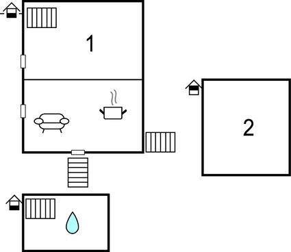 Badezimmer (nr. 1) - WC. Warmes und kaltes Wasser. Dusche