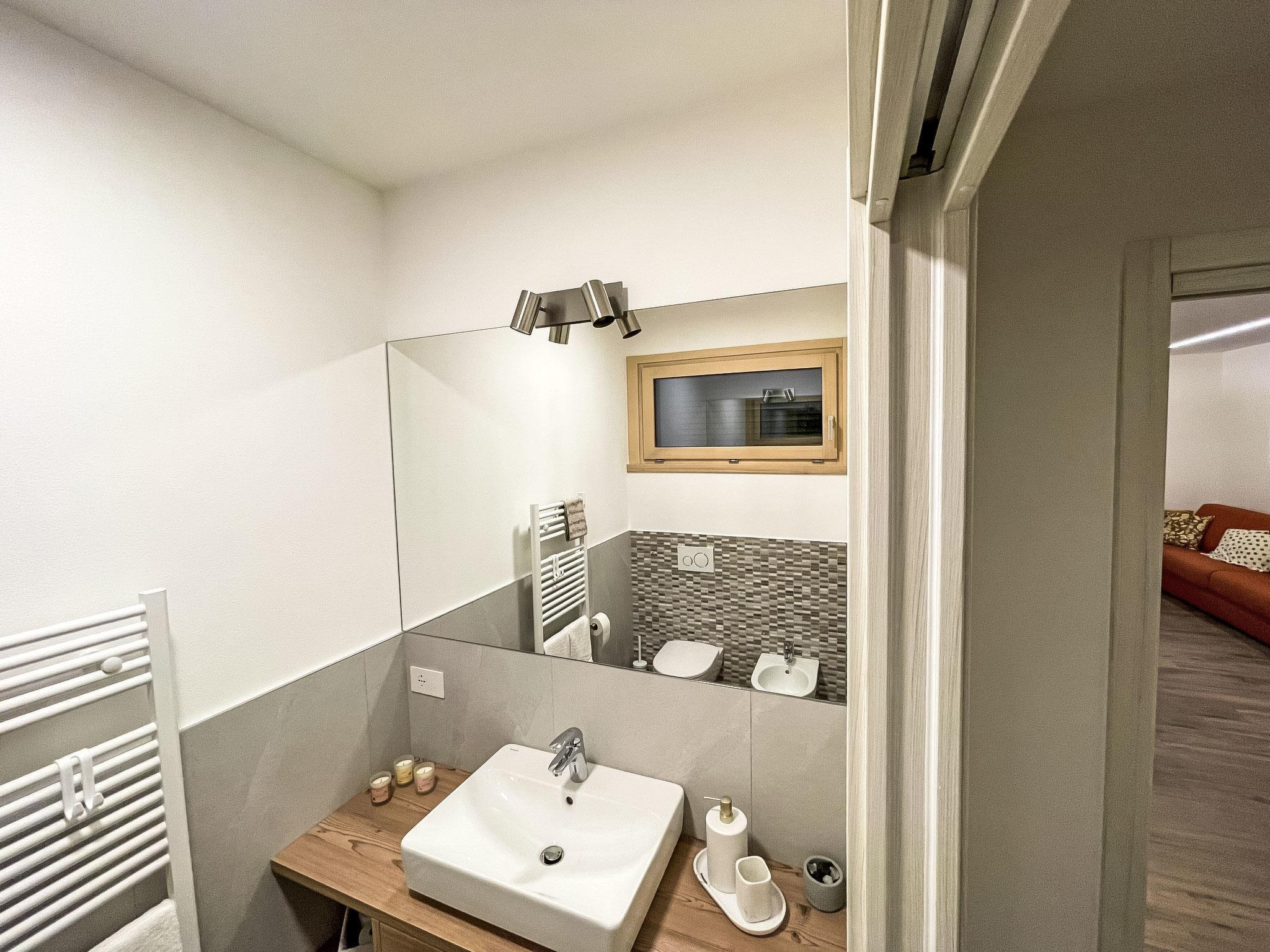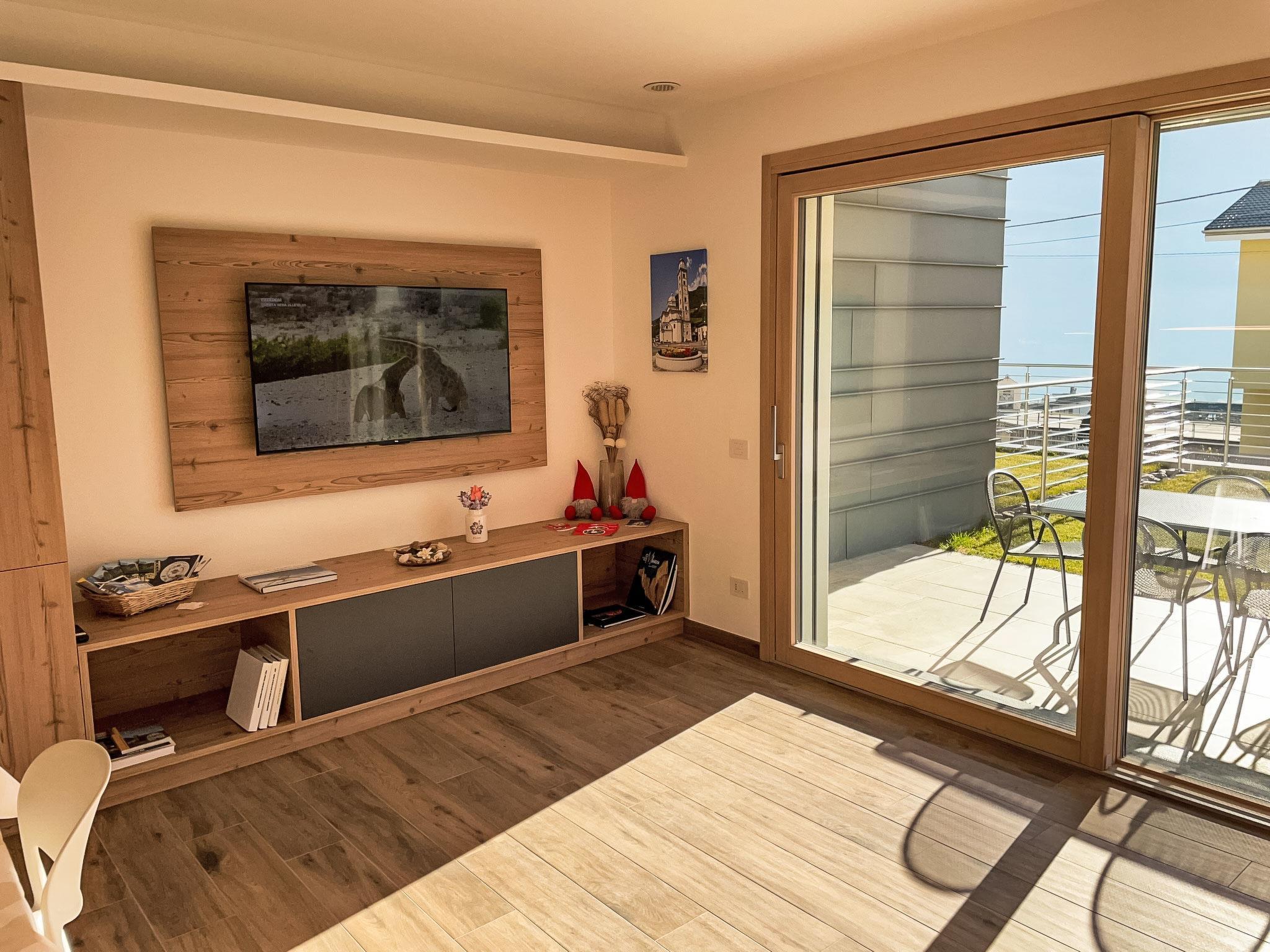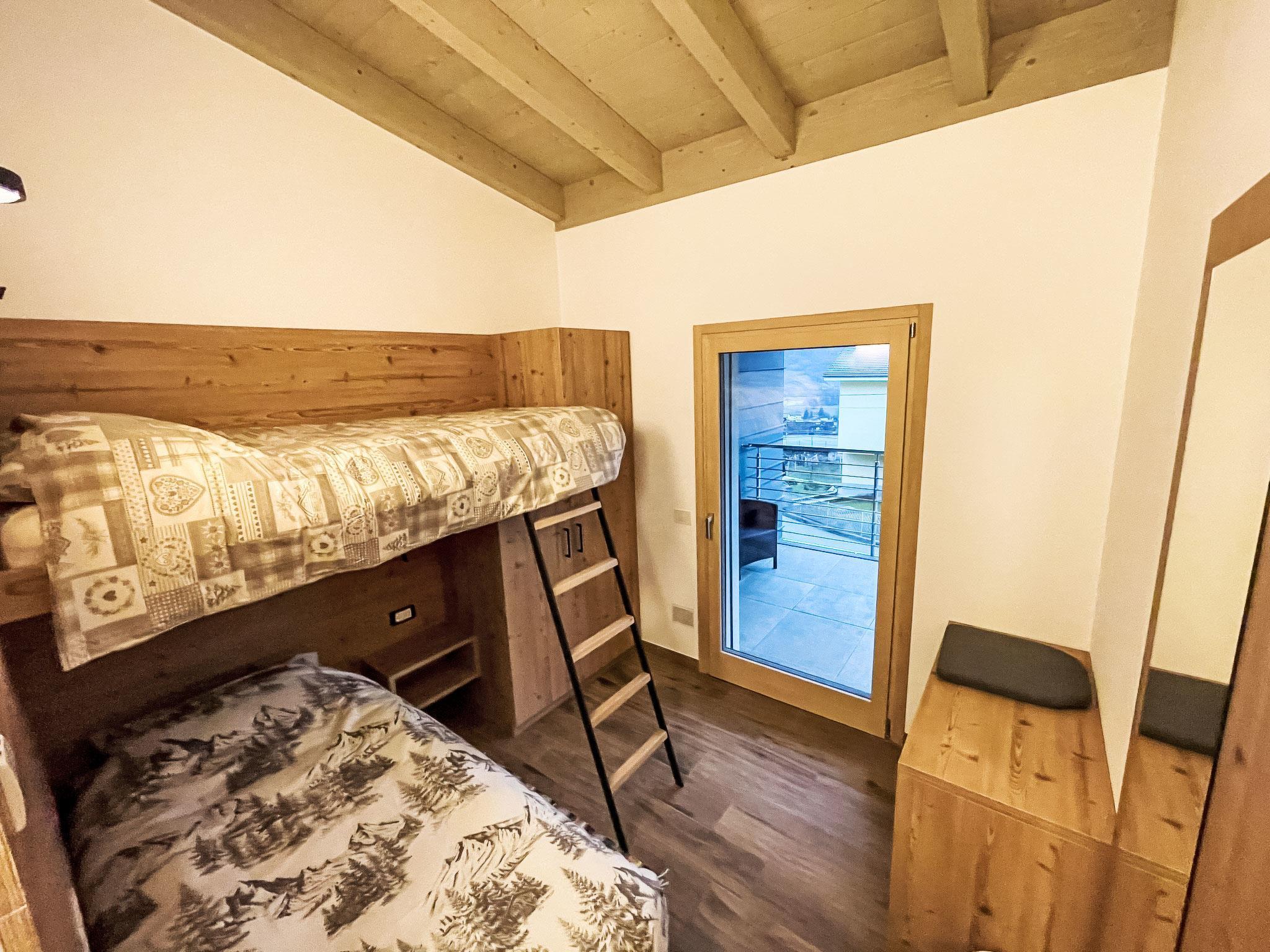 "Guarnelle House 1", 4-Zimmer-Doppelhaushälfte 100 m2 auf 2 Stockwerken. Geräumig und hell, teilweise abgeschrägt, komfortabel und modern eingerichtet: grosses Wohn-/Esszimmer mit Schiebetür, Panoramafenster mit 1 Doppeldiwanbett, Esstisch und TV. Ausgang zum Garten. Kochnische (Geschirrspüler, 4 Induktionskochplatten, Toaster, Wasserkocher, Mikrowelle, Tiefkühler). Bad. Obergeschoss: 1 abgeschrägtes Zimmer mit 1 x 2 Etagenbetten. Ausgang zur Terrasse. 1 abgeschrägtes Zimmer mit 1 x 2 Etagenbetten. Ausgang zur Terrasse. 1 abgeschrägtes Doppelzimmer. Ausgang zum Balkon. Dusche/Bidet/WC. Heizung, Klimaanlage. Balkon, grosse Terrasse, Garten, Rasen. Terrassenmöbel, Balkonmöbel, Gartengrill. Sicht auf die Berge und das Tal. Zur Verfügung: Waschmaschine, Kinderhochstuhl, Babybett, Haartrockner. Internet (WLAN, gratis). Bitte beachten: geeignet für Familien. Nichtraucher-Haus. Maximal 2 Haustiere/Hunde erlaubt. Eigener Eingang. IT014008C2JMBTUZAH