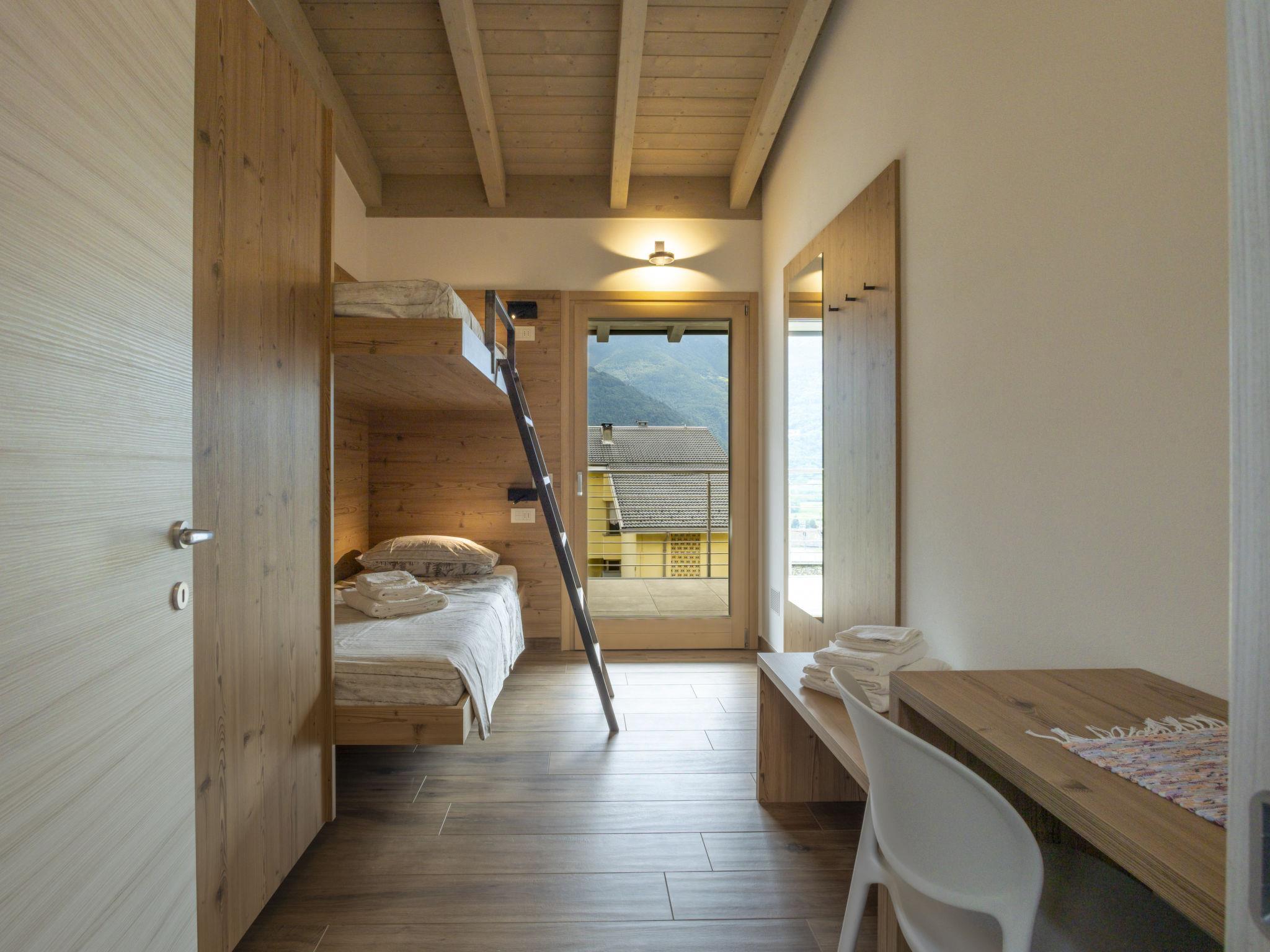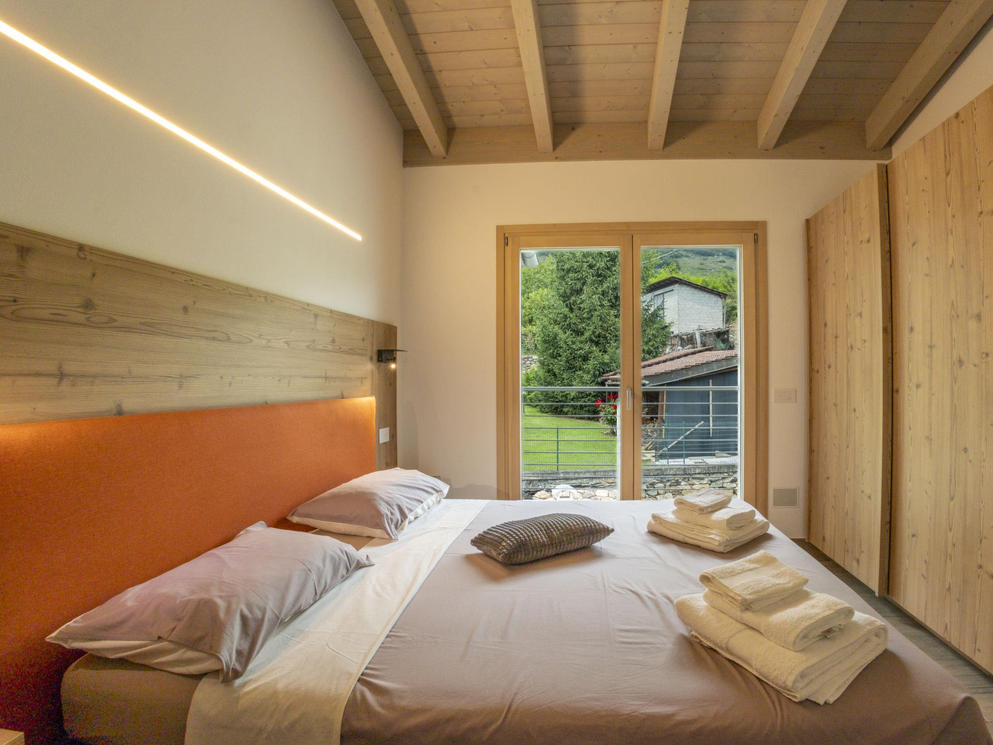 "Guarnelle House 2", 4-Zimmer-Doppelhaushälfte 100 m2 auf 2 Stockwerken. Geräumig und hell, komfortabel und schön eingerichtet: grosses Wohn-/Esszimmer mit Schiebetür, Panoramafenster mit 1 Doppeldiwanbett, Esstisch und TV. Ausgang zum Garten. Kochnische (Geschirrspüler, 4 Induktionskochplatten, Toaster, Wasserkocher, Mikrowelle, Tiefkühler). Bad. Obergeschoss: 1 abgeschrägtes Zimmer mit 1 x 2 Etagenbetten. Ausgang zur Terrasse. 1 abgeschrägtes Zimmer mit 1 x 2 Etagenbetten. Ausgang zur Terrasse. 1 Doppelzimmer. Ausgang zum Balkon. Dusche/Bidet/WC. Heizung, Klimaanlage. Balkon, grosse Terrasse, Garten, Rasen. Terrassenmöbel, Balkonmöbel, Gartengrill. Sicht auf die Berge und das Tal. Zur Verfügung: Waschmaschine, Kinderhochstuhl, Babybett, Haartrockner. Internet (Wireless LAN, gratis). Bitte beachten: geeignet für Familien. Nichtraucher-Haus. Maximal 1 Haustier/Hund erlaubt. Eigener Eingang. IT014008C2JOMQXHOG