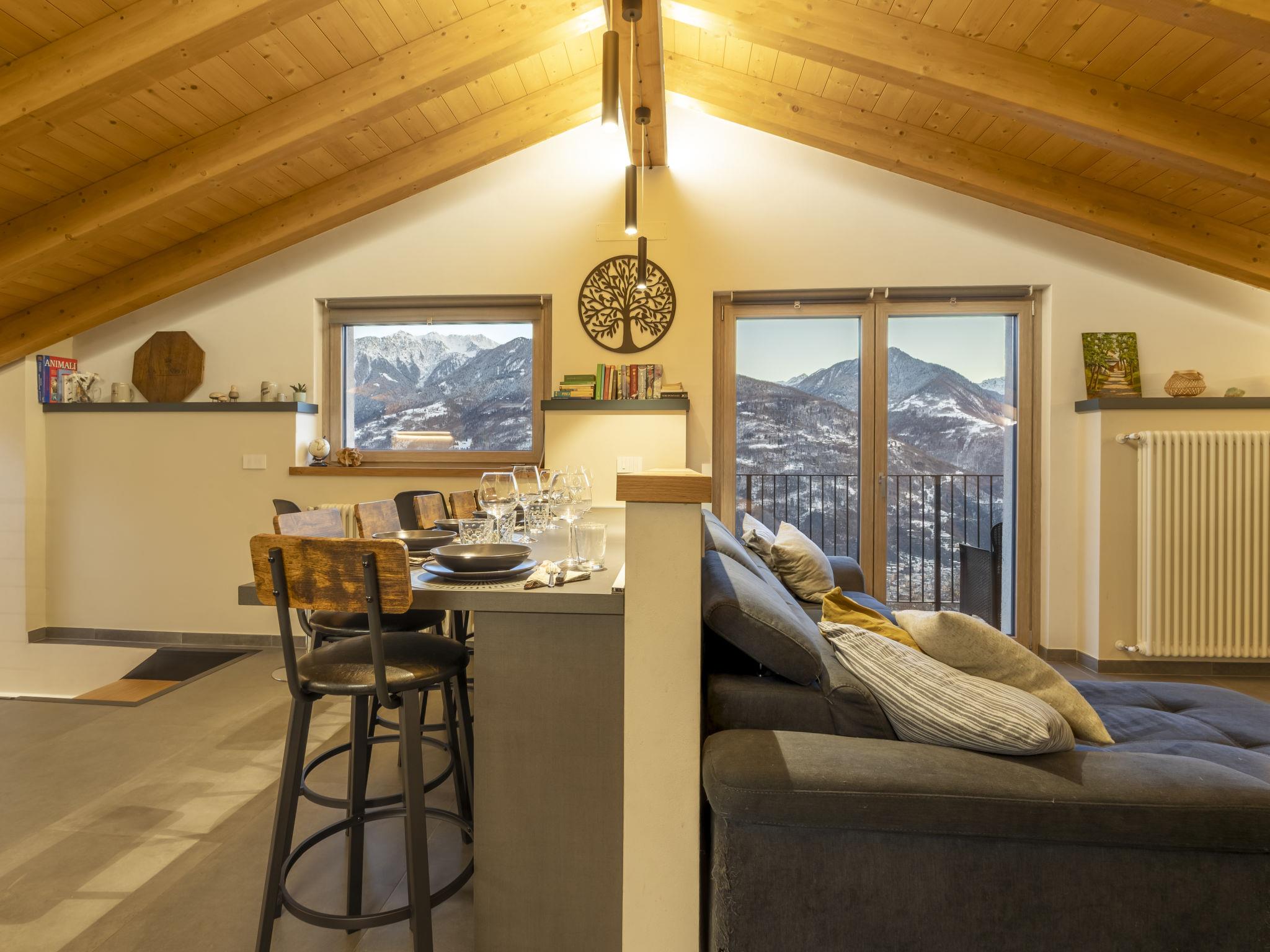 4-Zimmer-Villa 180 m2 auf 3 Stockwerken, Südlage. Geräumig und hell, teilweise abgeschrägt, vollständig renoviert im Jahre 2025, modern und stilvoll eingerichtet: Eingang. 1 Zimmer mit 1 Doppelbett und Sat-TV. 1 Zimmer mit 1 x 2 Etagenbetten. Dusche/Bidet/WC. Obergeschoss: (geländerlose Treppe) 1 Zimmer mit 1 Doppelbett und TV. Ausgang zum Balkon. Bad/Dusche/Bidet/WC. 2. Obergeschoss: (geländerlose Treppe) grosses Wohn-/Esszimmer mit 1 Diwanbett und Sat-TV. Ausgang zum Balkon. Grosse Kochnische (Backofen, Geschirrspüler, 5 Induktionskochplatten, Toaster, Wasserkocher, Mikrowelle, Tiefkühler, elektrische Kaffeemaschine, Kapseln für die Kaffeemaschine (Nespresso) gratis) mit Esstisch und Essecke. Heizung. Solarstrom. Parkettboden, Natursteinboden. Gartengrill, Liegestühle (4). Sehr schöne Panoramasicht auf die Berge und das Tal. Zur Verfügung: Kinderhochstuhl, Babybett, Haartrockner. Internet (WLAN, gratis). E-Ladestation. Bitte beachten: geeignet für Familien. Nichtraucher-Haus. Maximal 3 Haustiere/Hunde erlaubt. Eigener Eingang, Feuerlöscher, kein Fahrstuhl. IT014022C22V9JRSNE