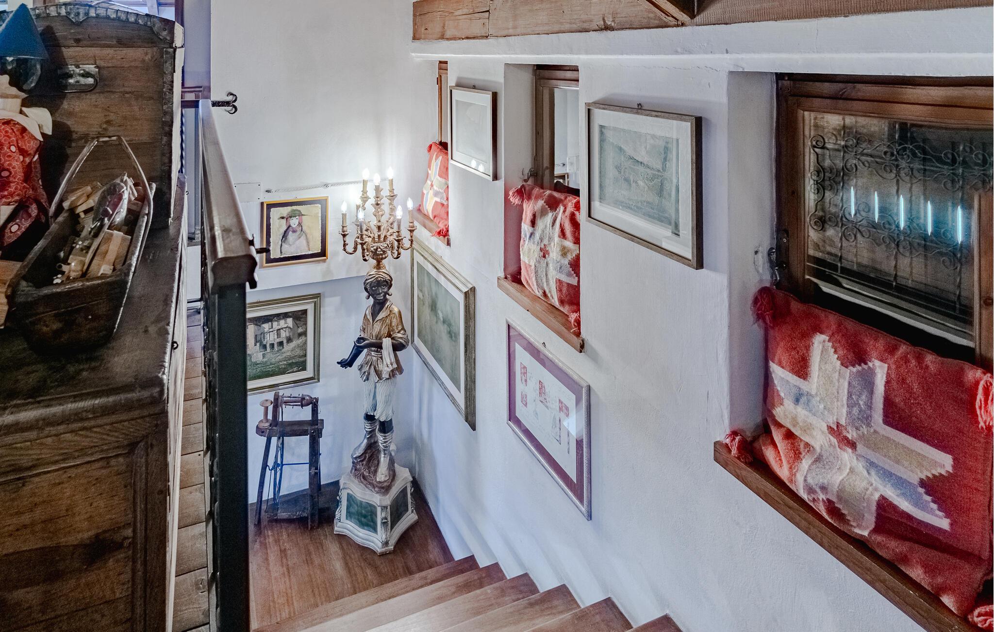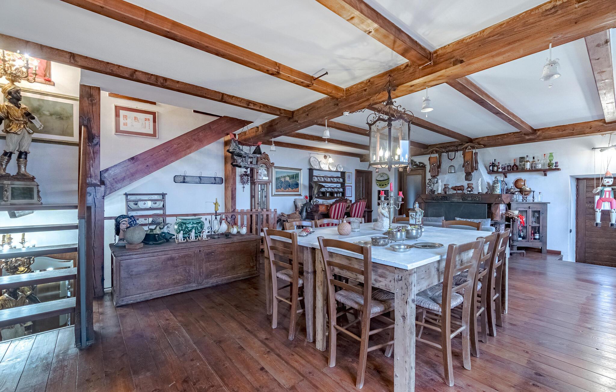 Dieses großzügige und authentische Haus lädt mit sichtbarem Fachwerk und liebevoller Einrichtung zum Wohlfühlen ein. Der offene Kamin im Wohnzimmer schafft eine behagliche Atmosphäre, während die große, einladende Küche mit Holzofen, Grill und professioneller Schneidemaschine Lust aufs gemeinsame Kochen macht. Im weitläufigen Garten mit Pool und Terrasse können Sie entspannen und den herrlichen Ausblick bis zum Meer genießen.